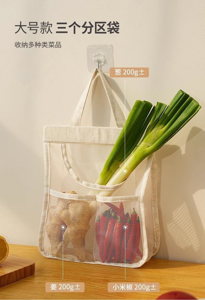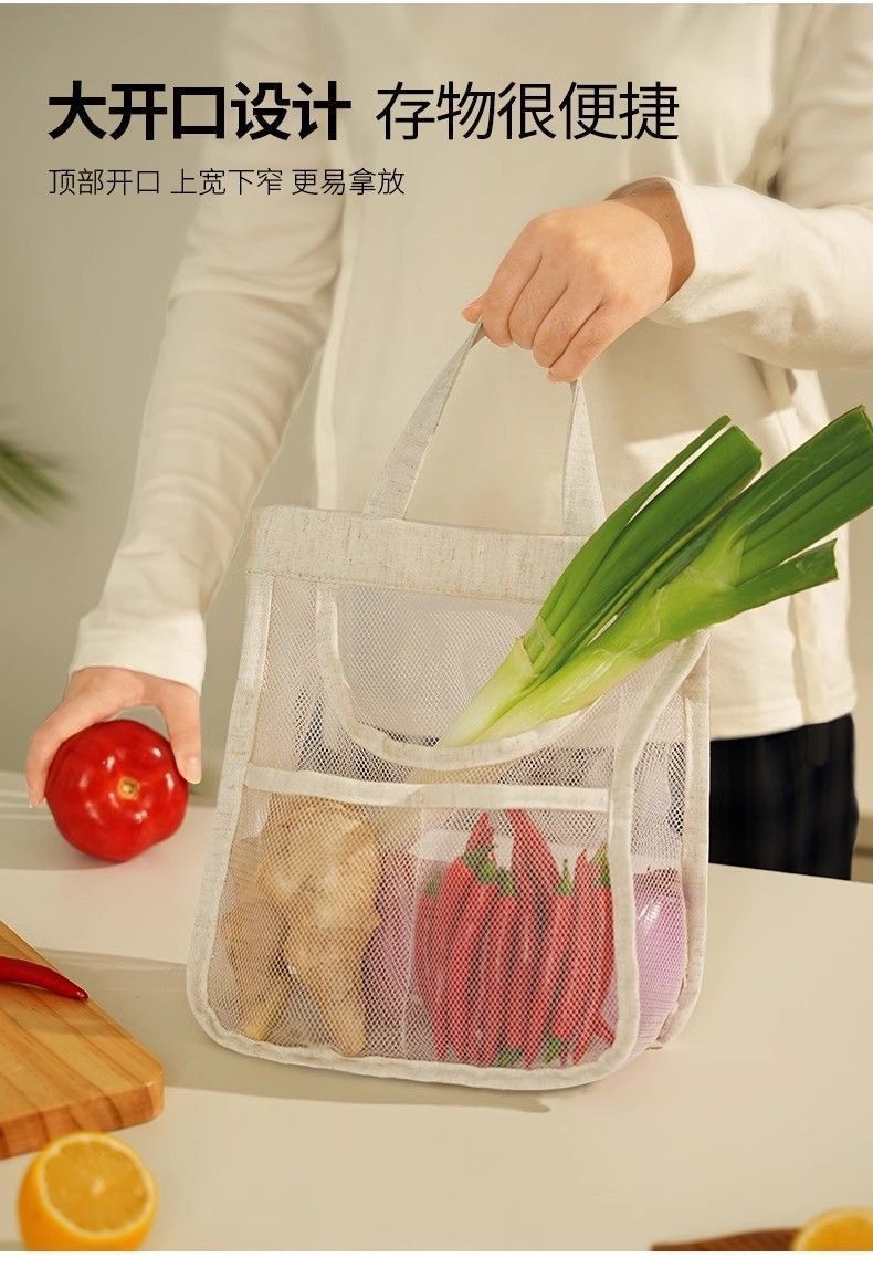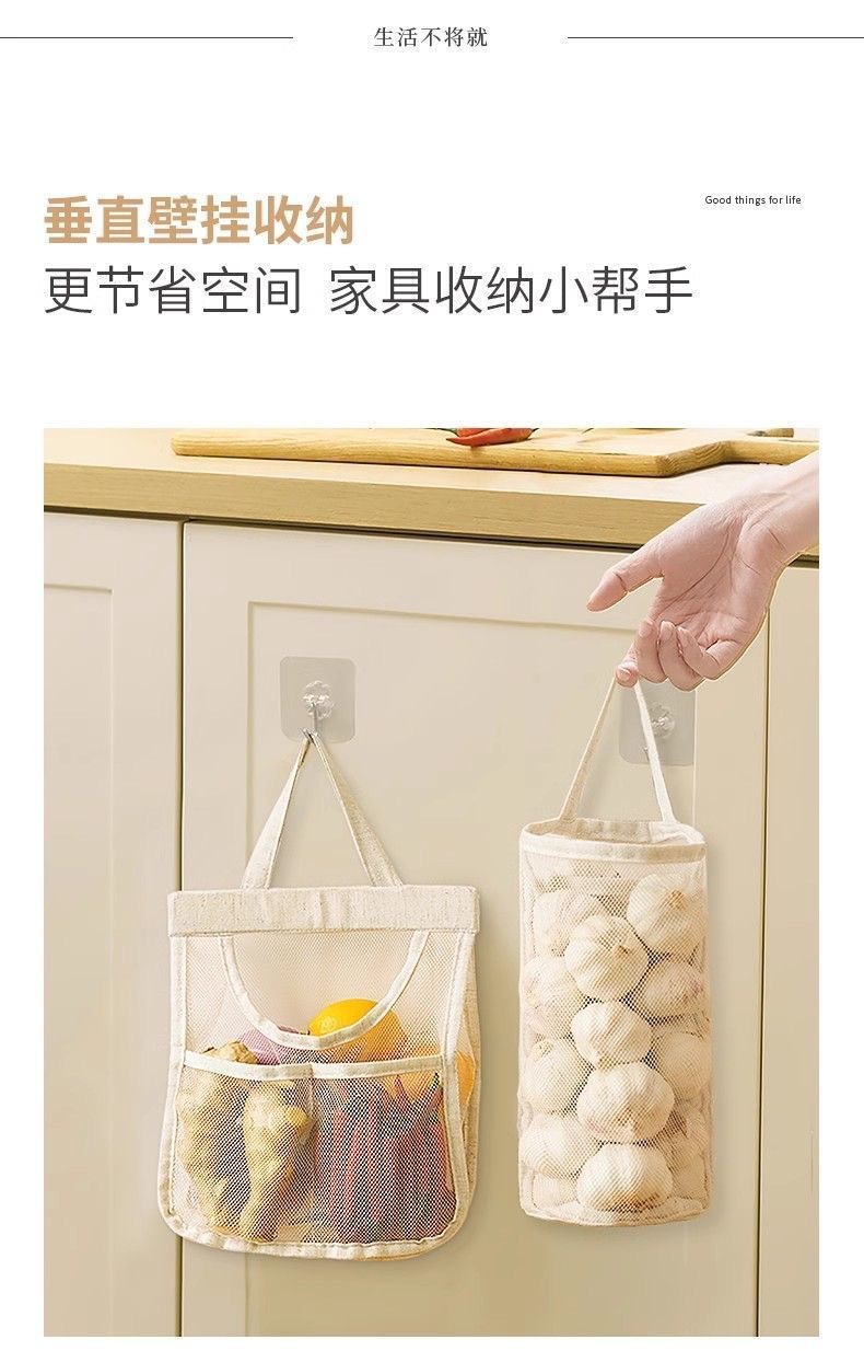 网眼透气姜蒜收纳袋 厨房壁挂式大容量果蔬储物袋 可悬挂防潮挂袋
