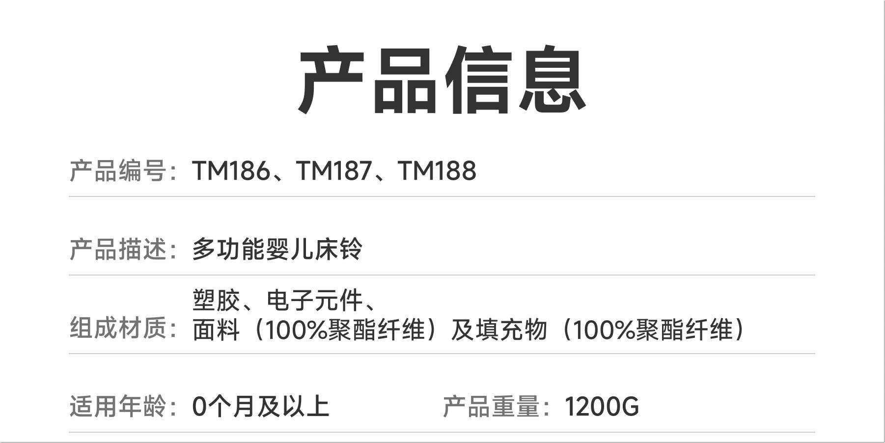 含彩盒重量:【TM186 / TM188】1150G 、【TM187】1050G