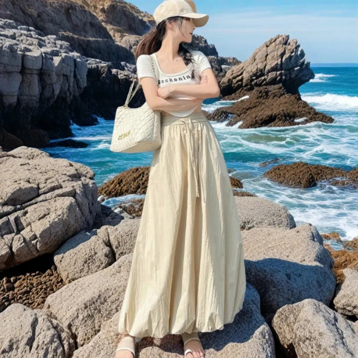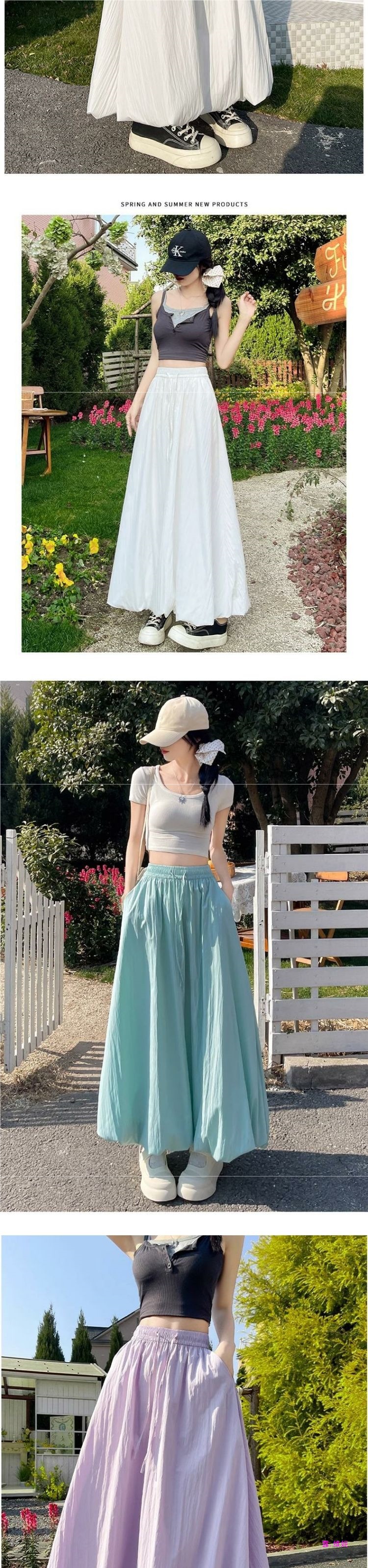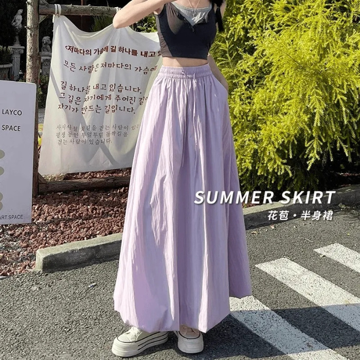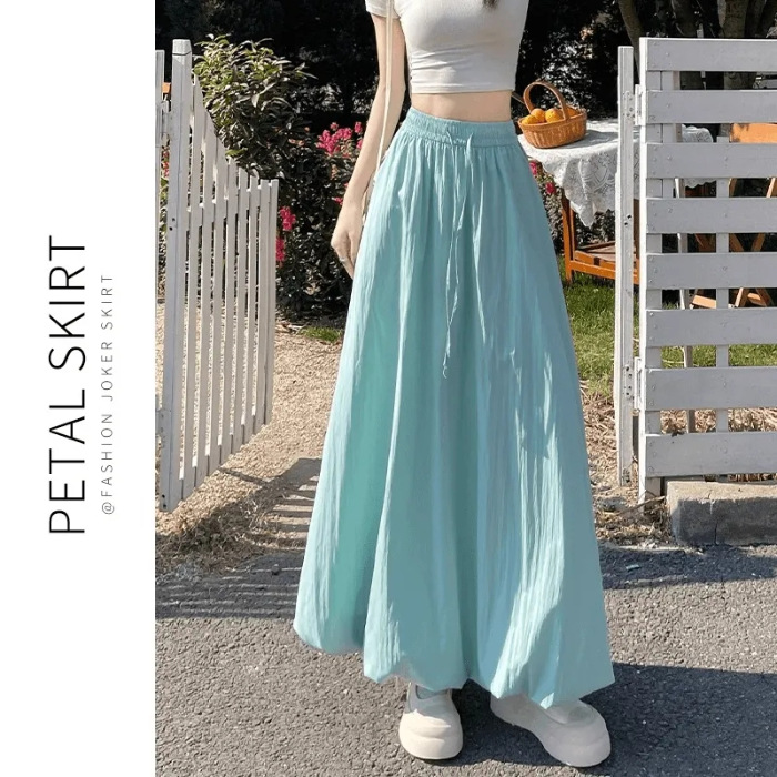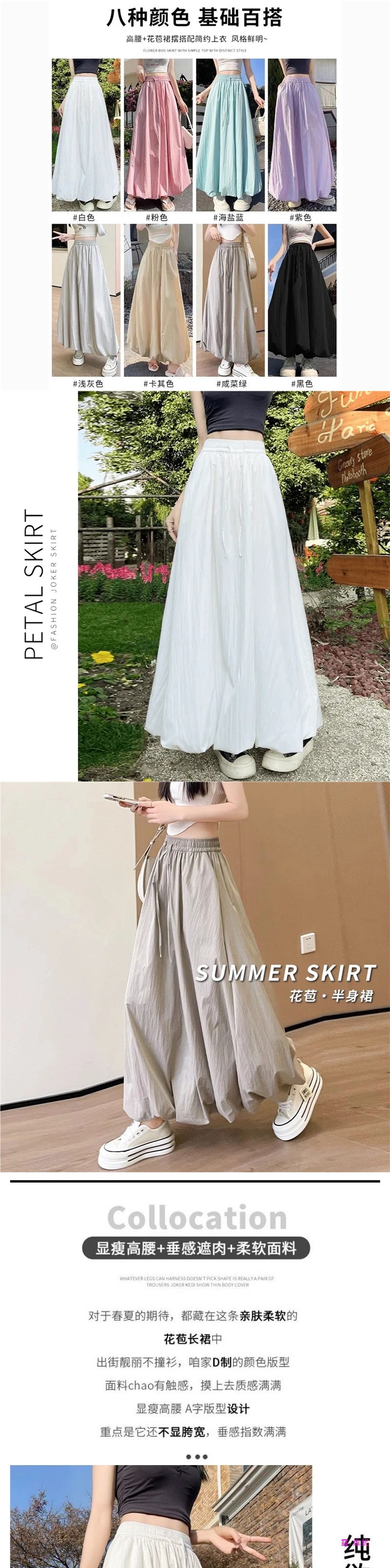 여성용 푹신한 버드 스커트 여름 얇은 2025 하이 웨이스트 우산 스커트 9부 중간 길이 랜턴 스커트스토어 가기