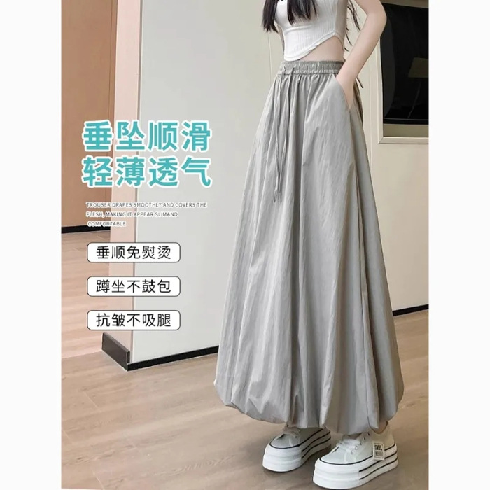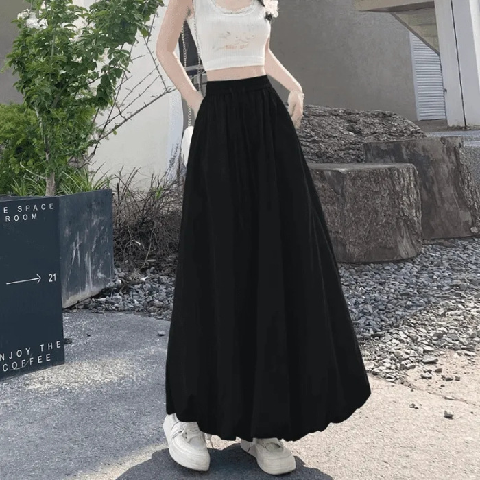 여성용 푹신한 버드 스커트 여름 얇은 2025 하이 웨이스트 우산 스커트 9부 중간 길이 랜턴 스커트