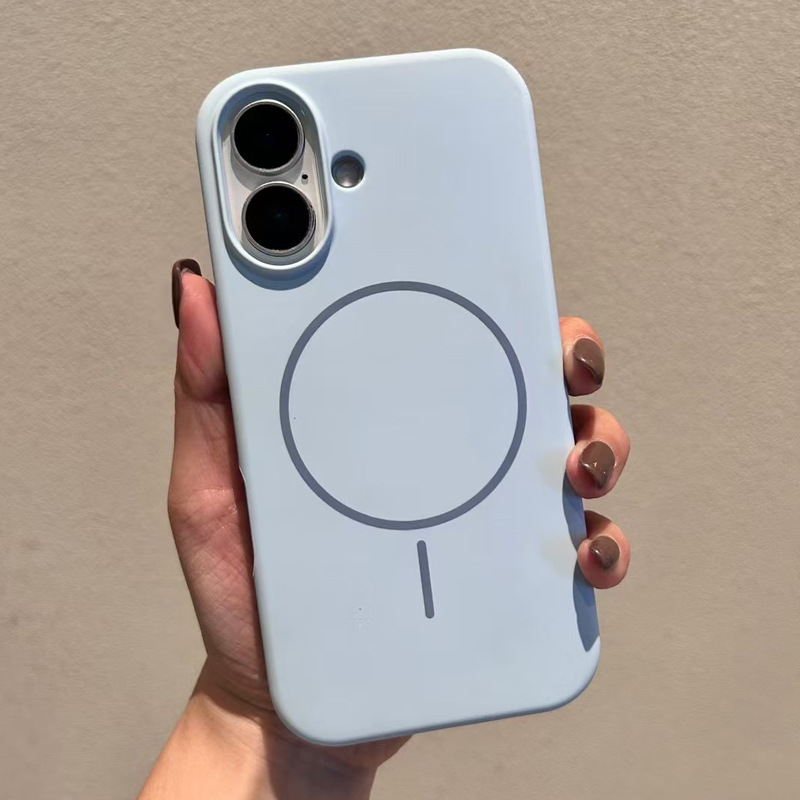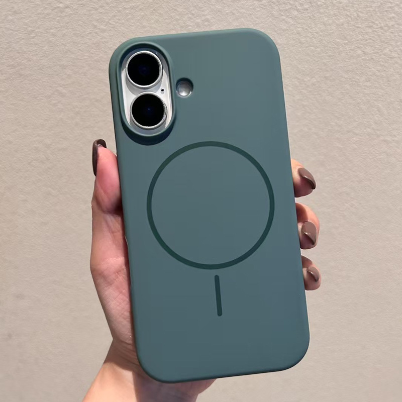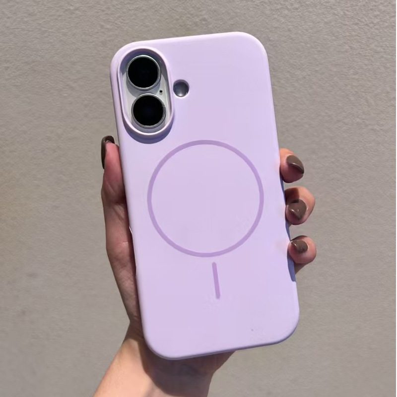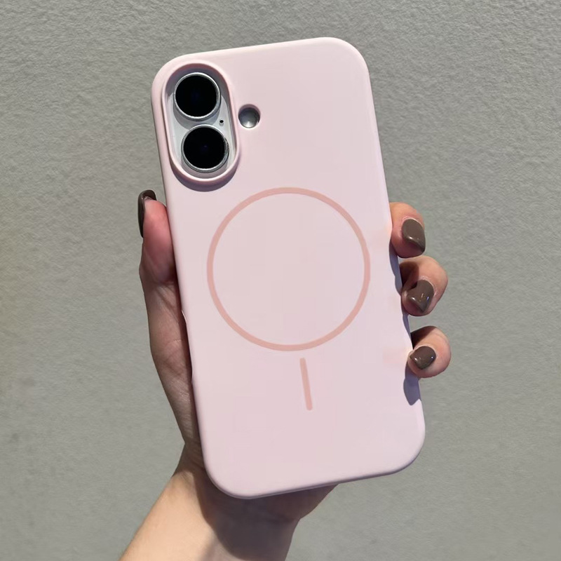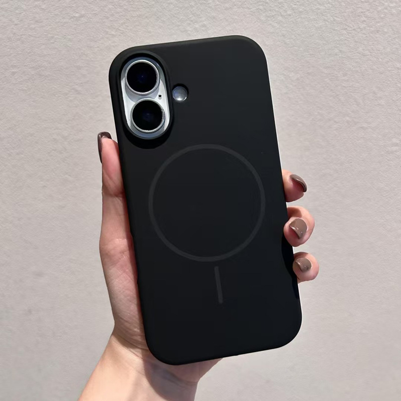 액체 실리콘 iPhone16promax용 미세 원형 자석 휴대폰 케이스 애플17 단색 14 대형 구멍 심플 디자인