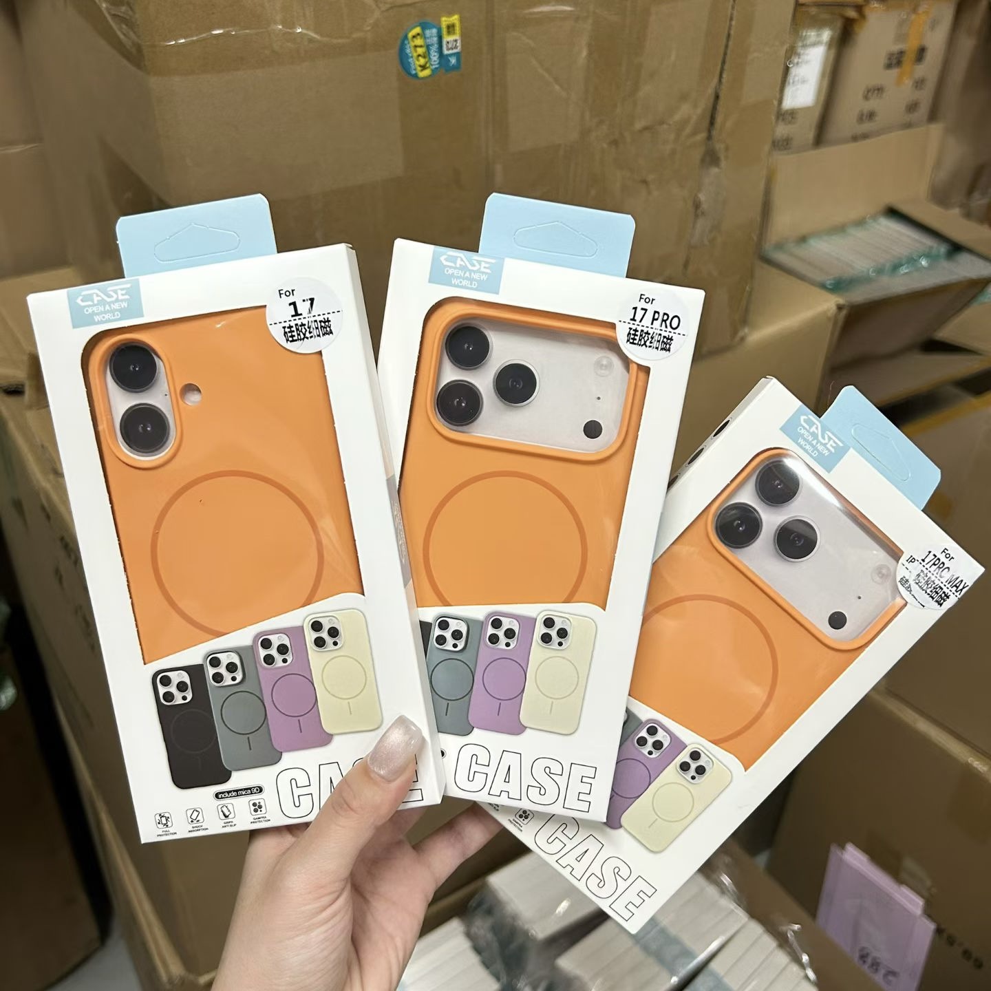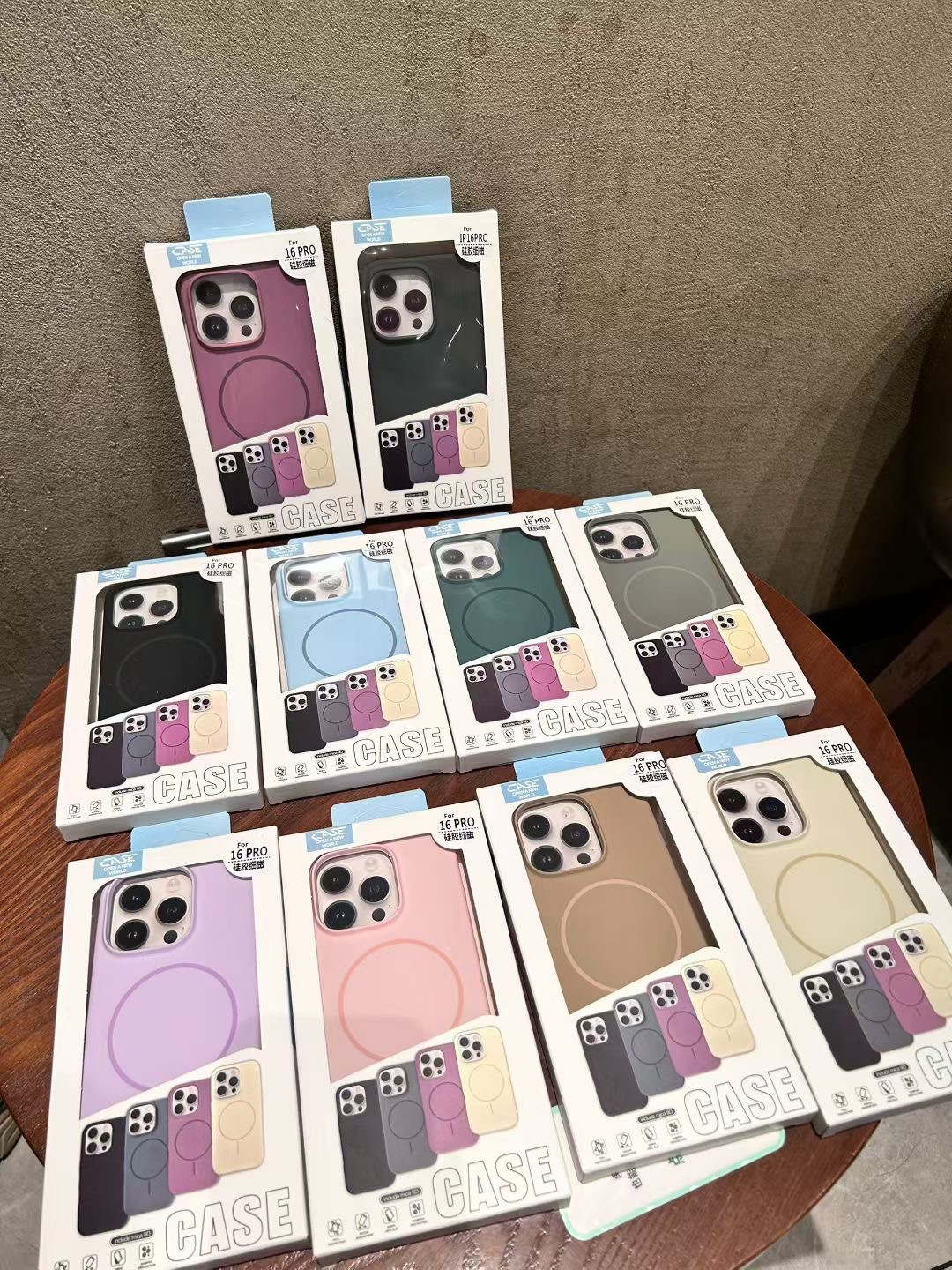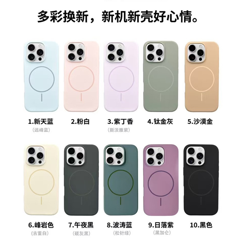 액체 실리콘 iPhone16promax용 미세 원형 자석 휴대폰 케이스 애플17 단색 14 대형 구멍 심플 디자인