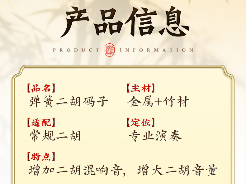 Erhu 봄 코드 피아노 코드 증가 잔향 소리 큰 볼륨 금속 와이어 erhu 코드 대나무 말 액세서리
