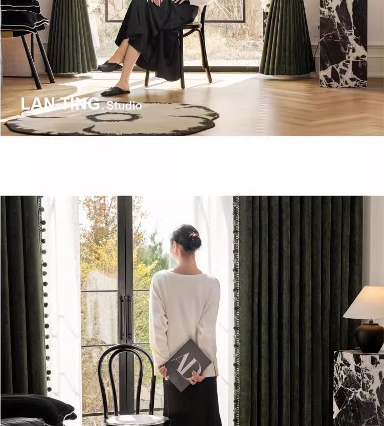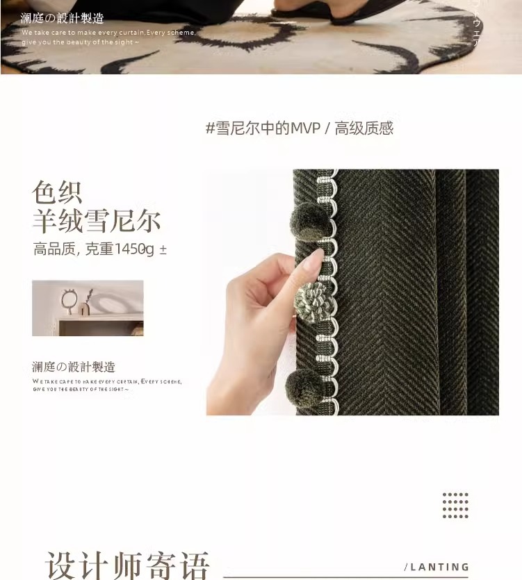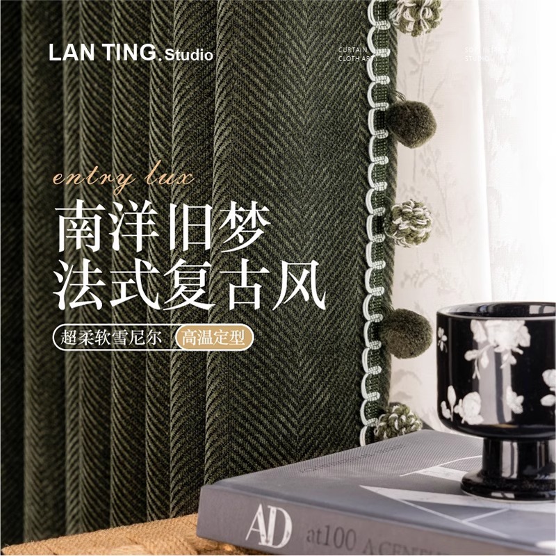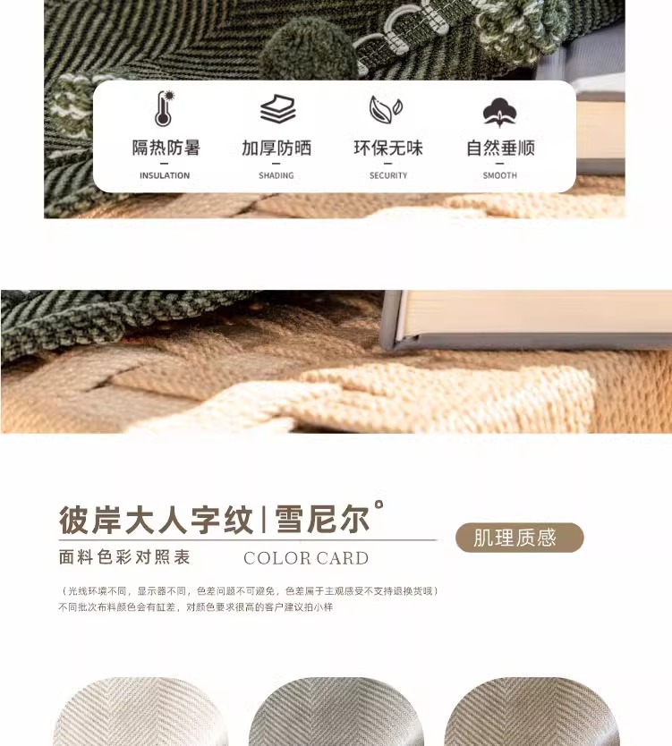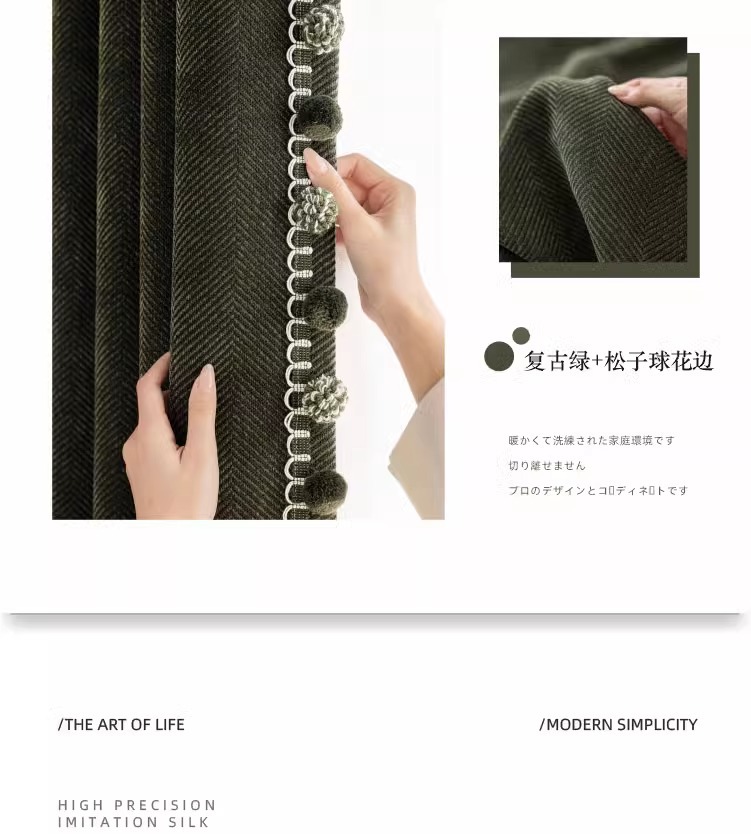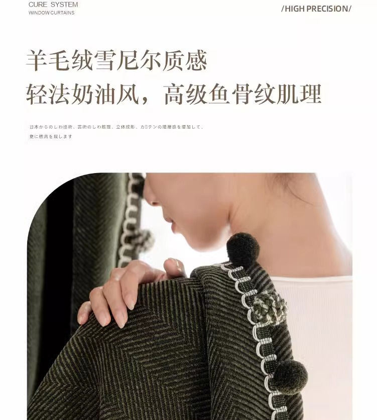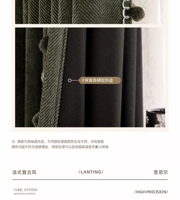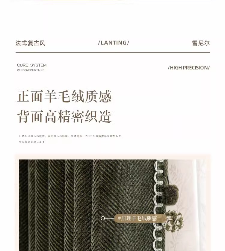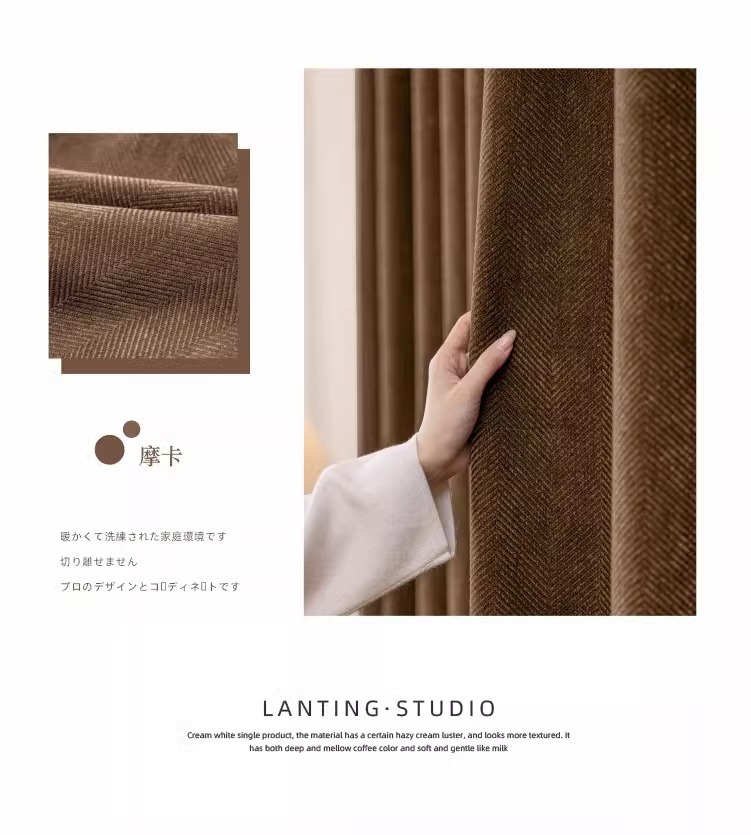 두꺼운 암막 자카드 셔닐 헤링본 패턴 커튼, 거실 및 침실용 자외선 차단 및 방음, 코아오 커튼 완제품 도매스토어 가기