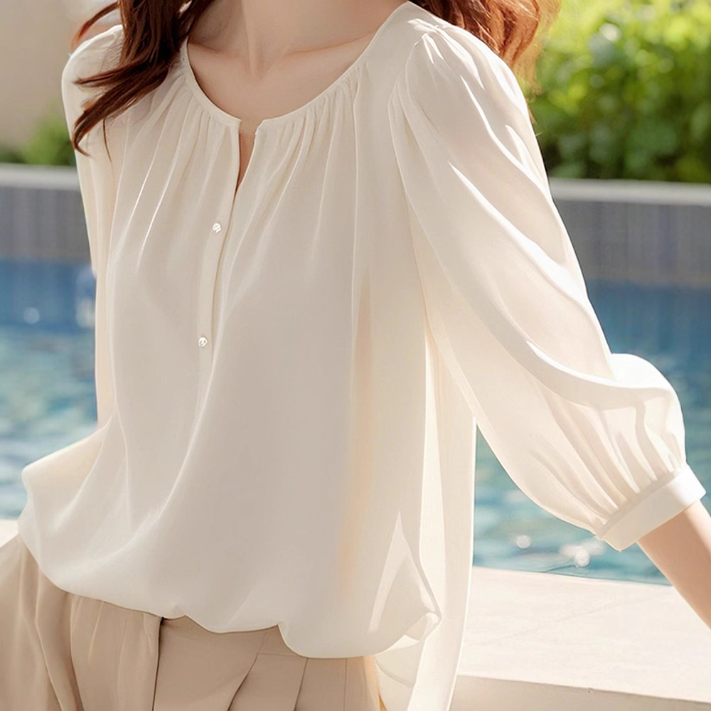 신선하고 요정 7 점 소매 우아한 패션 탑 느슨한 독특한 흰색 쉬폰 셔츠 여성의 여름