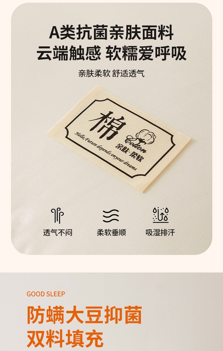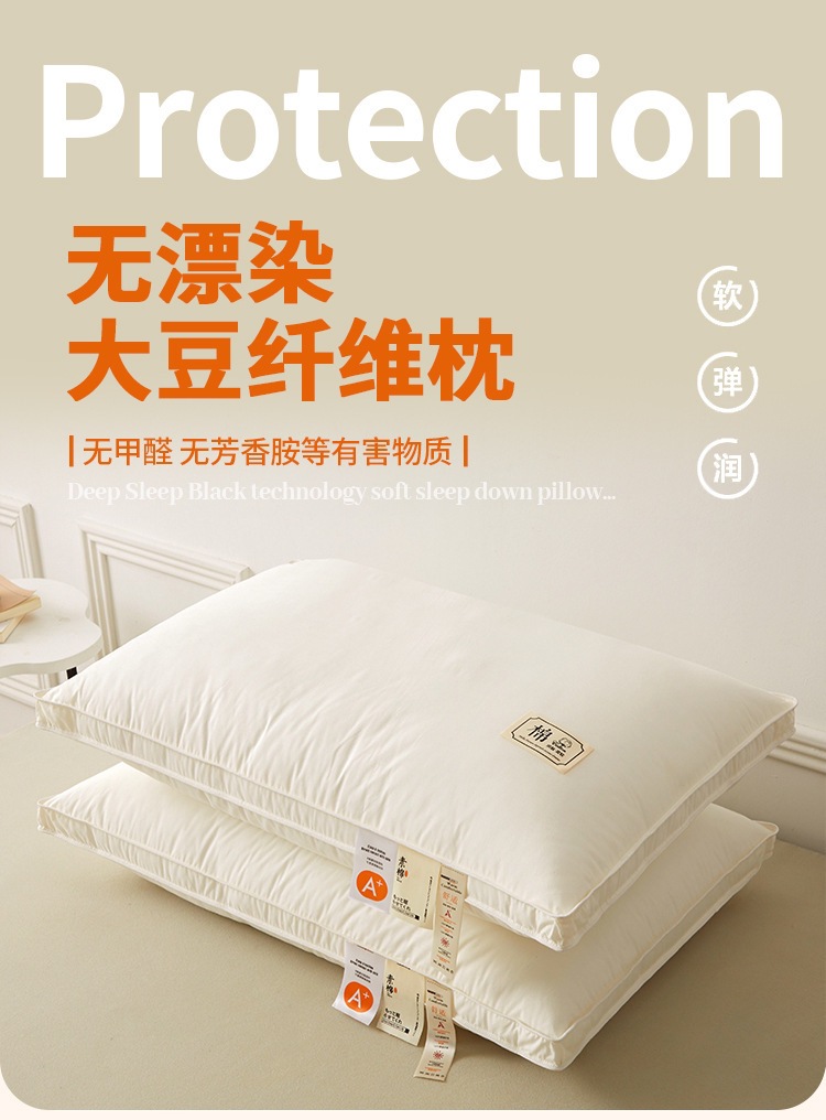 • 단면 낮은 베개 [단품] [A+면 100% 항균, 진드기 방지] [표백 및 염색을 하지 않은 콩 고탄력 섬유베개] 48×74cm