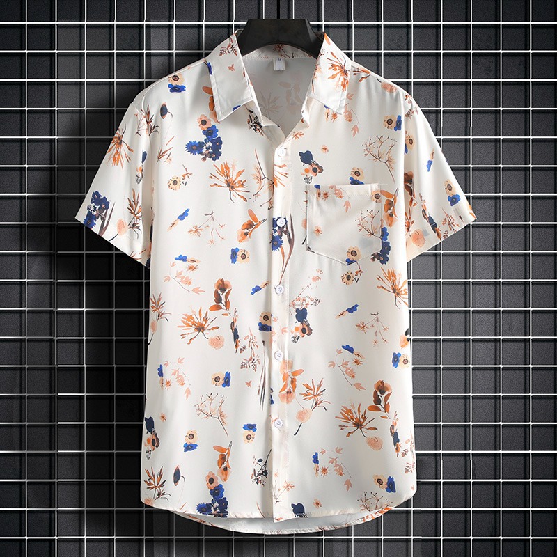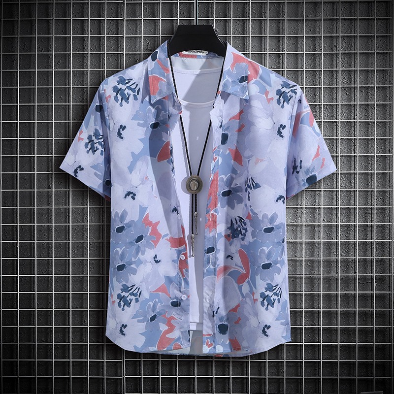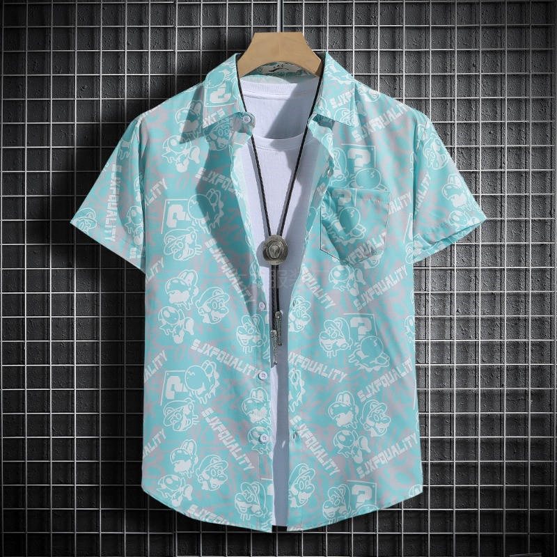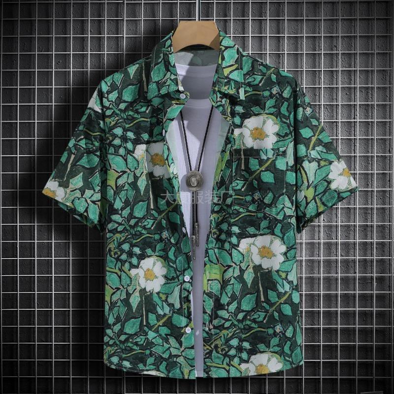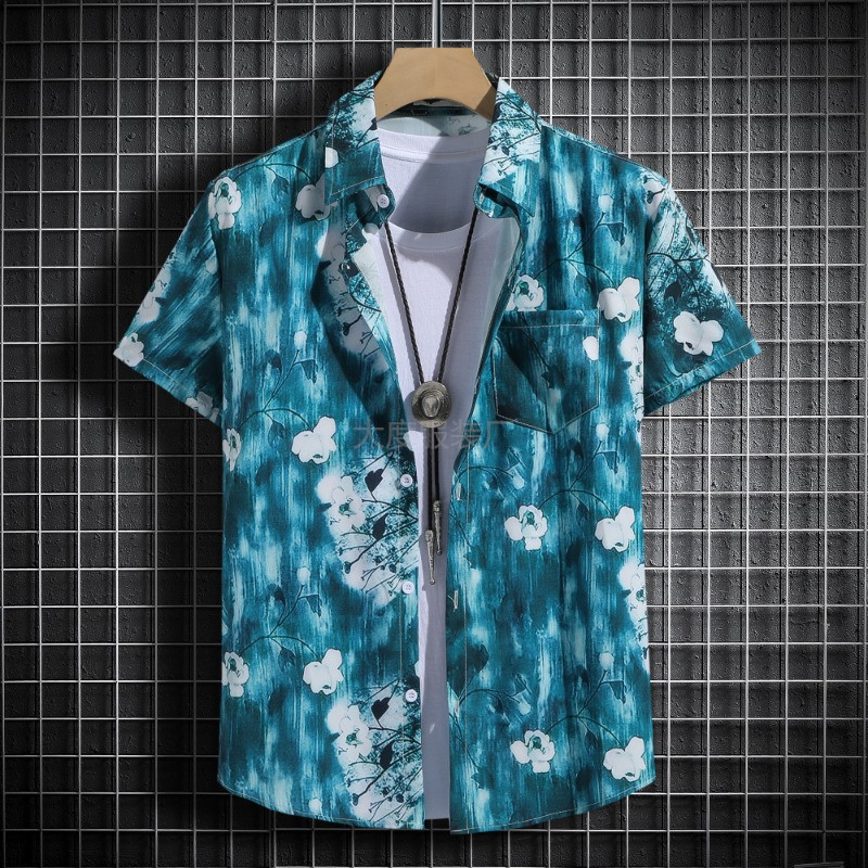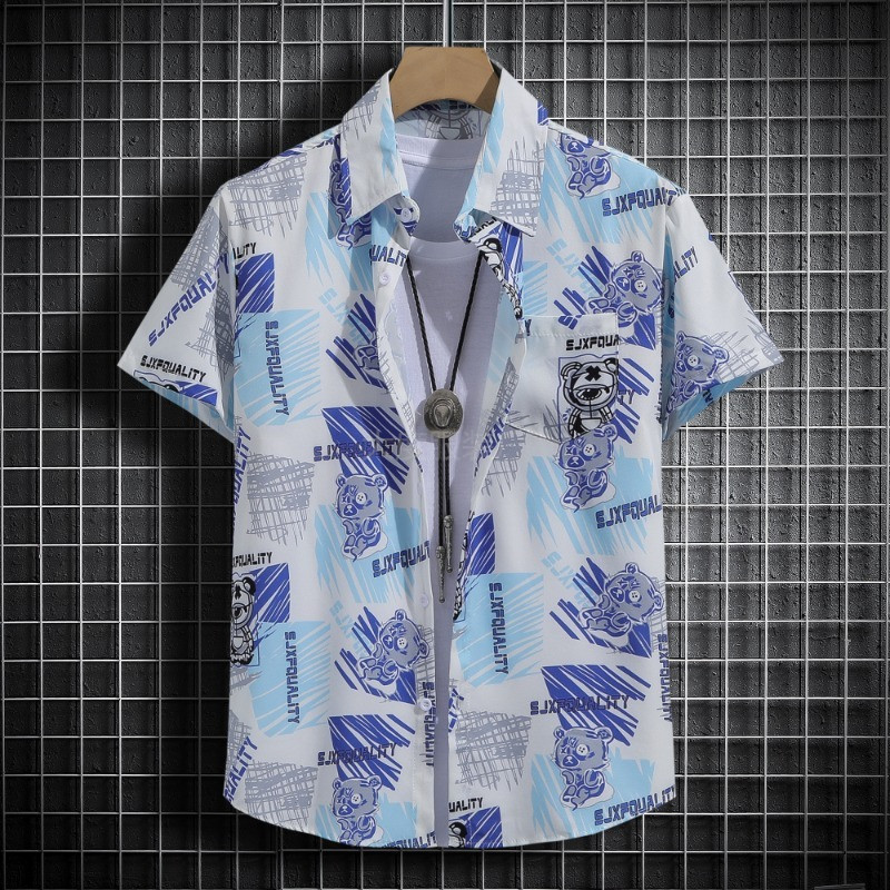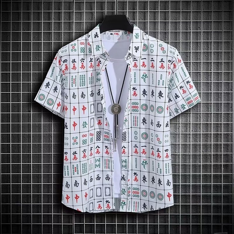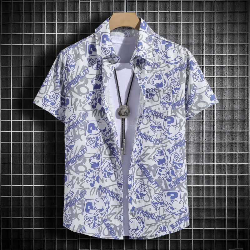 국경 2025 새로운 반팔 셔츠 남자 아이스 실크 통기성 여름 한국식 트렌디 프린트 셔츠 반소매 셔츠스토어 가기