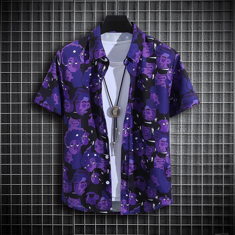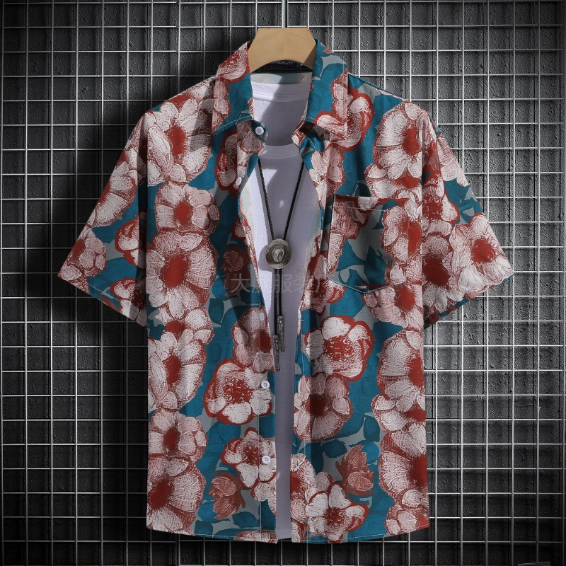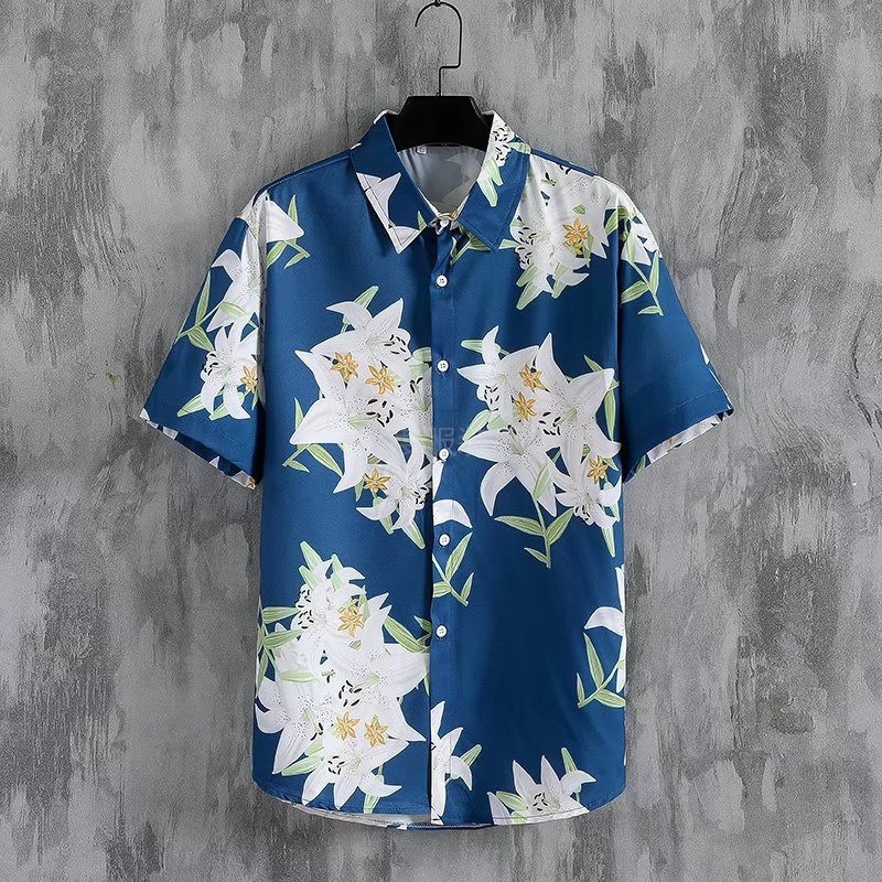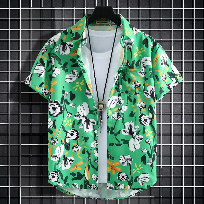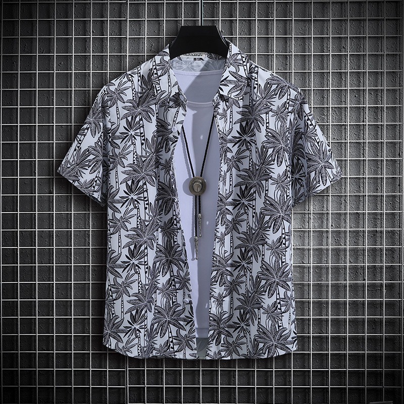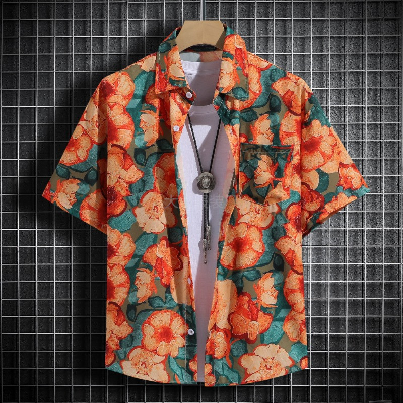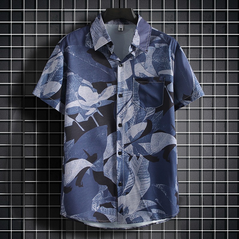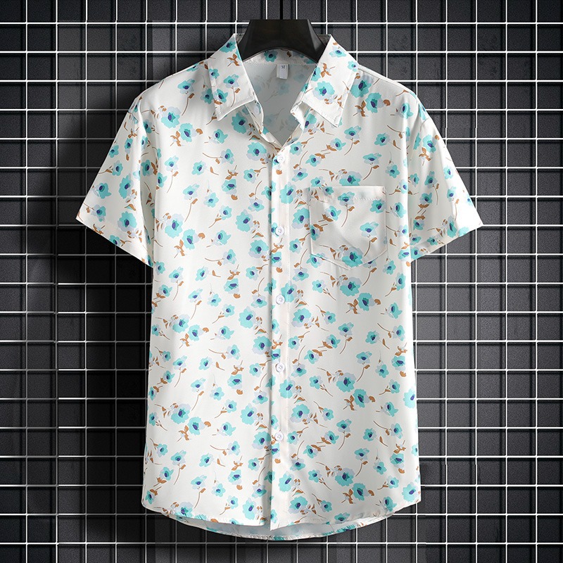 국경 2025 새로운 반팔 셔츠 남자 아이스 실크 통기성 여름 한국식 트렌디 프린트 셔츠 반소매 셔츠스토어 가기