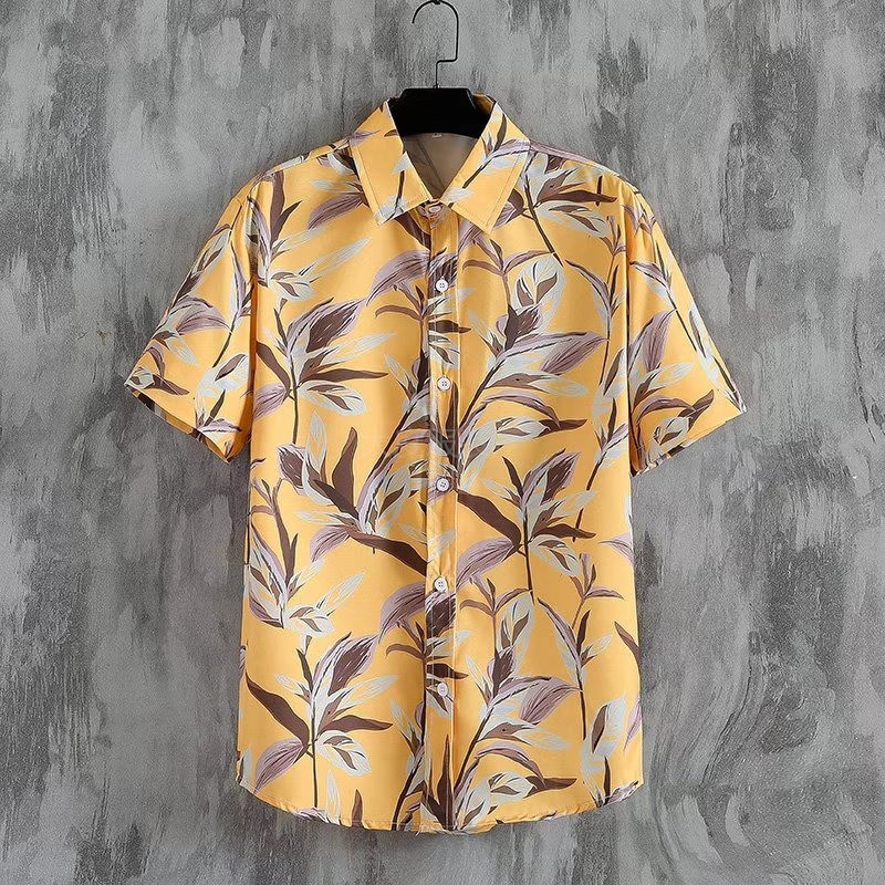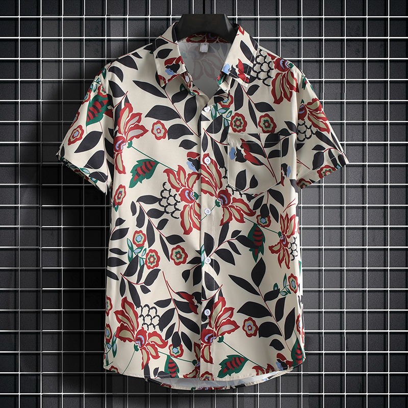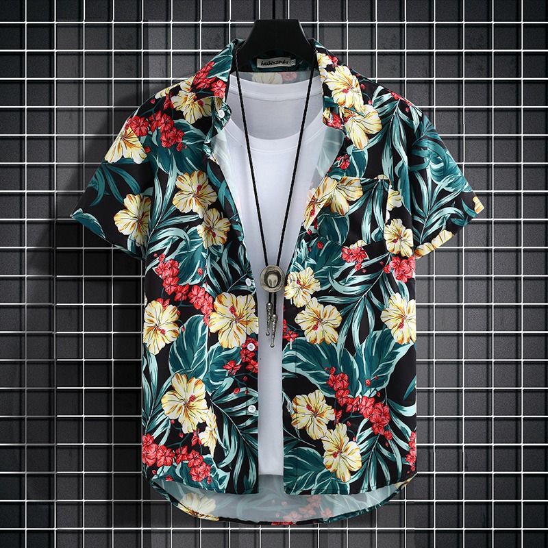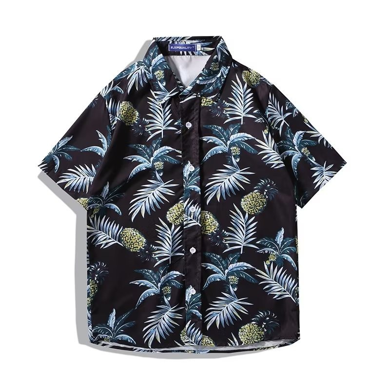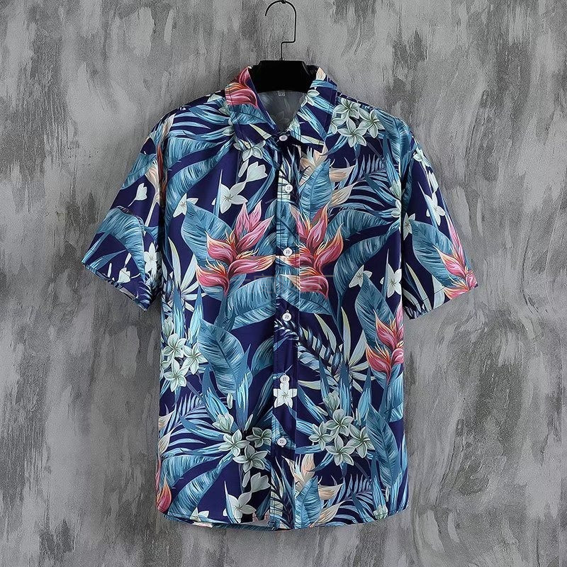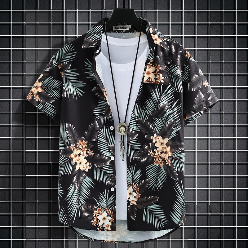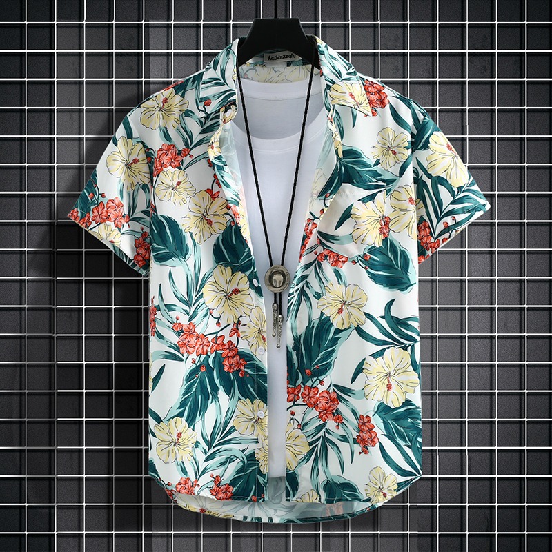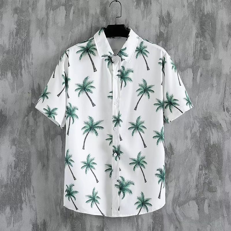 국경 2025 새로운 반팔 셔츠 남자 아이스 실크 통기성 여름 한국식 트렌디 프린트 셔츠 반소매 셔츠스토어 가기