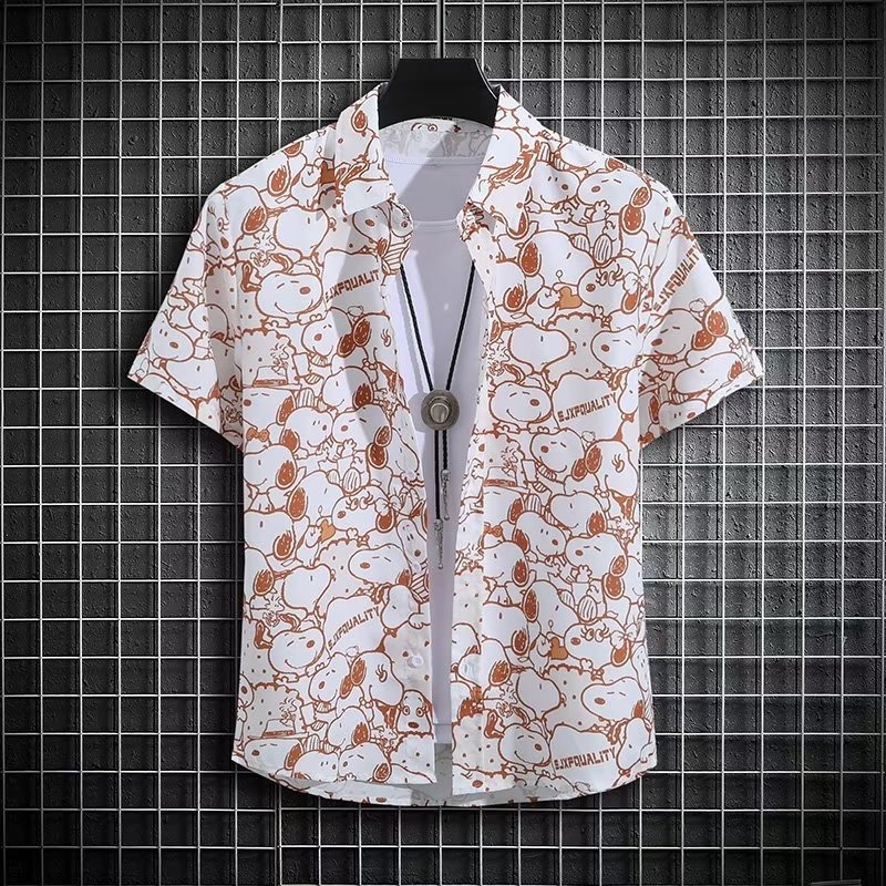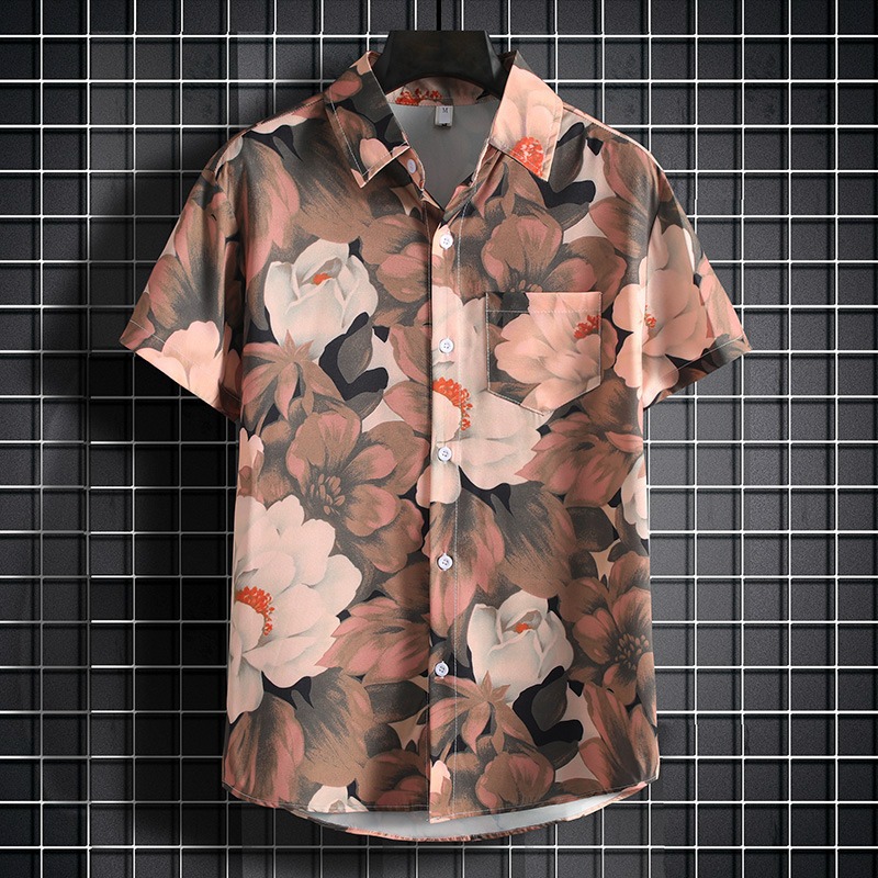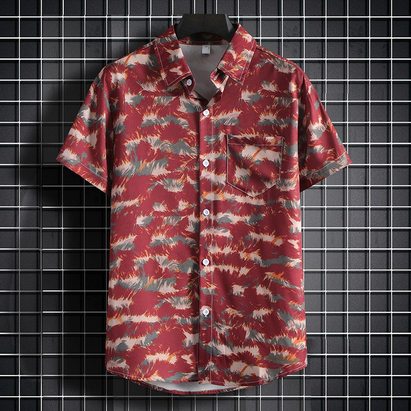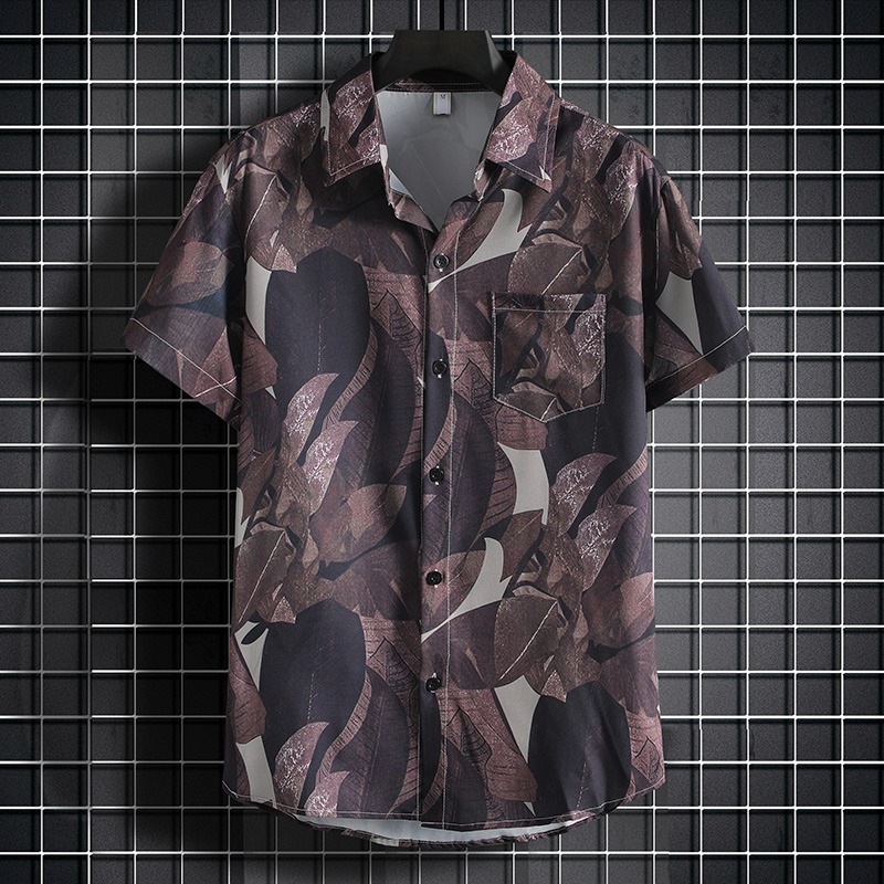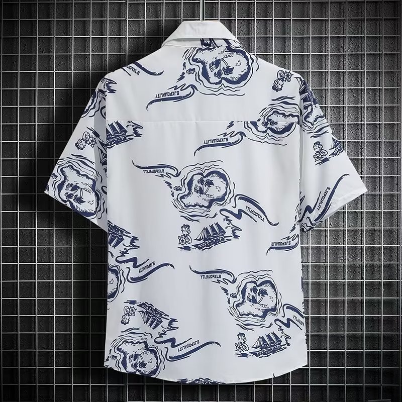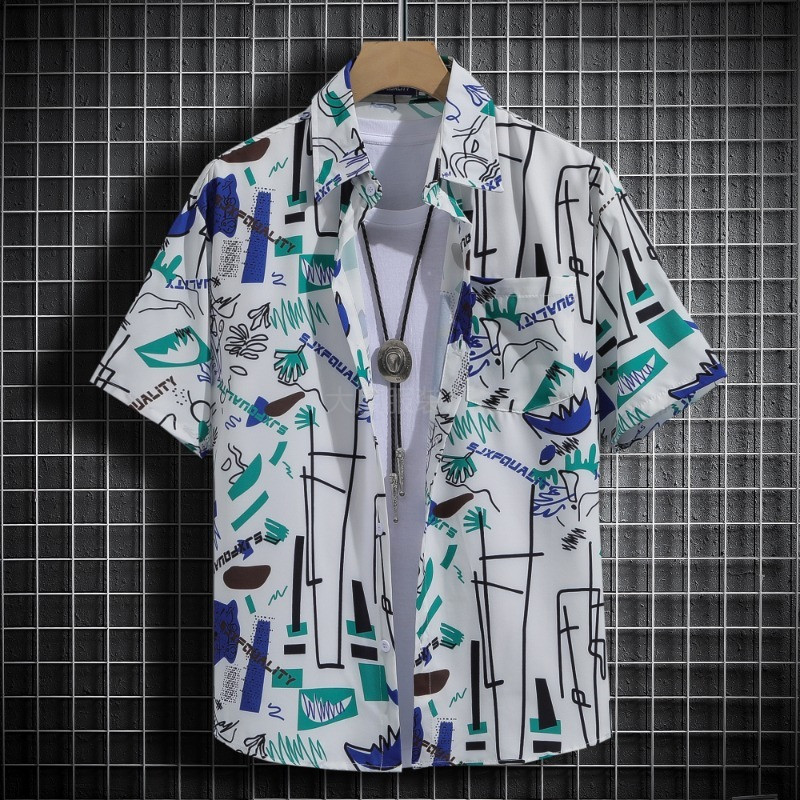 국경 2025 새로운 반팔 셔츠 남자 아이스 실크 통기성 여름 한국식 트렌디 프린트 셔츠 반소매 셔츠