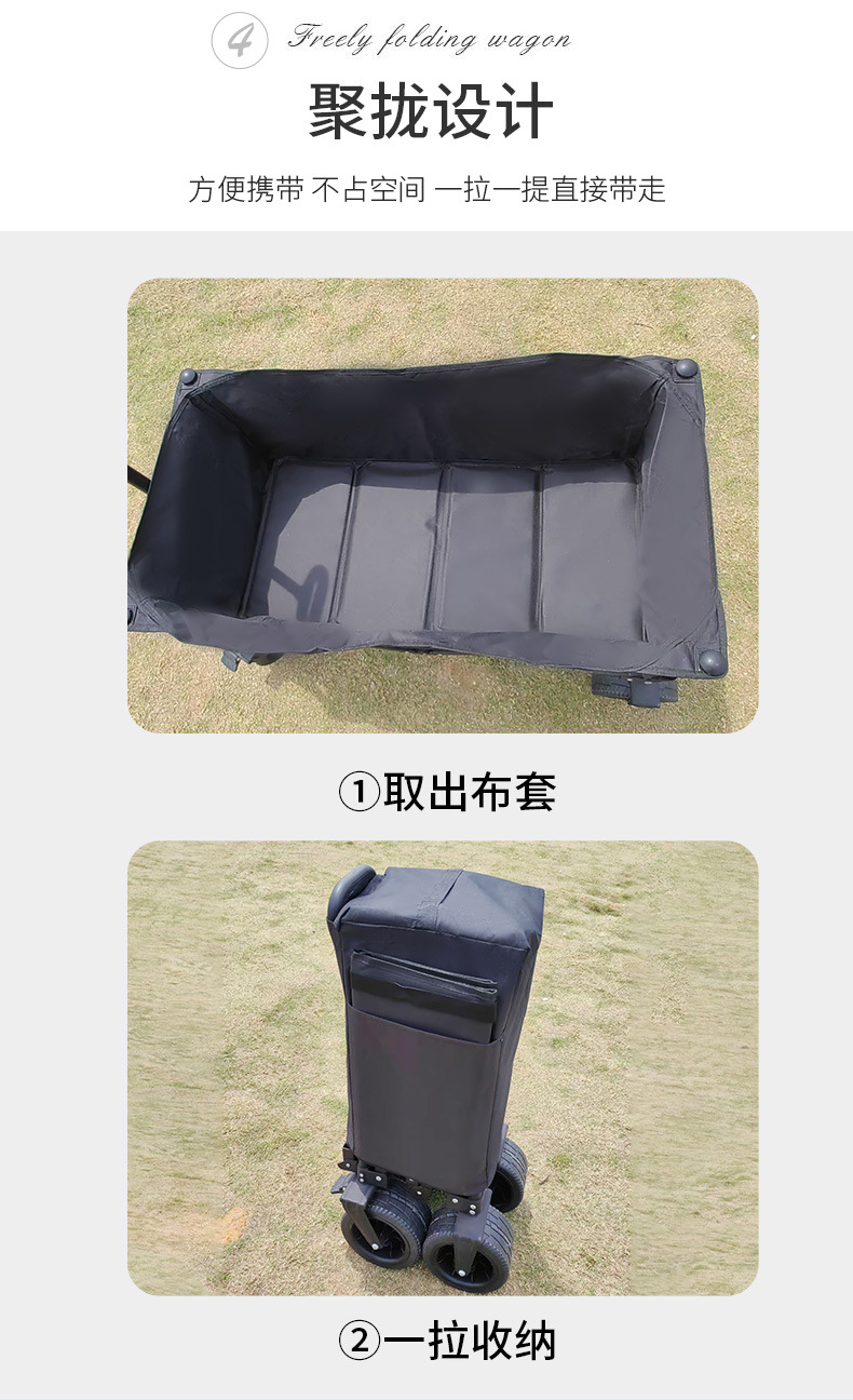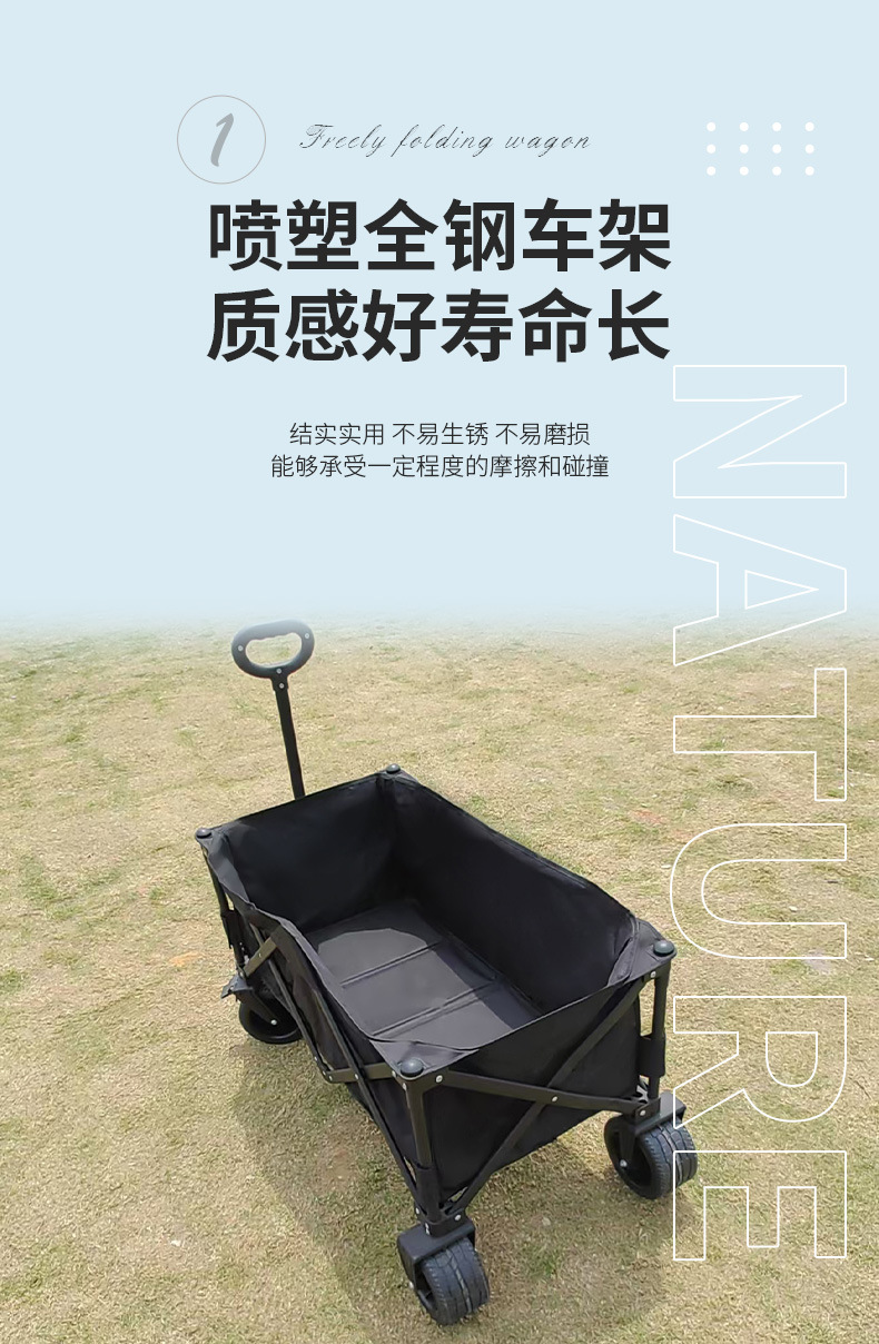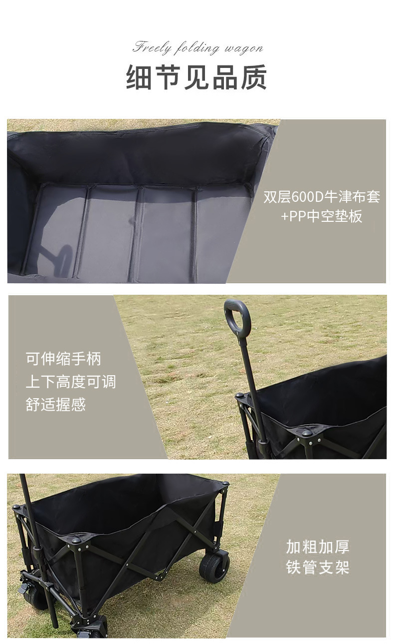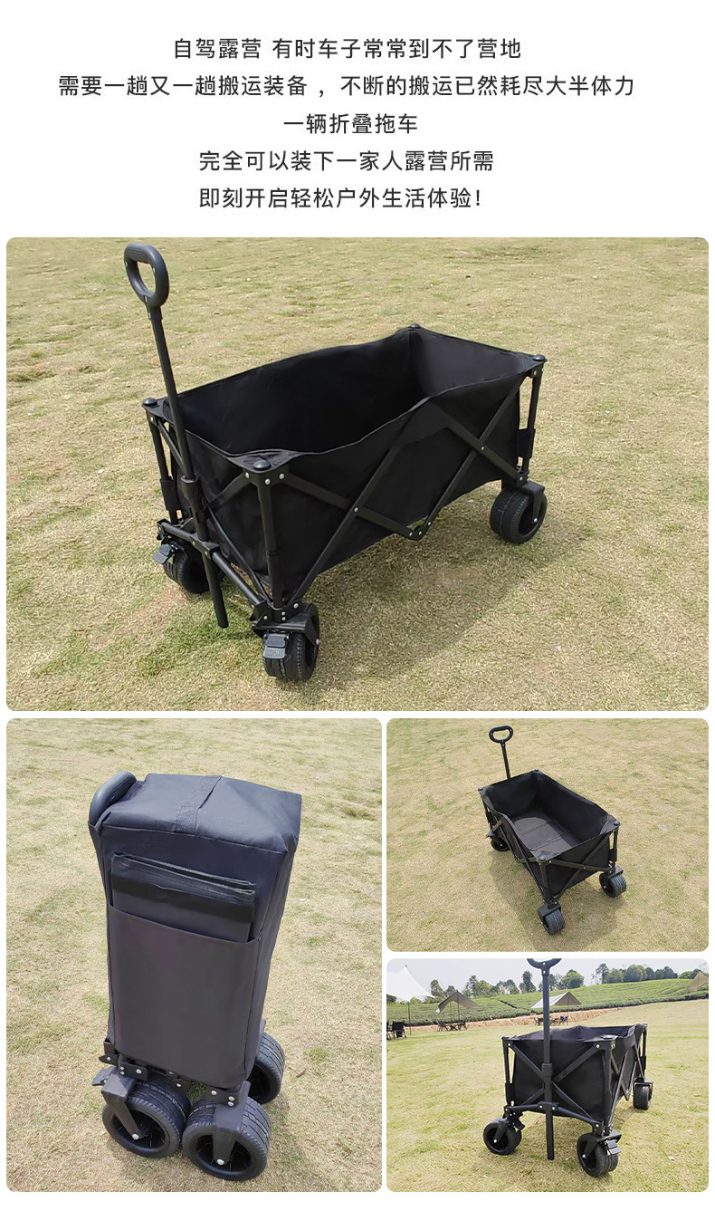 블랙 10inch 푸시 모델 야외 캠핑 피크닉 접이식 트롤리 휴대용 트롤리 경량 식료품 쇼핑 트레일러스토어 가기
