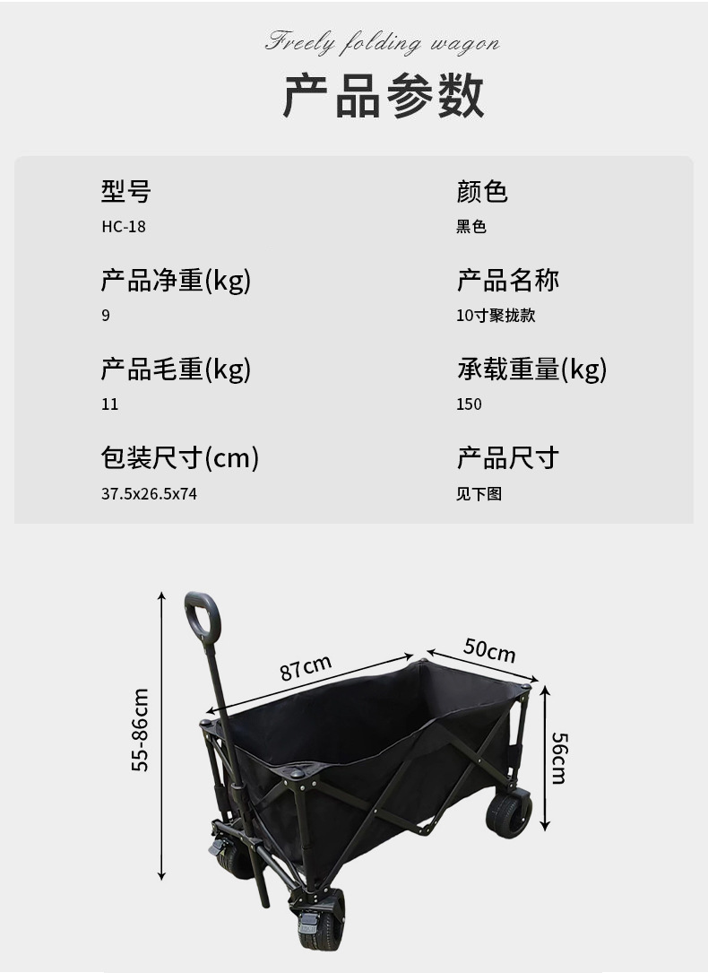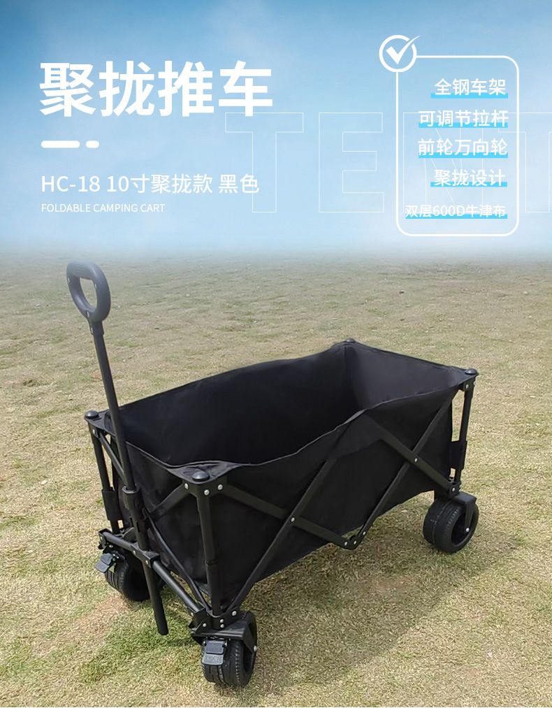 블랙 10inch 푸시 모델 야외 캠핑 피크닉 접이식 트롤리 휴대용 트롤리 경량 식료품 쇼핑 트레일러
