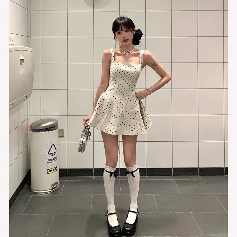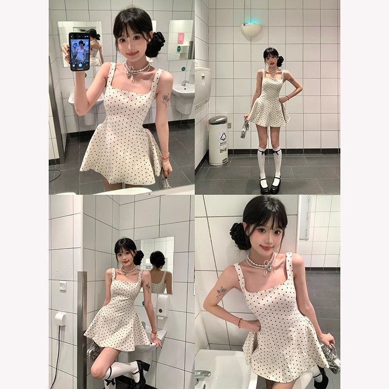 프랑스 스타일 데이트 치마 인쇄 타이트한 허리 슬리밍 가리 스타일 작은 여성 슬링 원피스 여름 새로운 A 라인 스커트스토어 가기