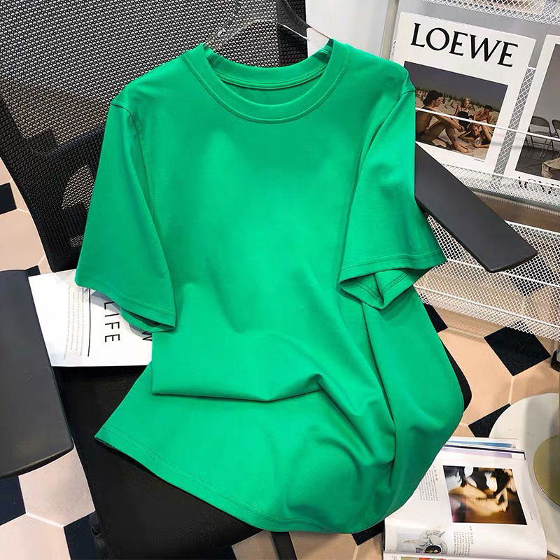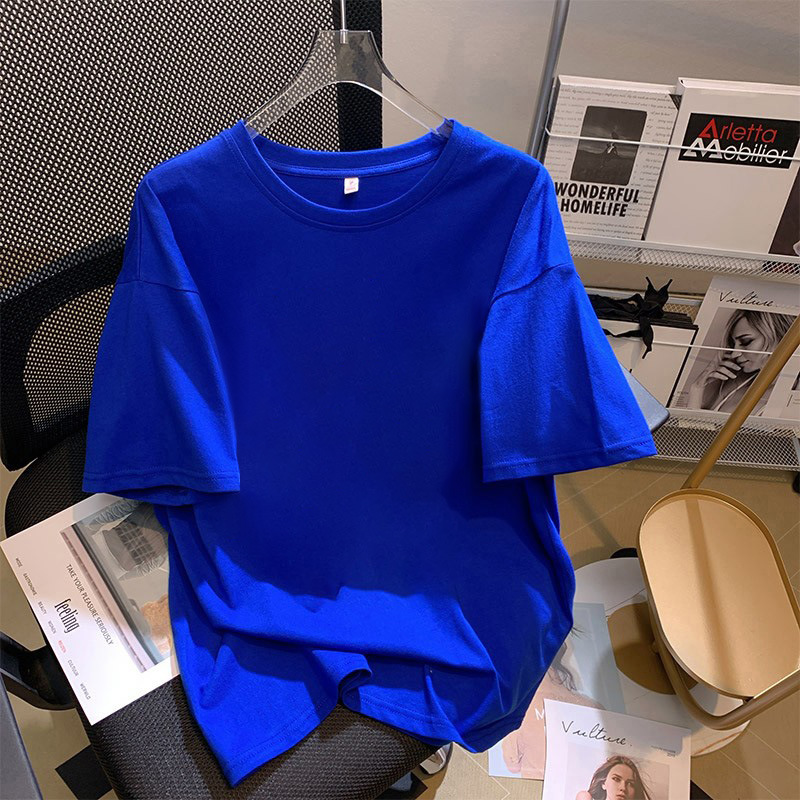 클라인 블루 코튼 반팔 티셔츠 여성 2025 년 여름 뉴 루즈 플러스 사이즈 티셔츠 화이트 반소매 탑 트렌디
