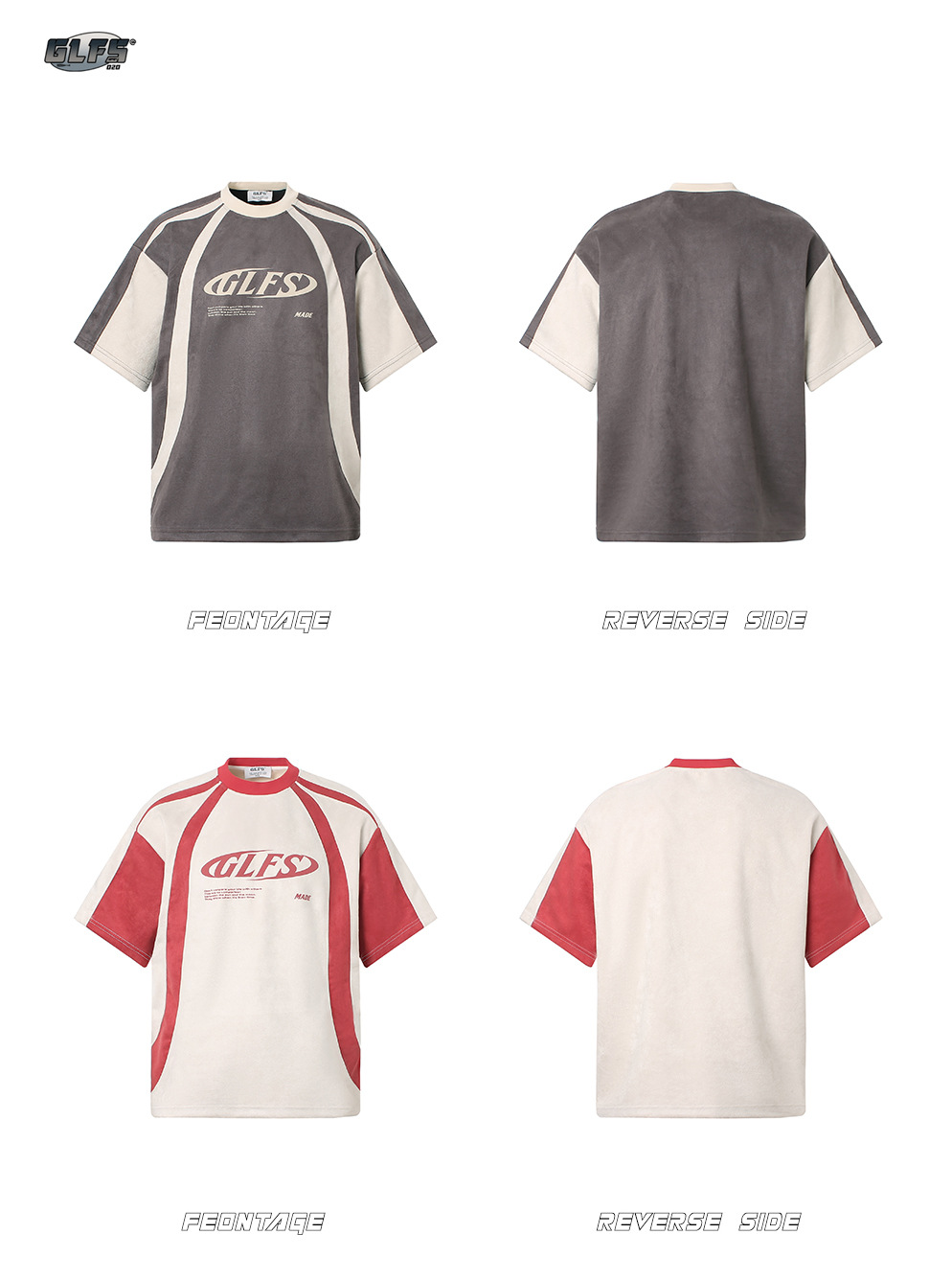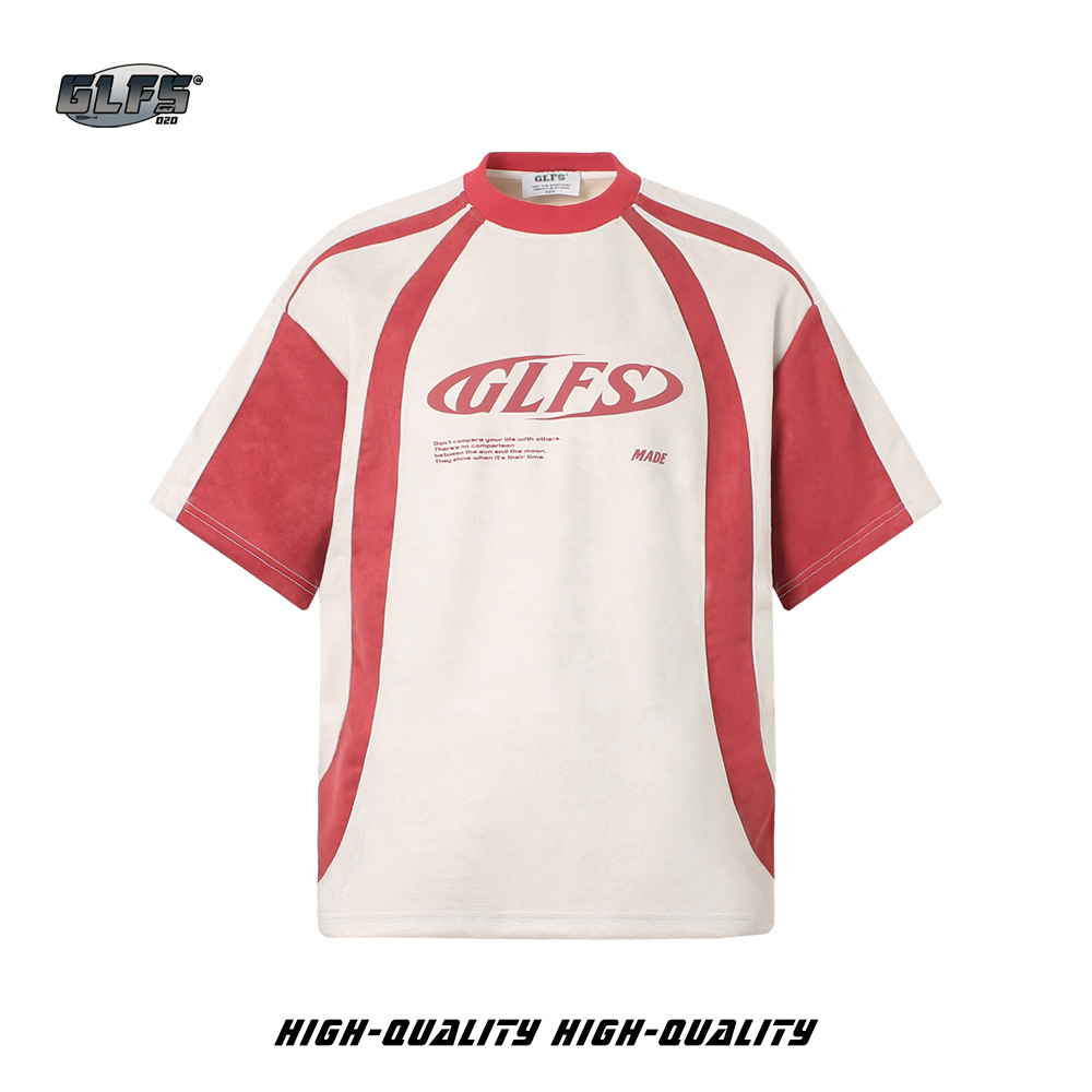GLFS 국가 패션 남성 스티칭 디자인 스웨이드 짧은 소매 폼 인쇄 하이 스트리트 티 대학 스타일 청소년 t스토어 가기