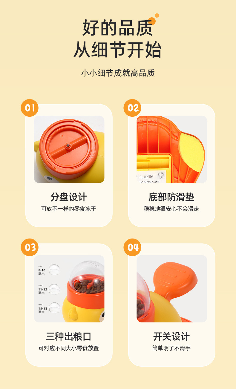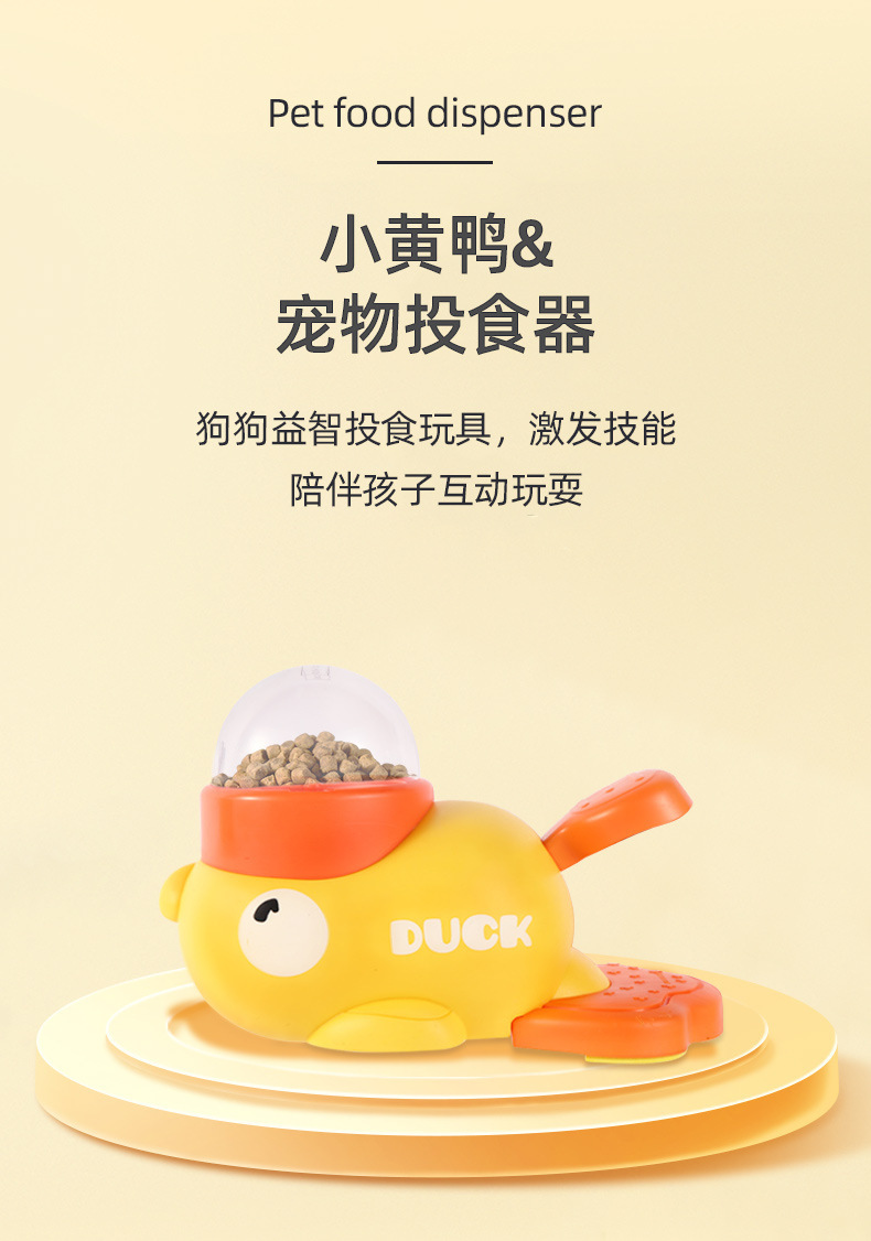 아마존 폭발 작은 노란 오리 누출 식품 애완 동물 고양이 개 유니버설 인터랙티브 장난감 트레이너 자동 피더