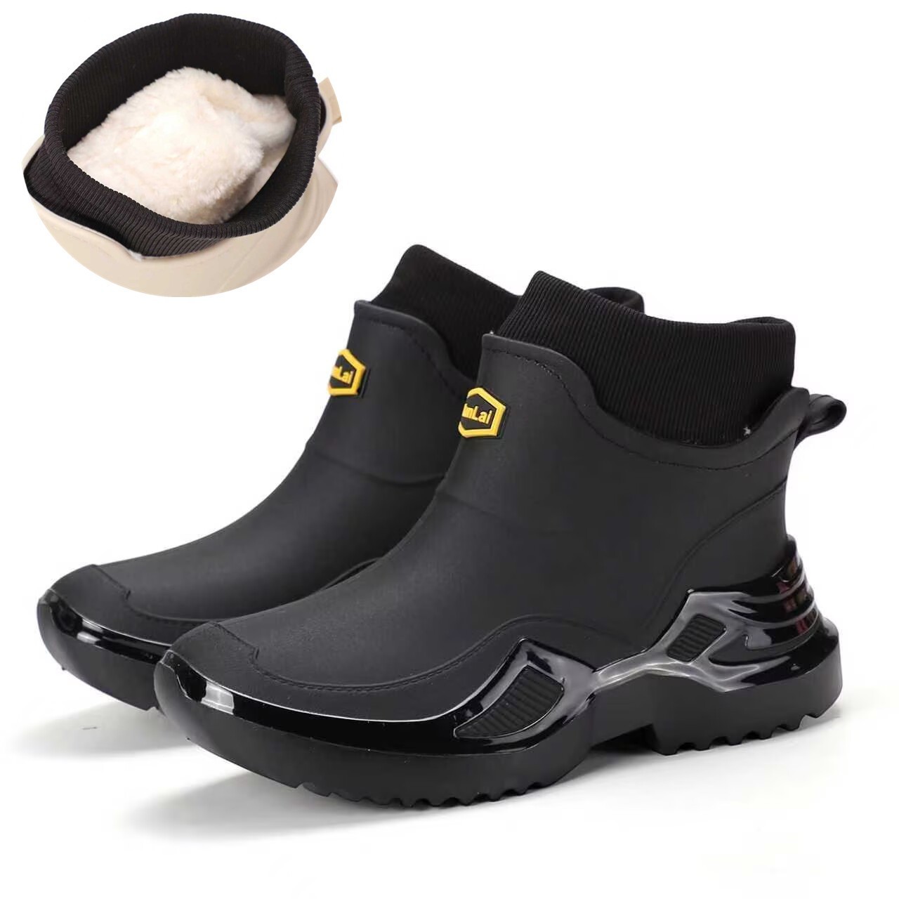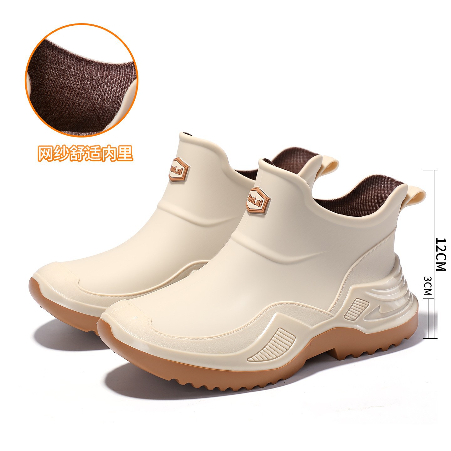 밀리터리 그린 트렌디하고 패셔너블한 남성용 짧은 장화, 스포츠 스타일 남성용 방수 고무신, 두껍고 넓어진 미끄럼 방지 남성용 대외 무역 장화