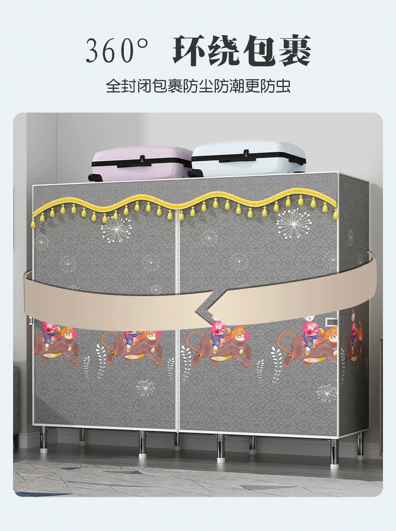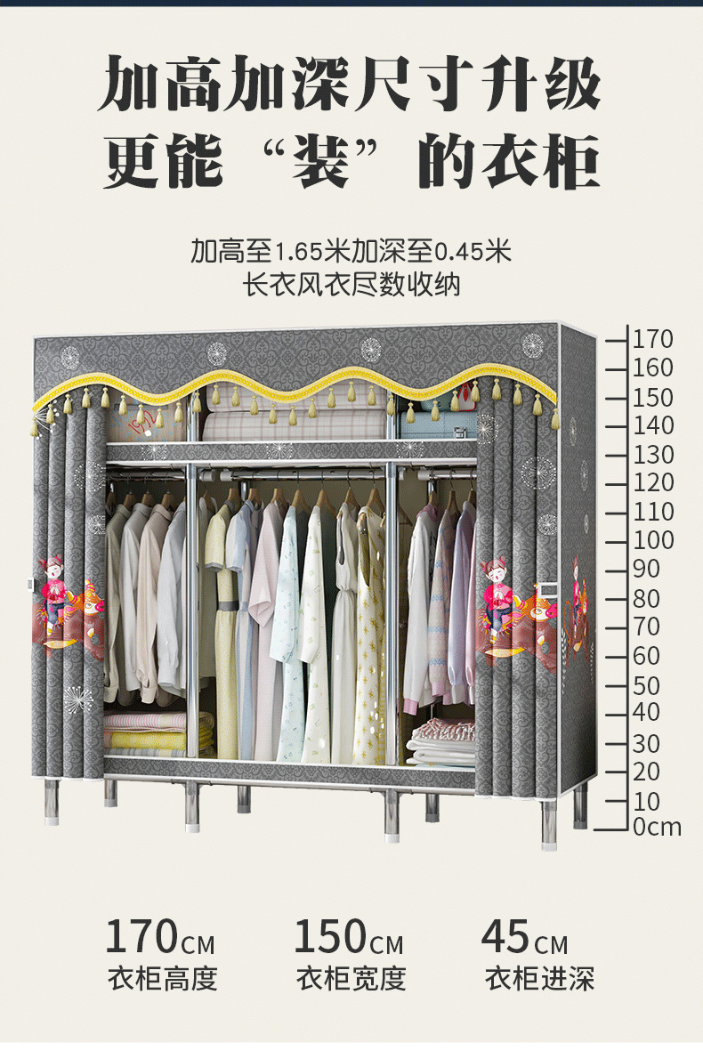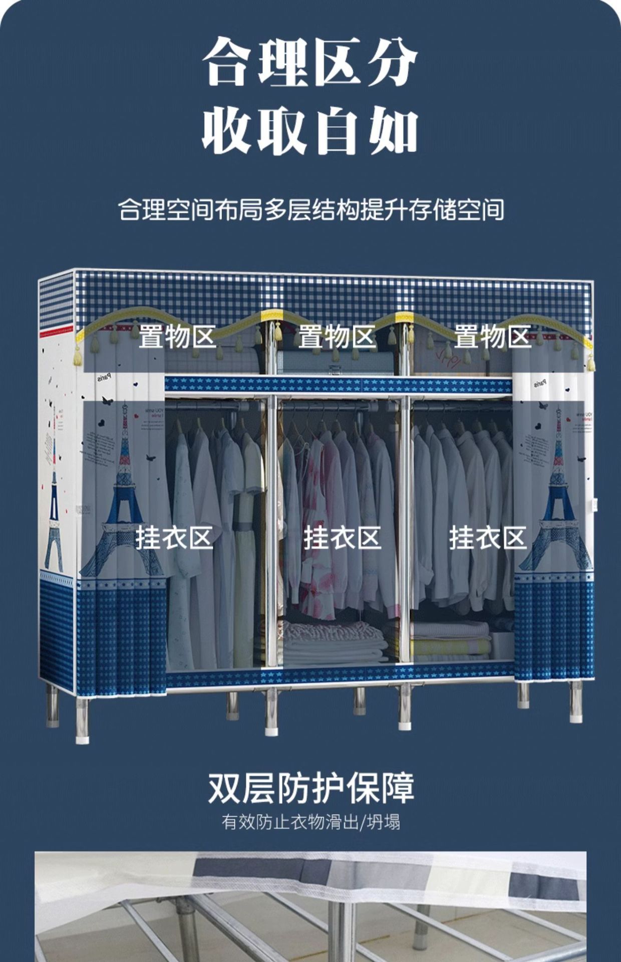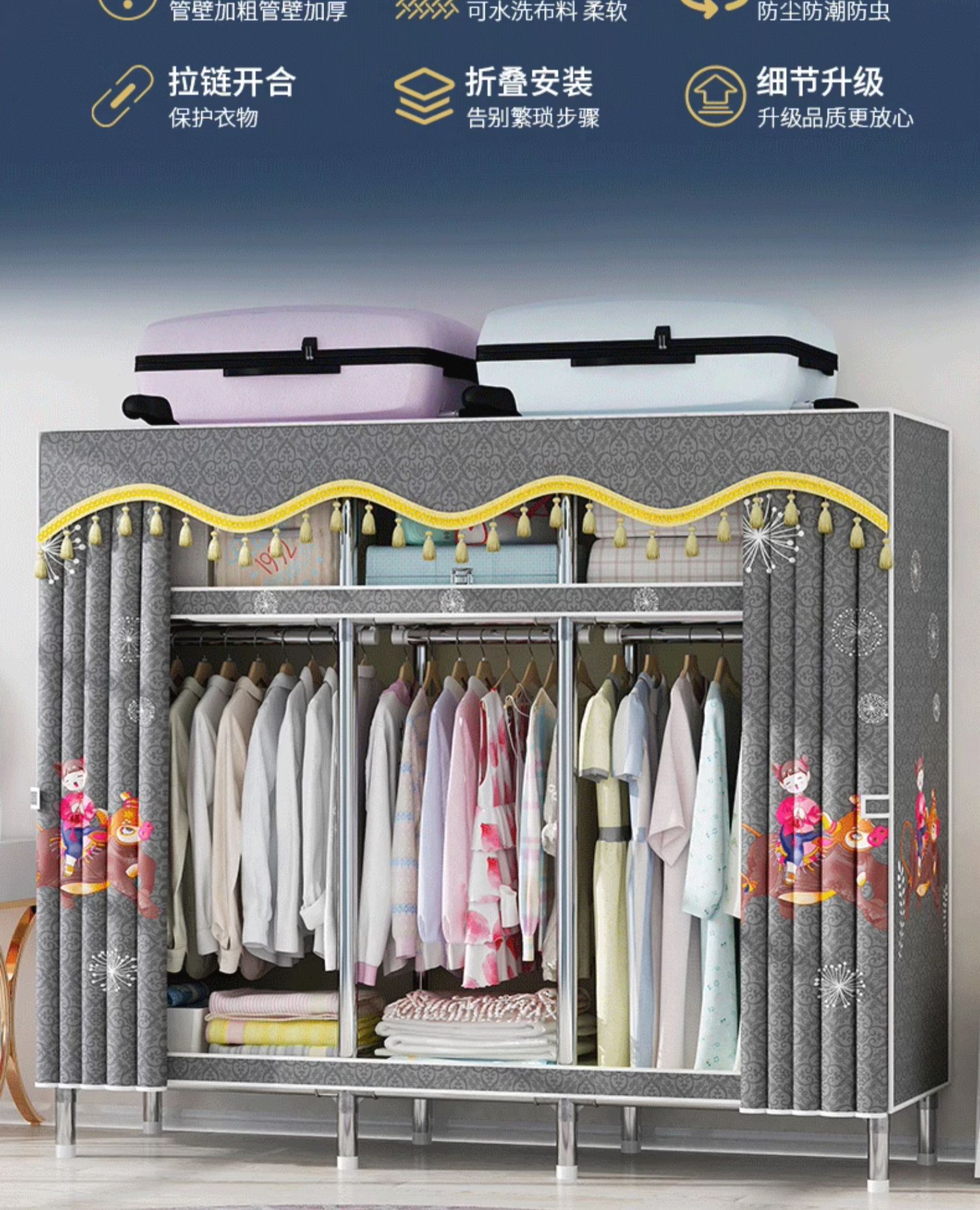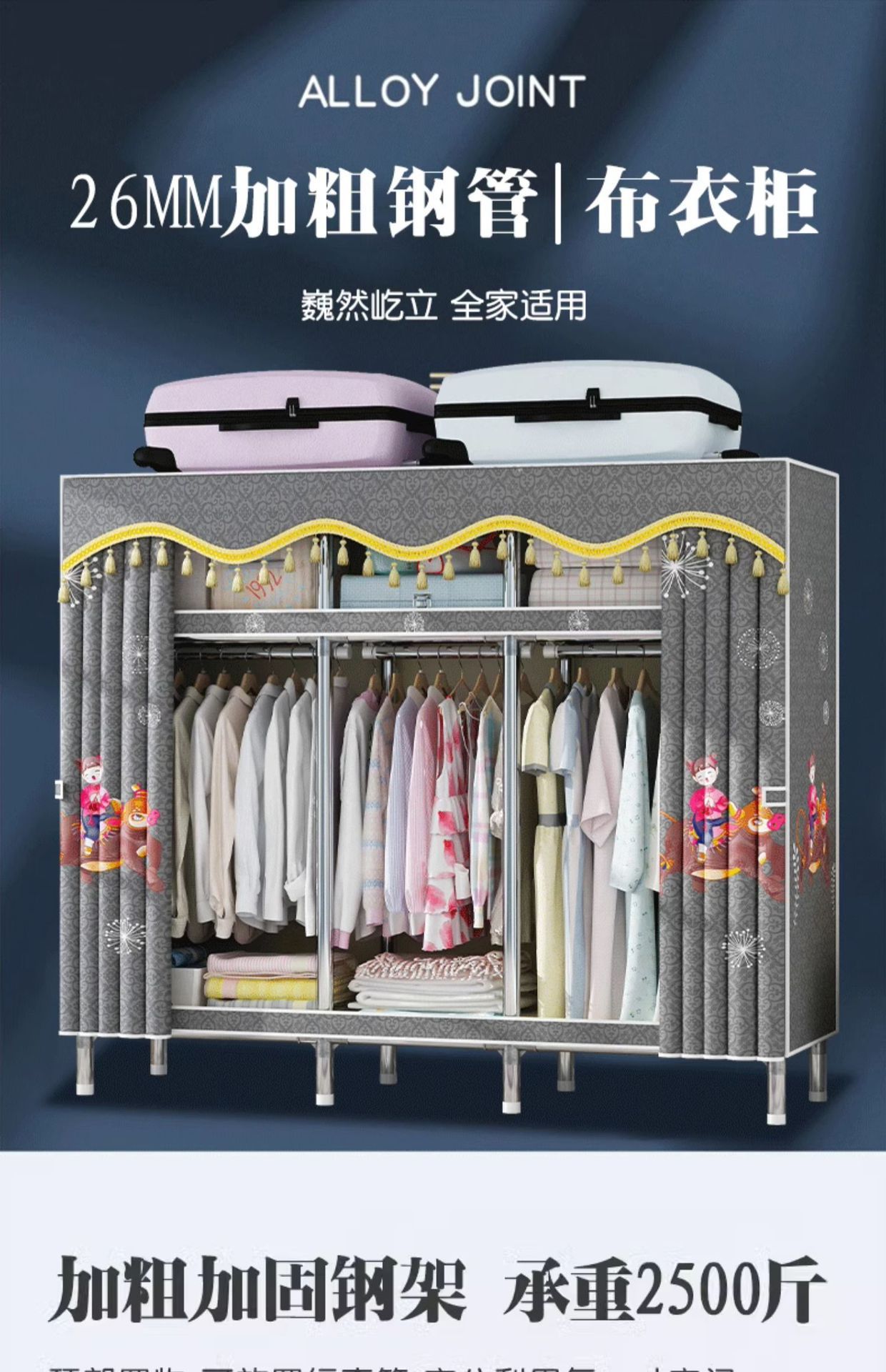 가정용 침실을 위한 간단한 옷장, 조립식 천 옷장, 강철 파이프, 두껍고 강하며 내구성이 뛰어난 천 옷장, 임대실용
