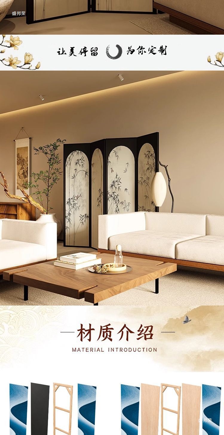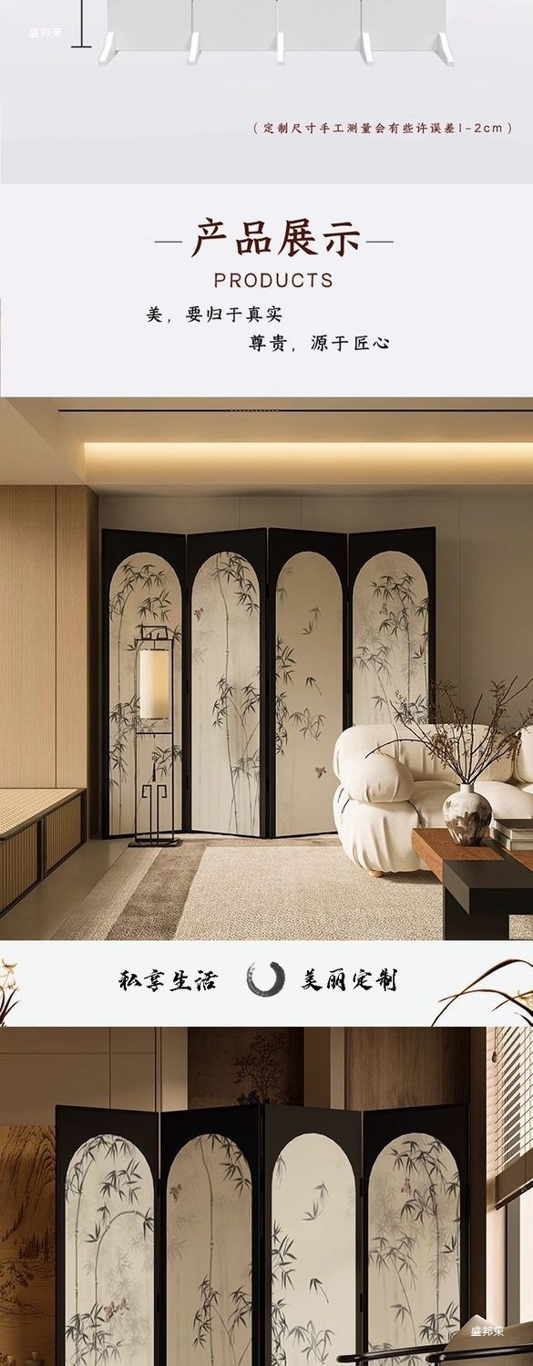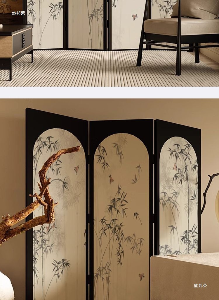 새로운 중국 스타일 대나무 스크린 파티션 거실 프랑스 장식 입구 벽 선 접이식 모바일 티 룸 대나무 접이식 화면
