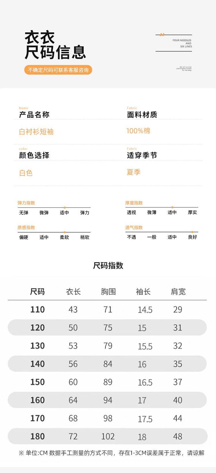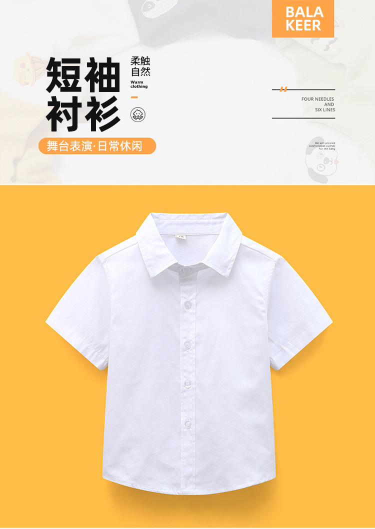 아동용 셔츠 봄 여름 반팔 소년 소녀 흰색 셔츠 면 중대형 아동 공연복 초등학교 교복 학급 교복