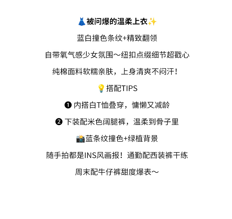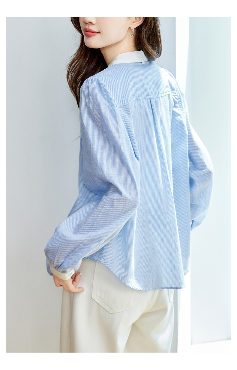 면 코튼 블루 스트라이프 셔츠 여성용 긴팔 2026 봄 신상 작은 사각 칼라 배색 디자인 셔츠스토어 가기