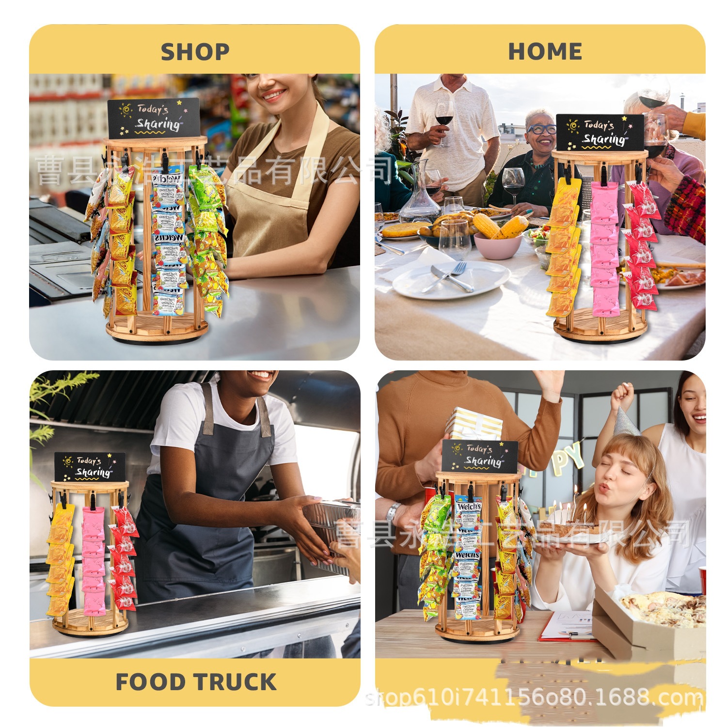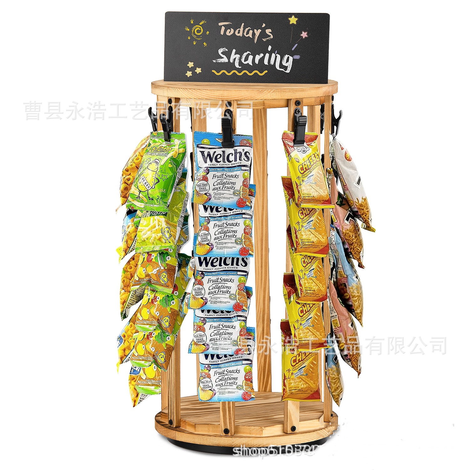 나무 리셉션 스낵 디스플레이 랙 샹차오 감자 칩 스토리지 랙 데스크탑 회전 가능한 스토리지 랙 칠판