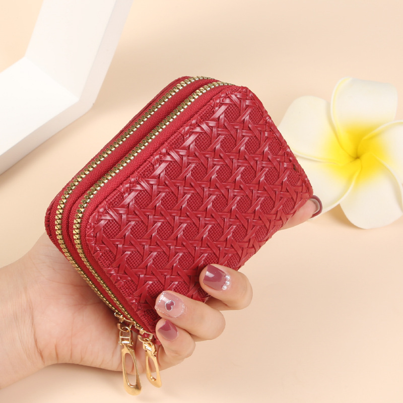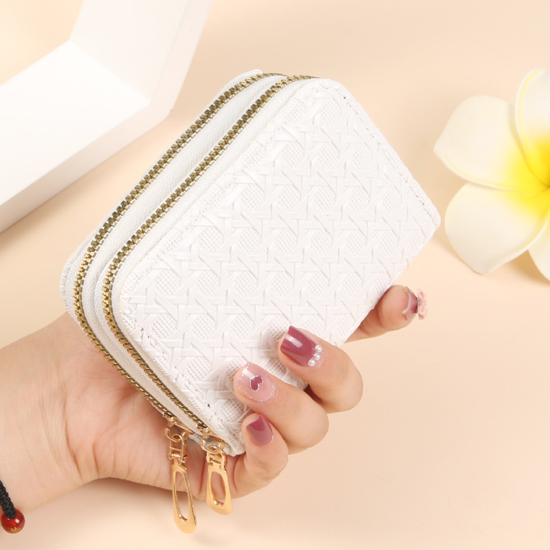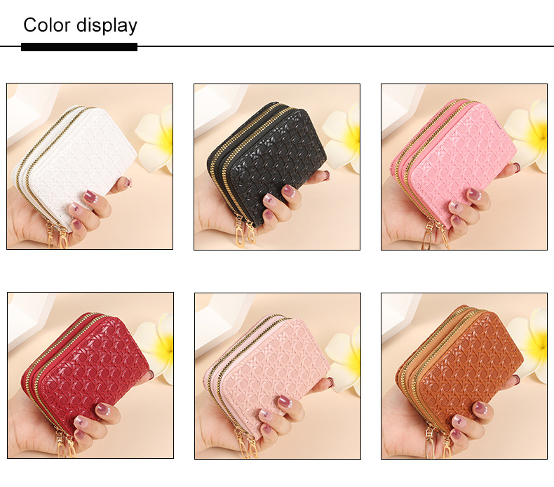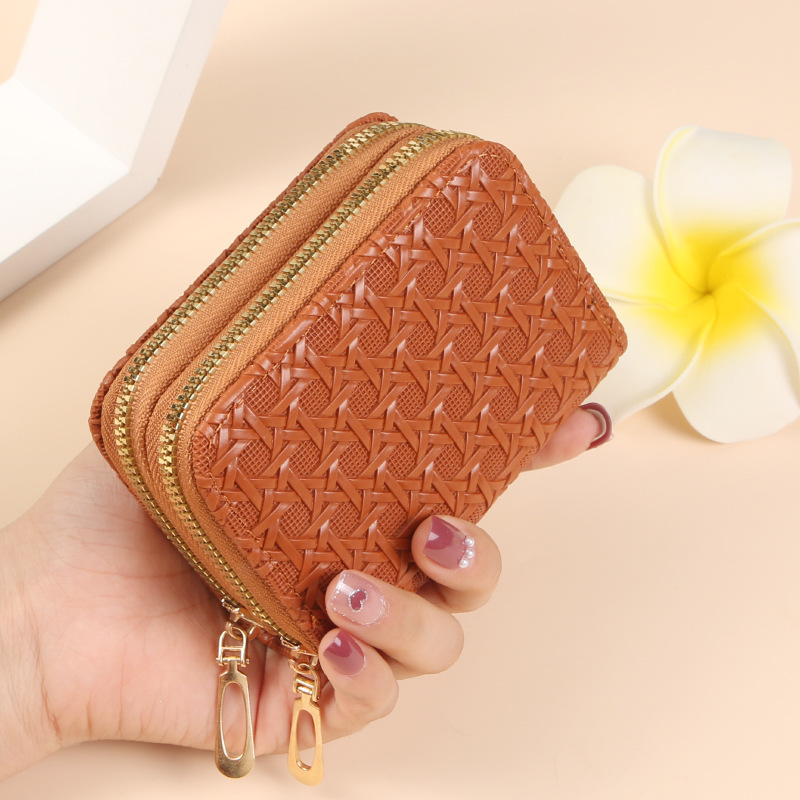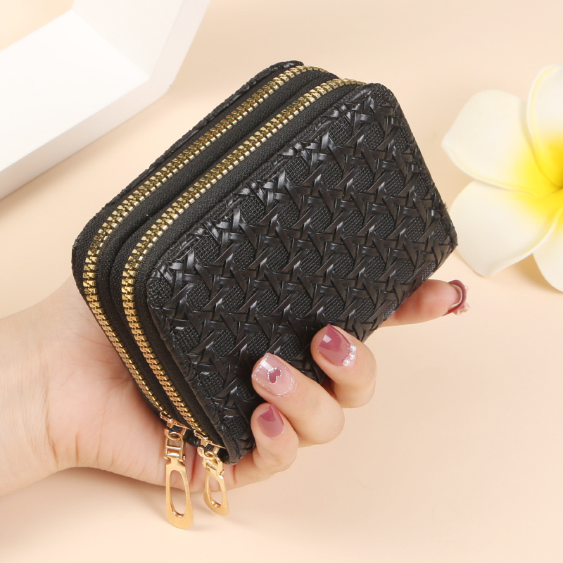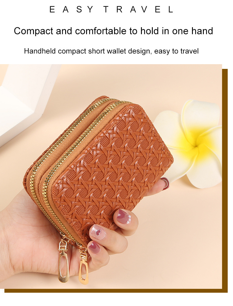 국경 세대 지갑 여성의 짧은 중공 짠 패턴 이중 지퍼 대용량 동전 지갑 다기능 특허 가죽 카드 가방스토어 가기