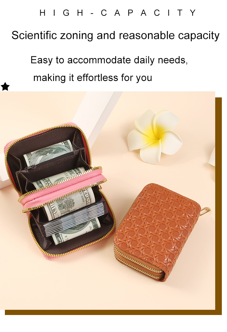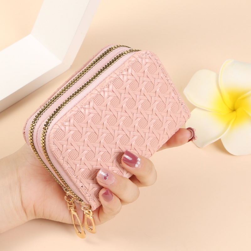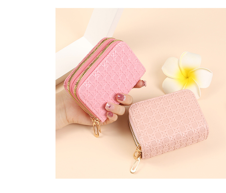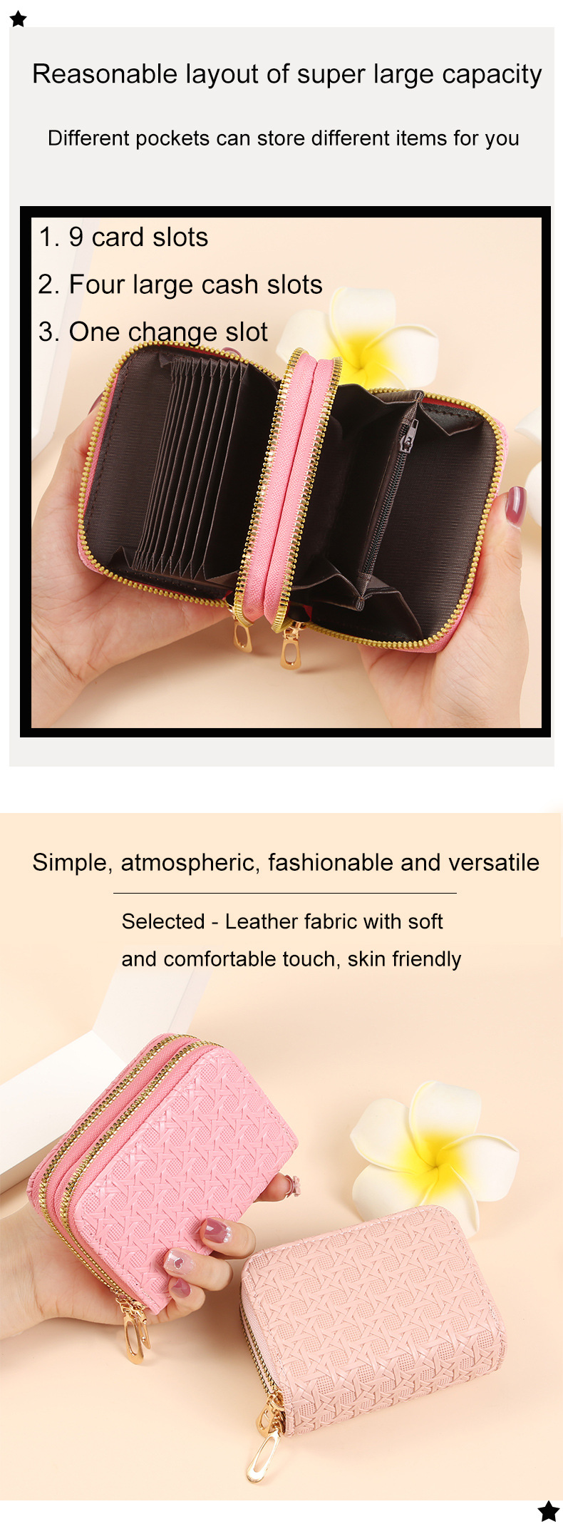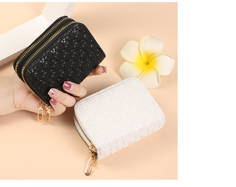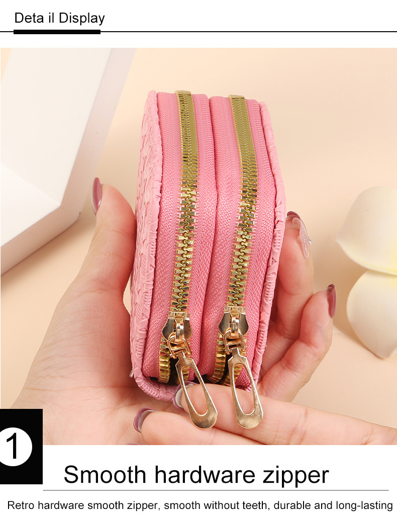 국경 세대 지갑 여성의 짧은 중공 짠 패턴 이중 지퍼 대용량 동전 지갑 다기능 특허 가죽 카드 가방스토어 가기