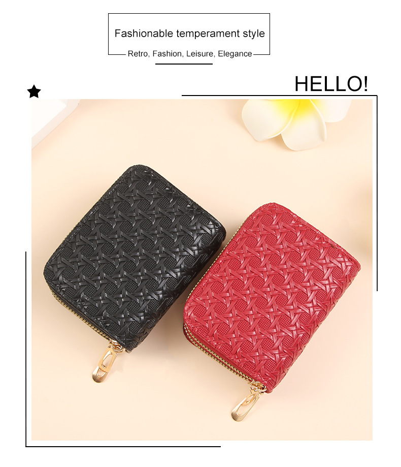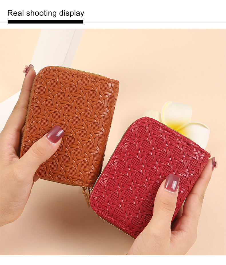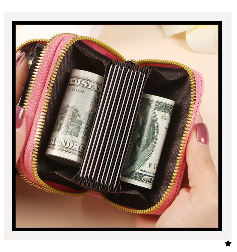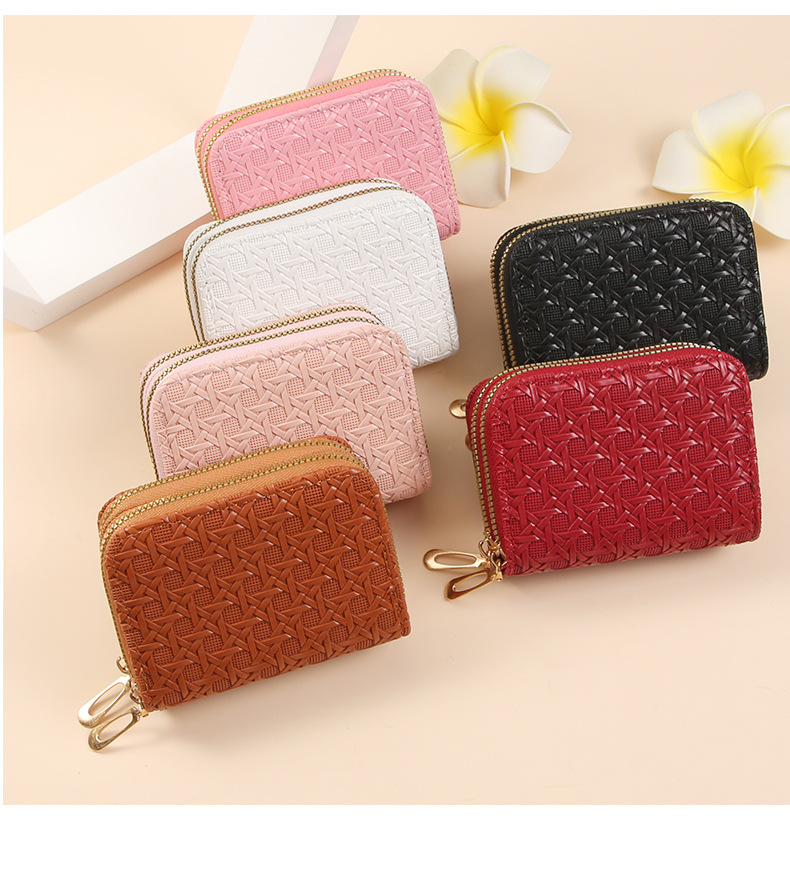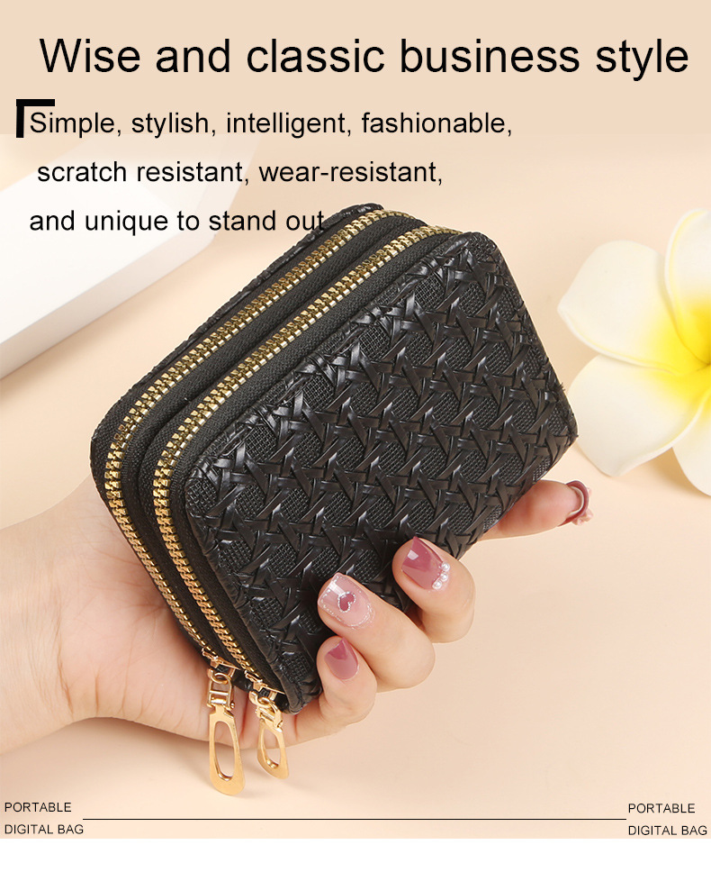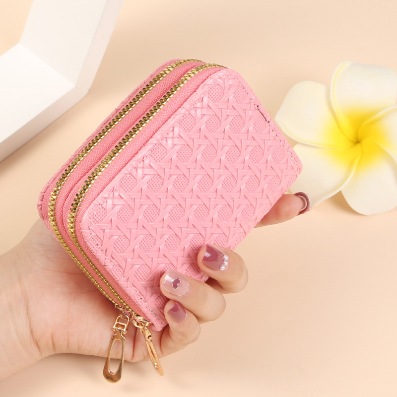 국경 세대 지갑 여성의 짧은 중공 짠 패턴 이중 지퍼 대용량 동전 지갑 다기능 특허 가죽 카드 가방스토어 가기