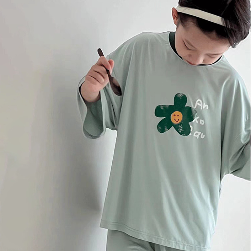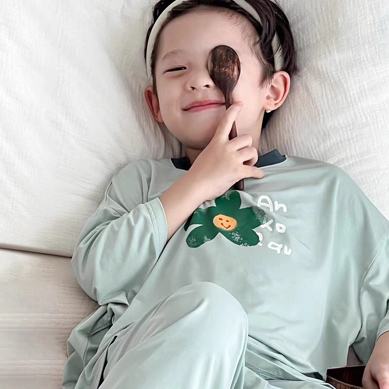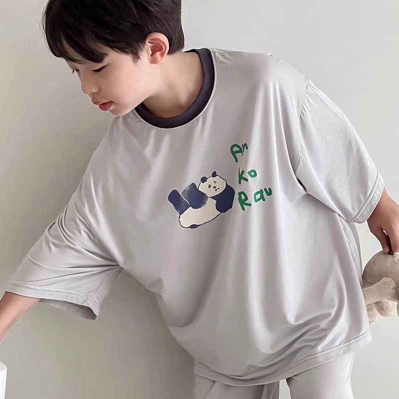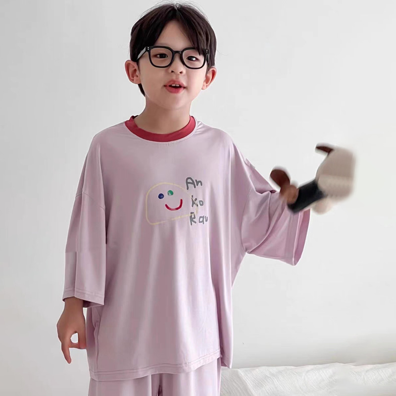 모달 어린이 잠옷 2025 여름 새 소년 반팔 가정 의류 세트 소년 캐주얼 의류 에어컨 의류스토어 가기