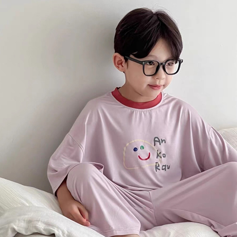 모달 어린이 잠옷 2025 여름 새 소년 반팔 가정 의류 세트 소년 캐주얼 의류 에어컨 의류