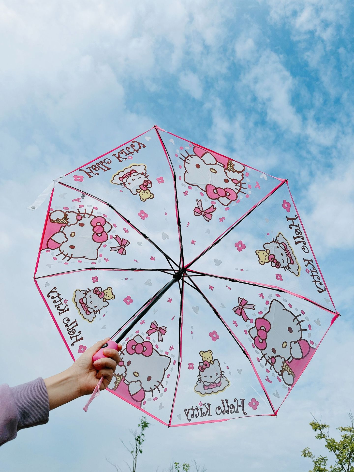 전화 키티 Xiaoxin 투명 우산 접는 투명 자동 우산 귀여운 만화 우산 70% off 공장 도매스토어 가기