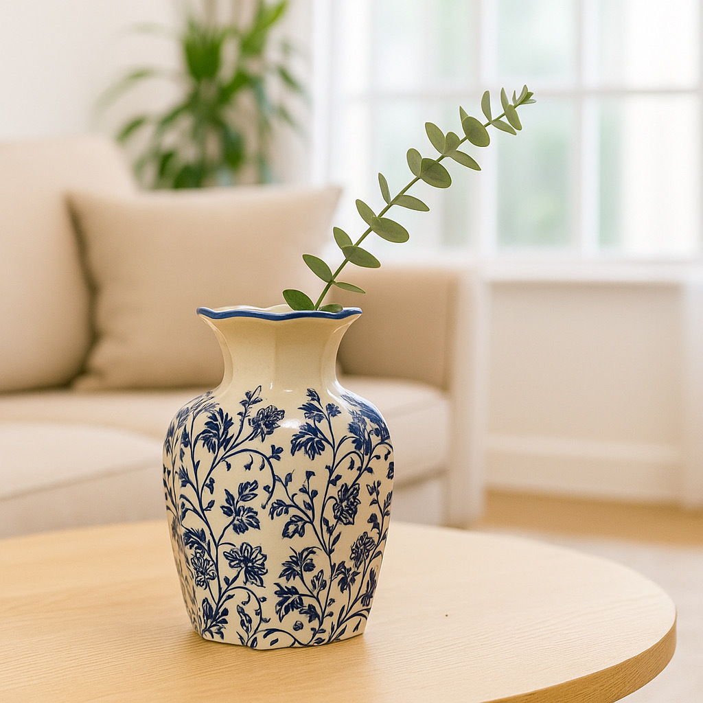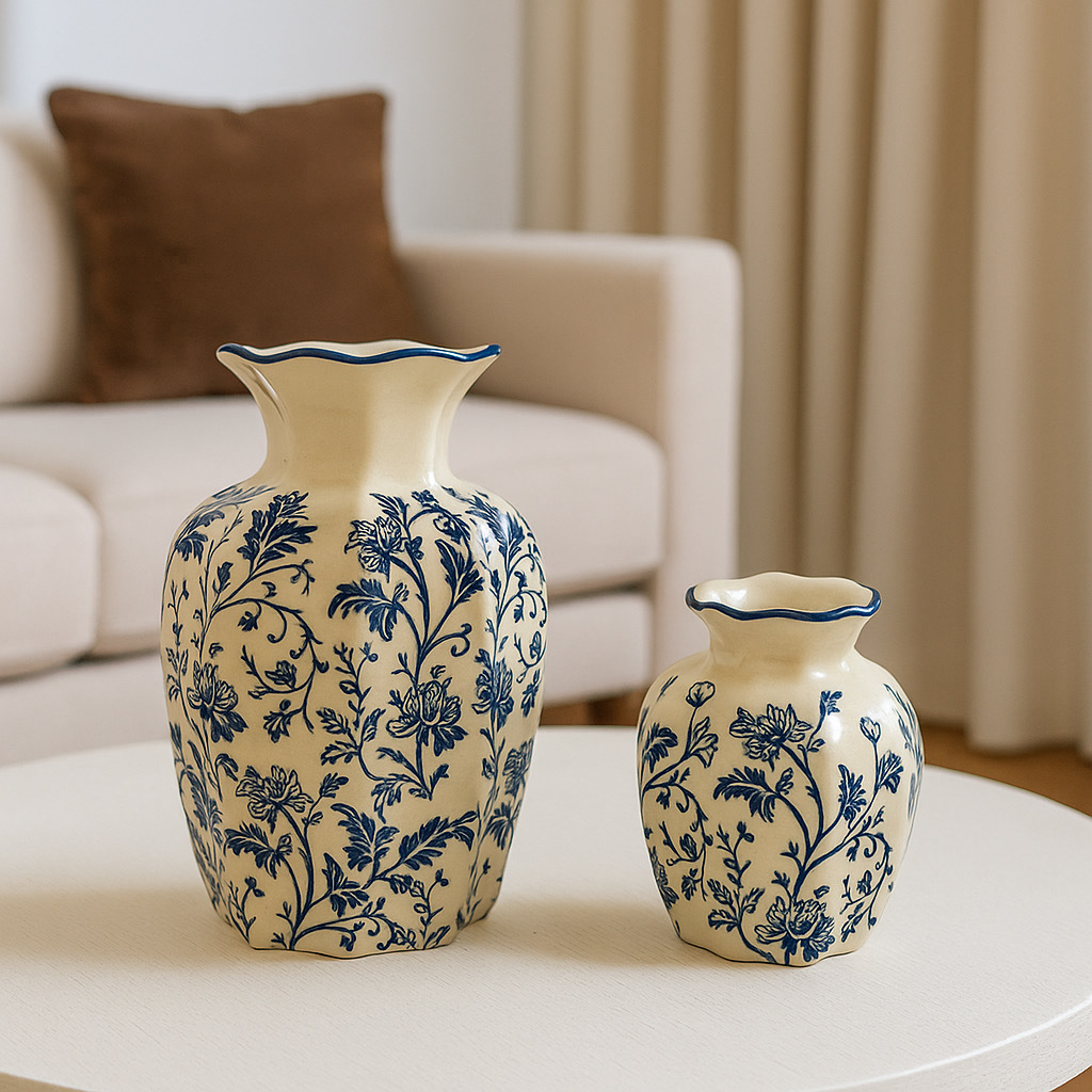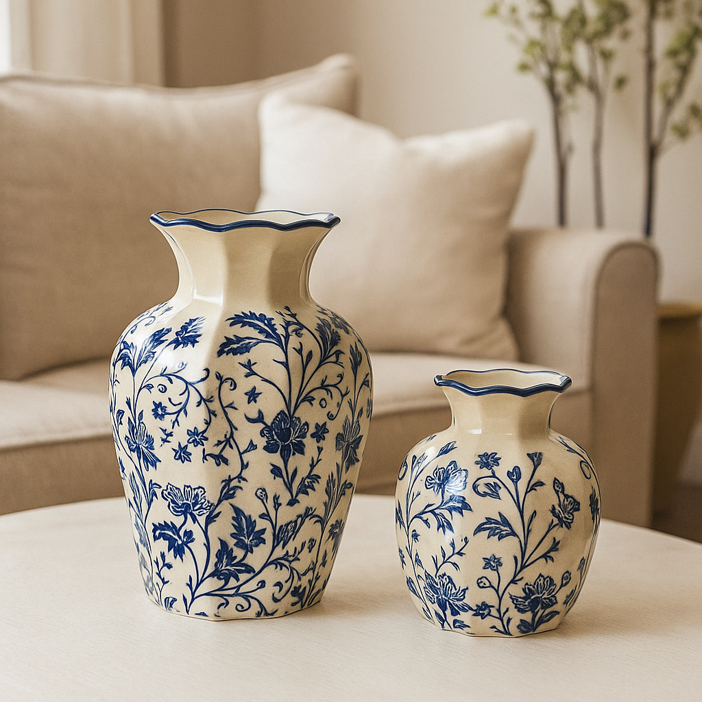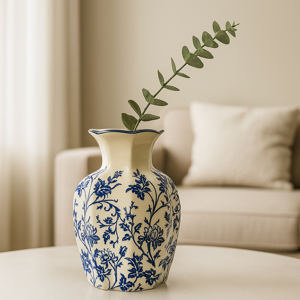 새로운 중국 스타일 복고풍 파란색과 흰색 도자기 꽃병, 고급 사무실 장식품, 거실 식탁 장식 꽃병