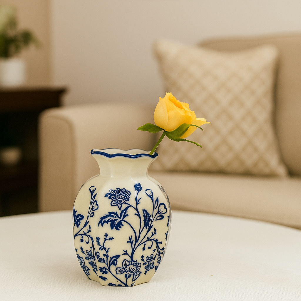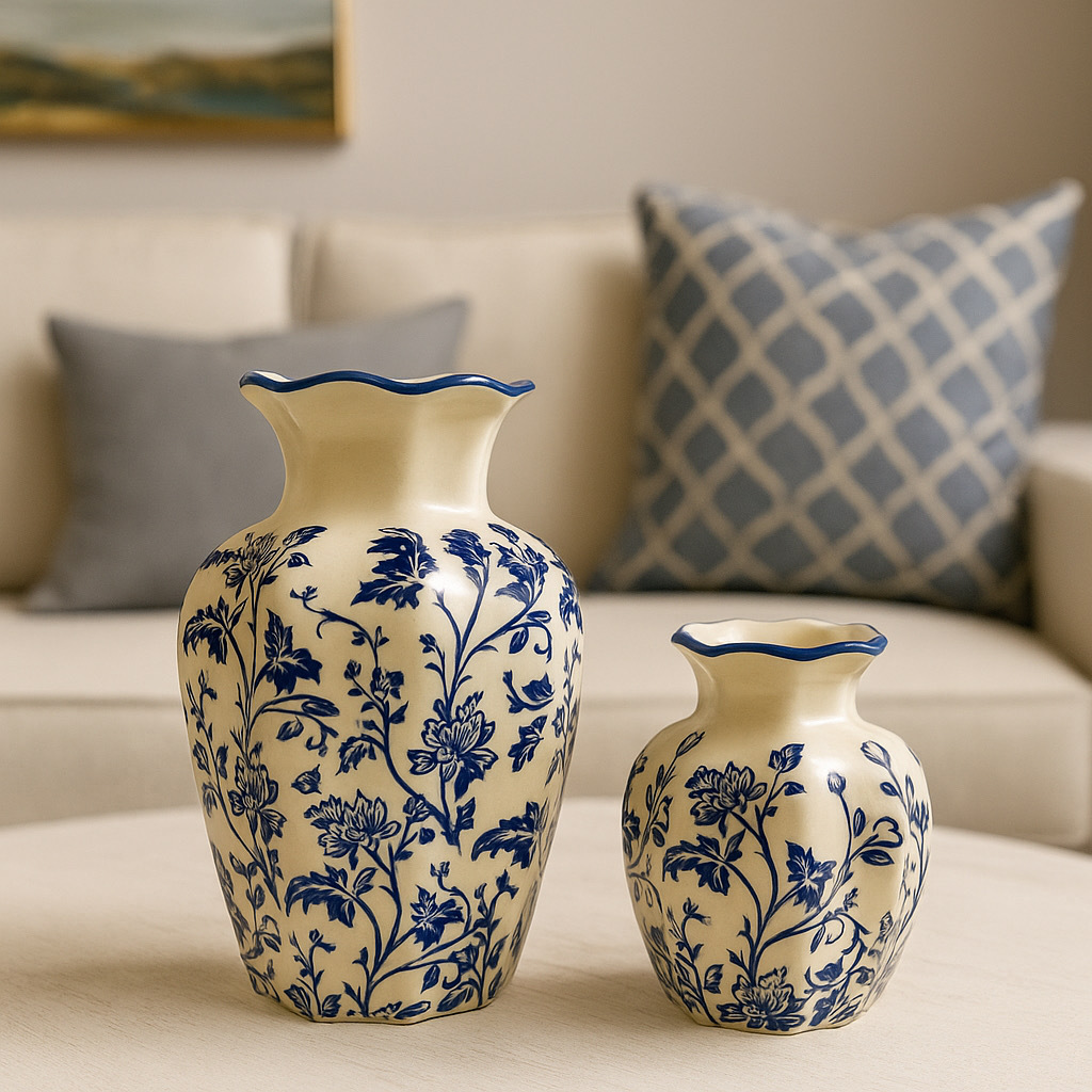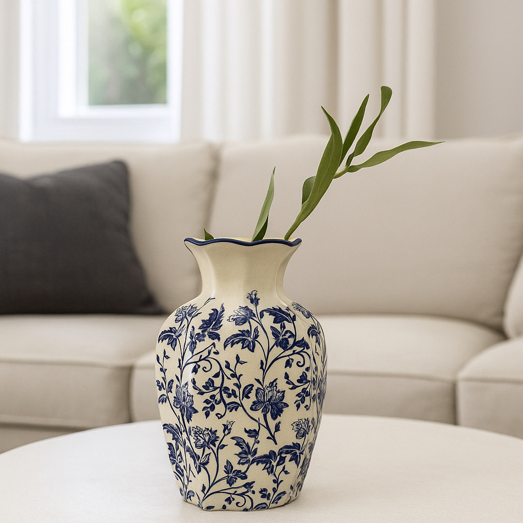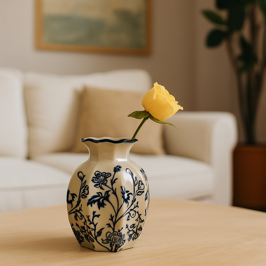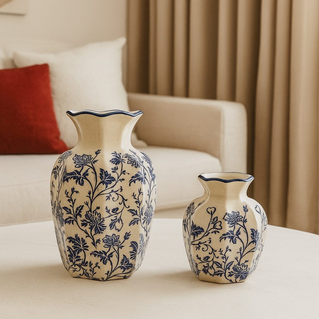 새로운 중국 스타일 복고풍 파란색과 흰색 도자기 꽃병, 고급 사무실 장식품, 거실 식탁 장식 꽃병