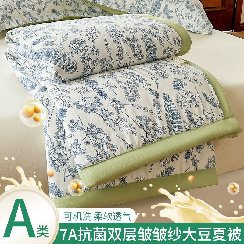 优艺欣夏被7A抗菌双层皱皱纱大豆夏凉被空调被单双人可机洗儿童被