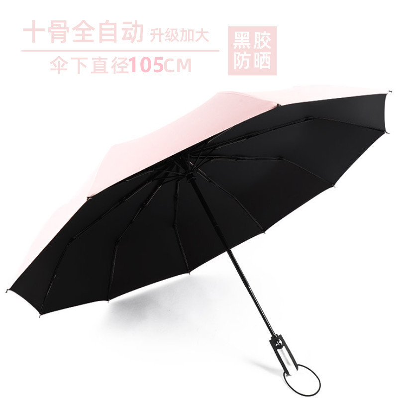 자동 우산 남녀공용 접이식 양산 겸용 우산, 햇빛 차단, 자외선 차단, 두꺼운 차양 우산, 블랙 글로시 자외선 차단