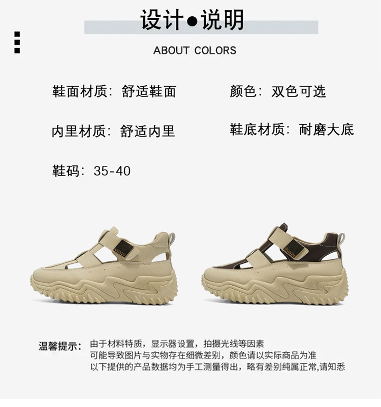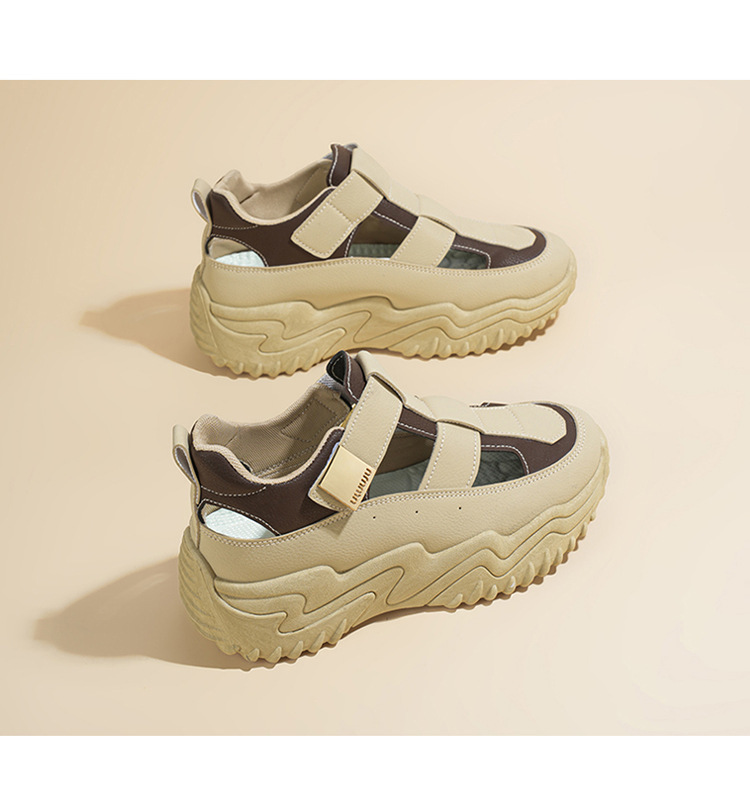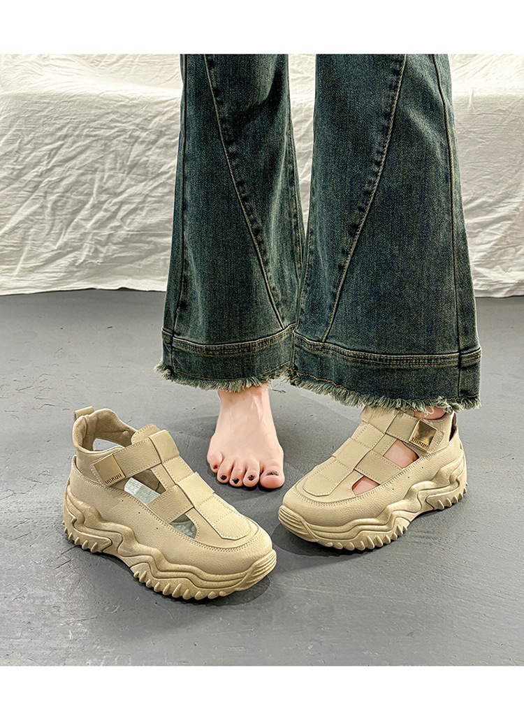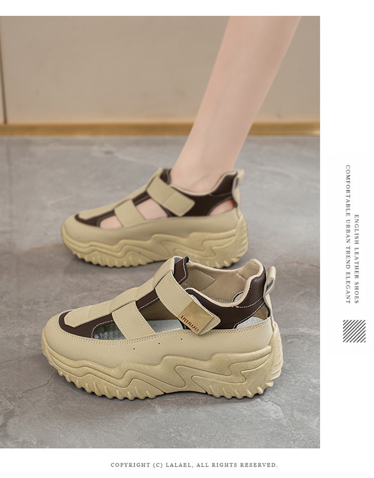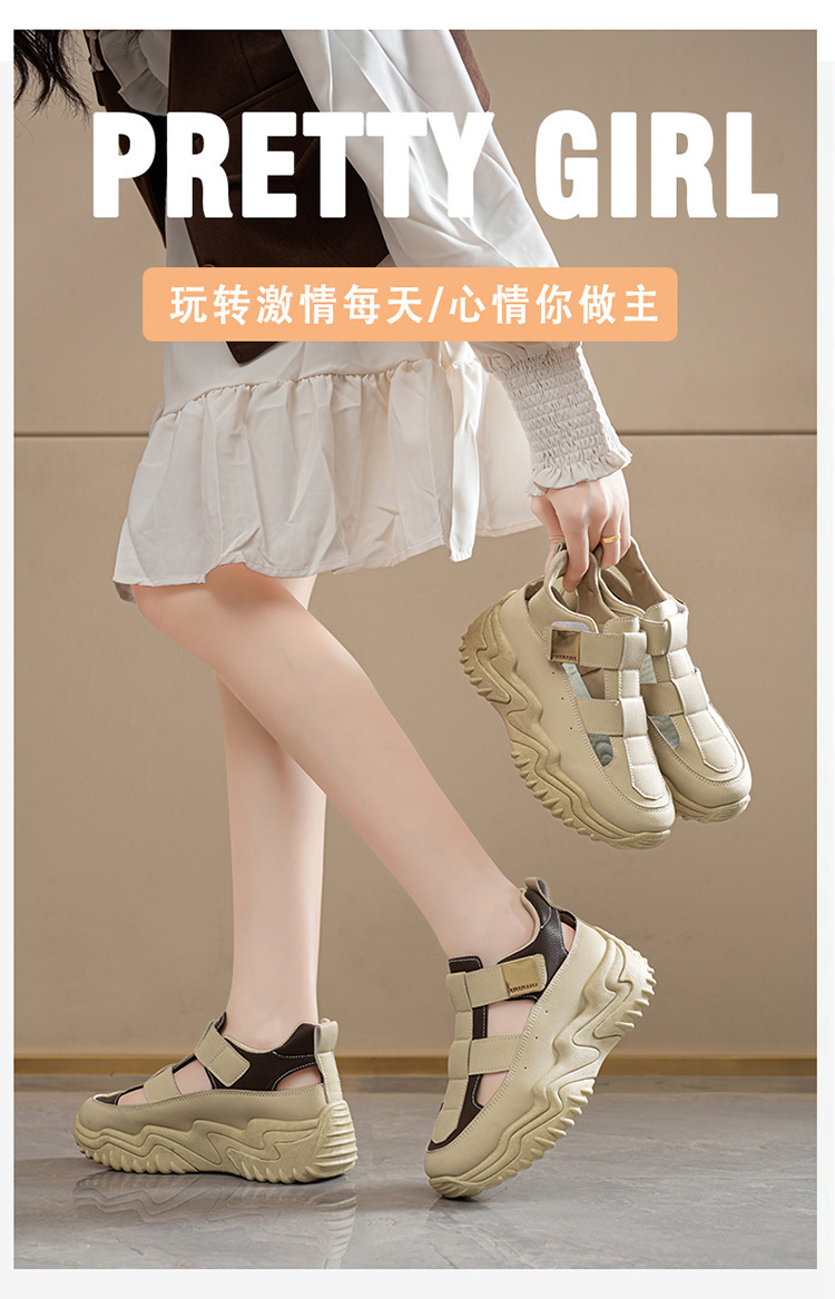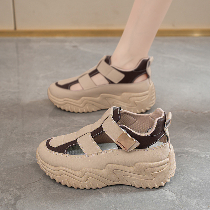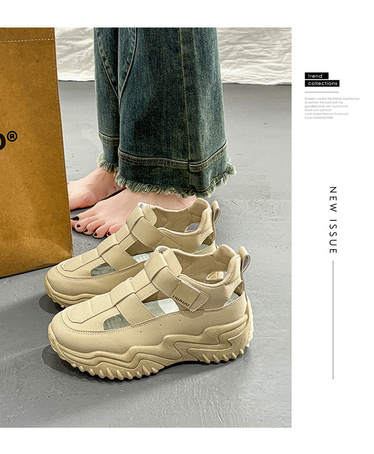 여름 여성 신발 새로운 통기성 중공 샌들 여성 한국식 올매치 두꺼운 밑창 증가 스포츠 캐주얼 토레 신발
