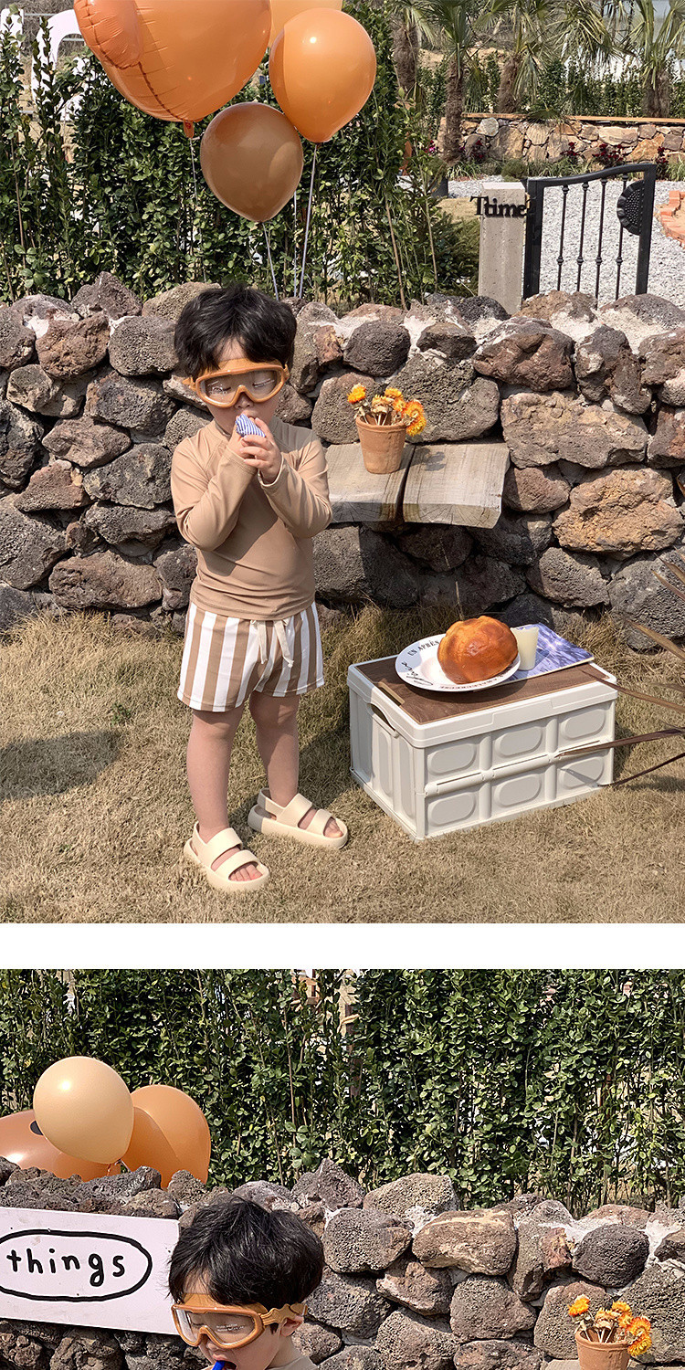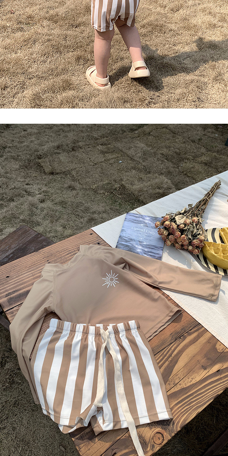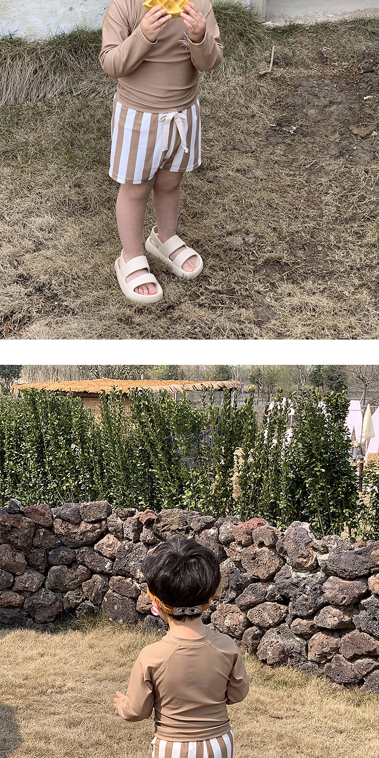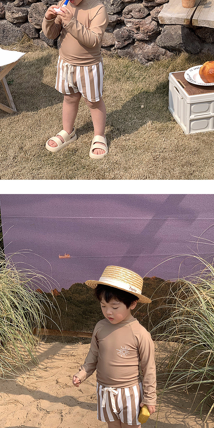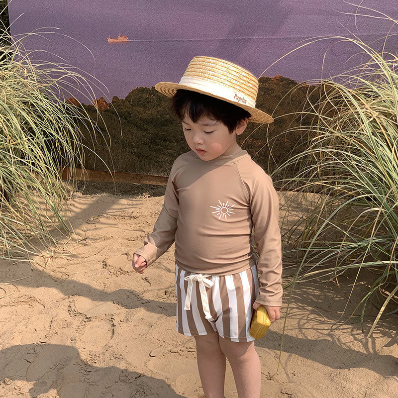 Q3Yins 인기 있는 태양 줄무늬 어린이 수영복 소년 및 중년 어린이 분할 자외선 차단 수영복 아기 유행 수영