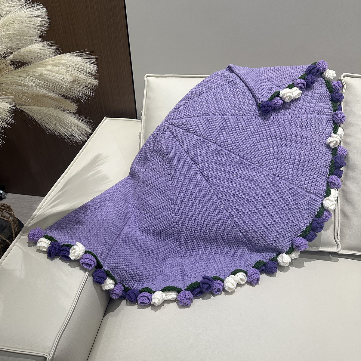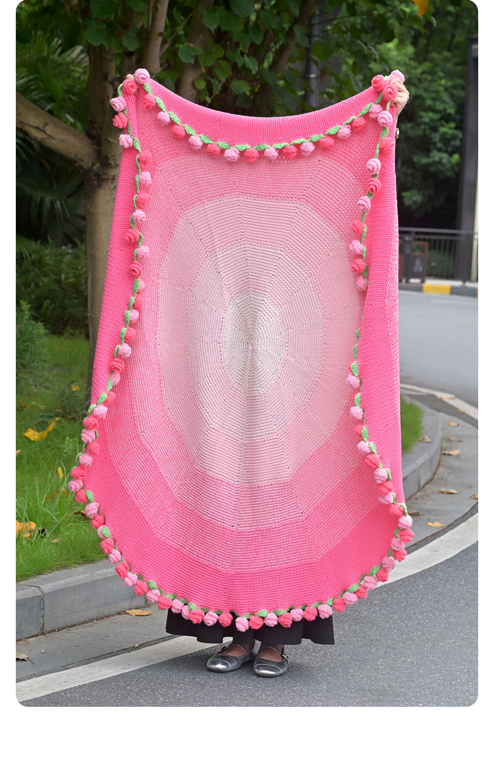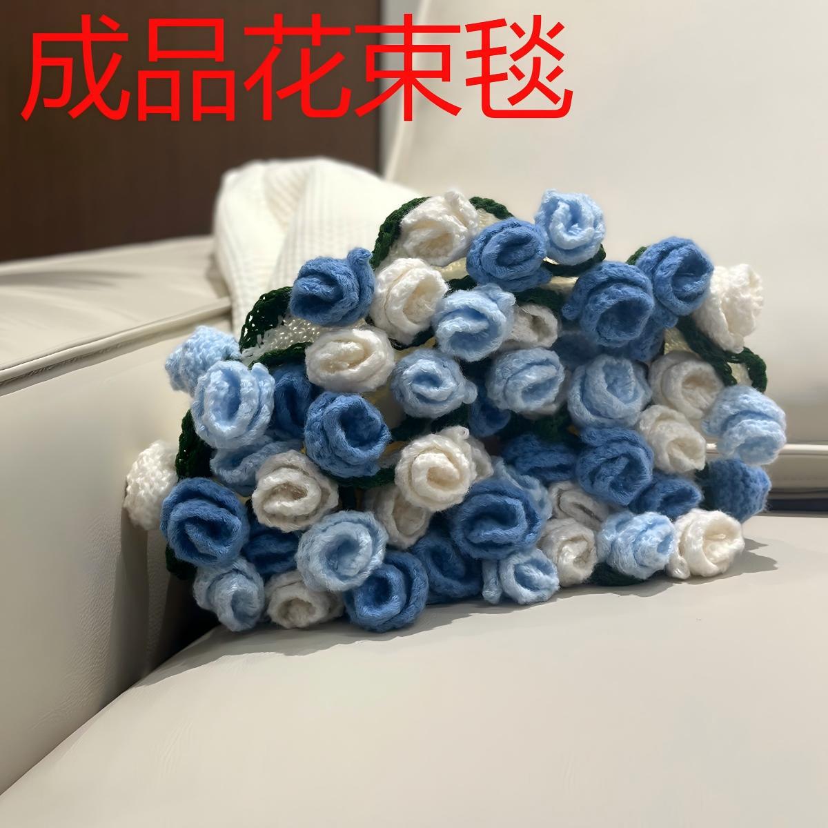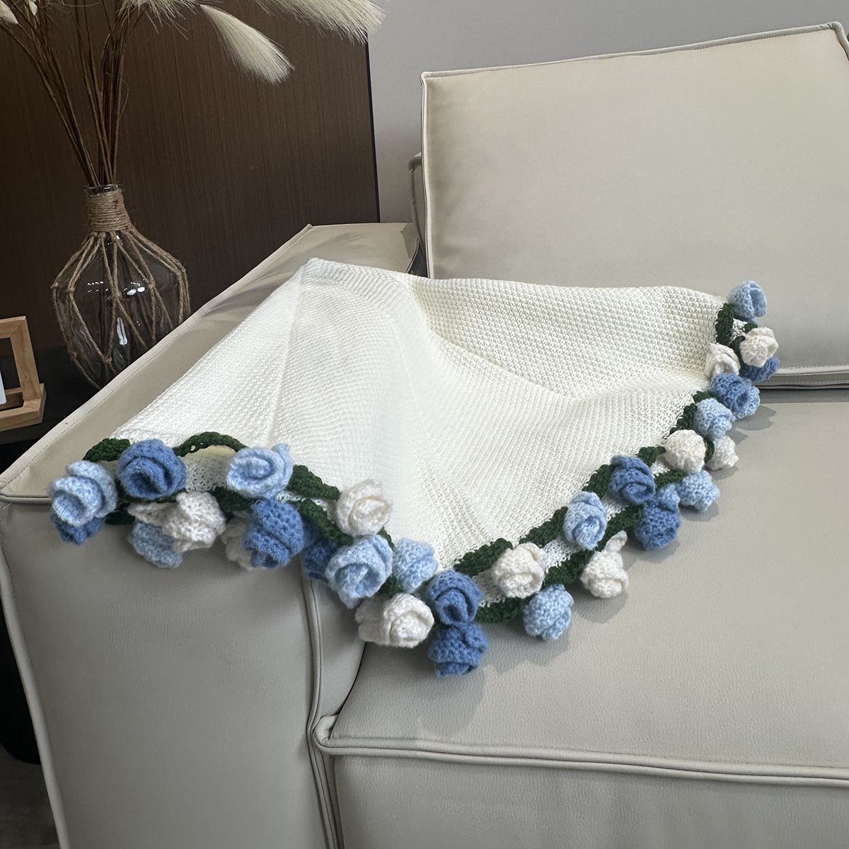 로즈플라워 담요, 완제품, 손뜨개 꽃다발 모직 담요, 발렌타인데이 선물, 선물용 꽃무늬 니트 담요, 숄스토어 가기
