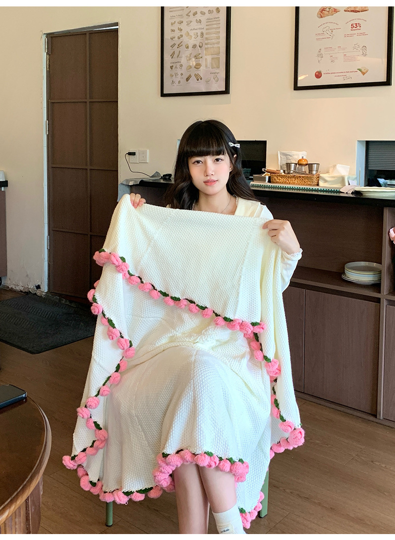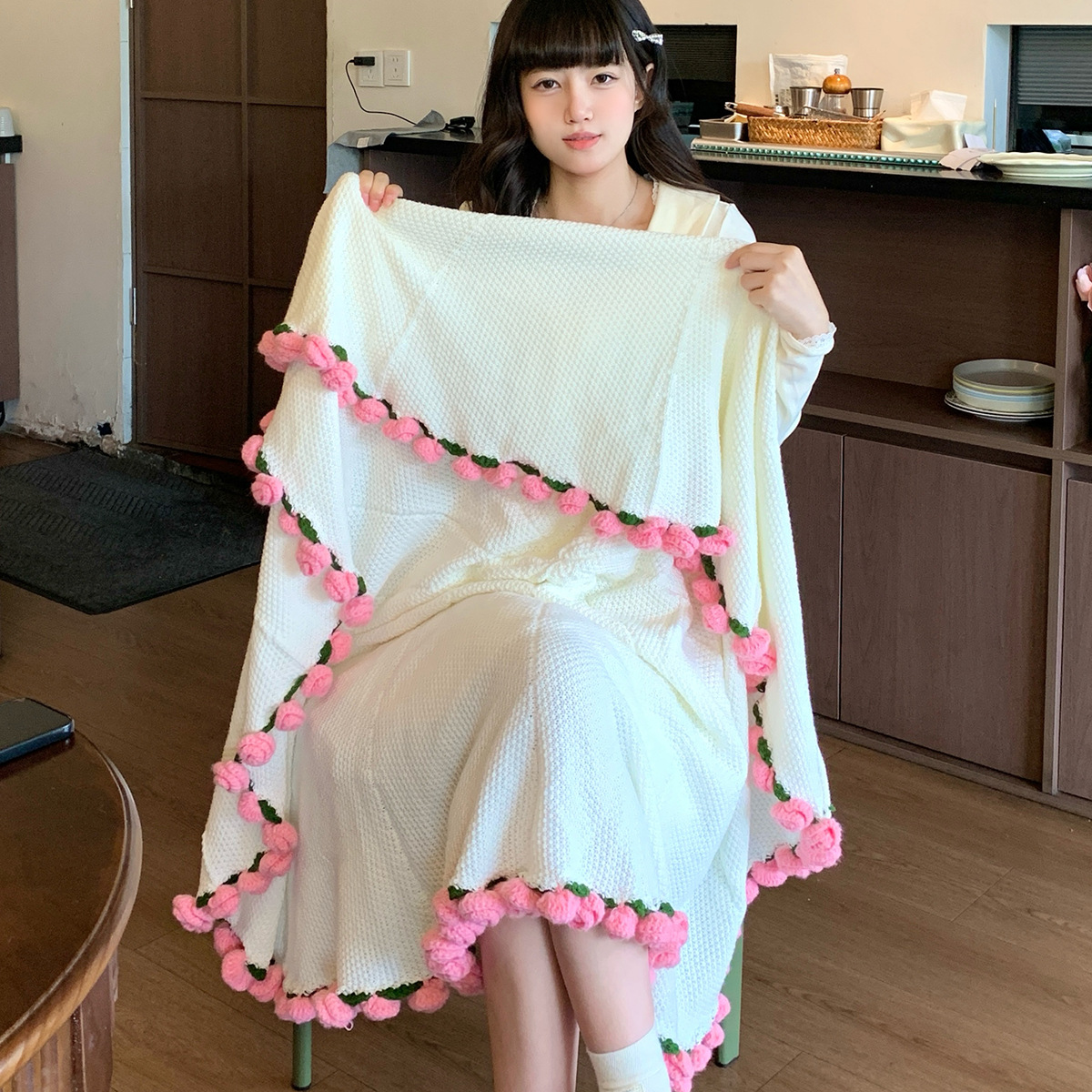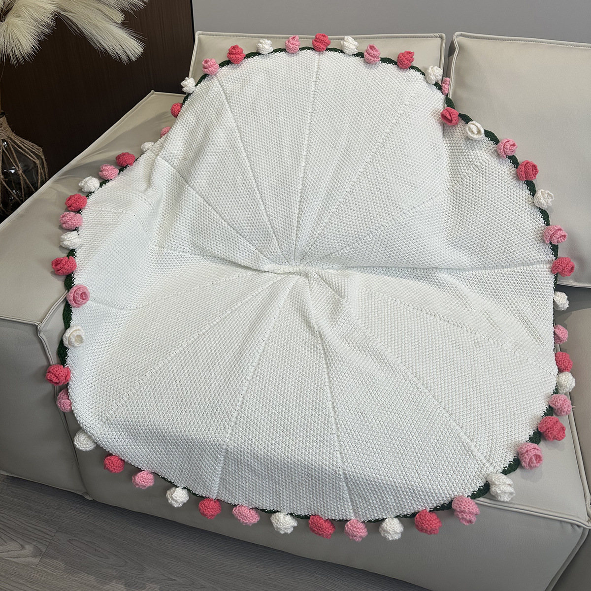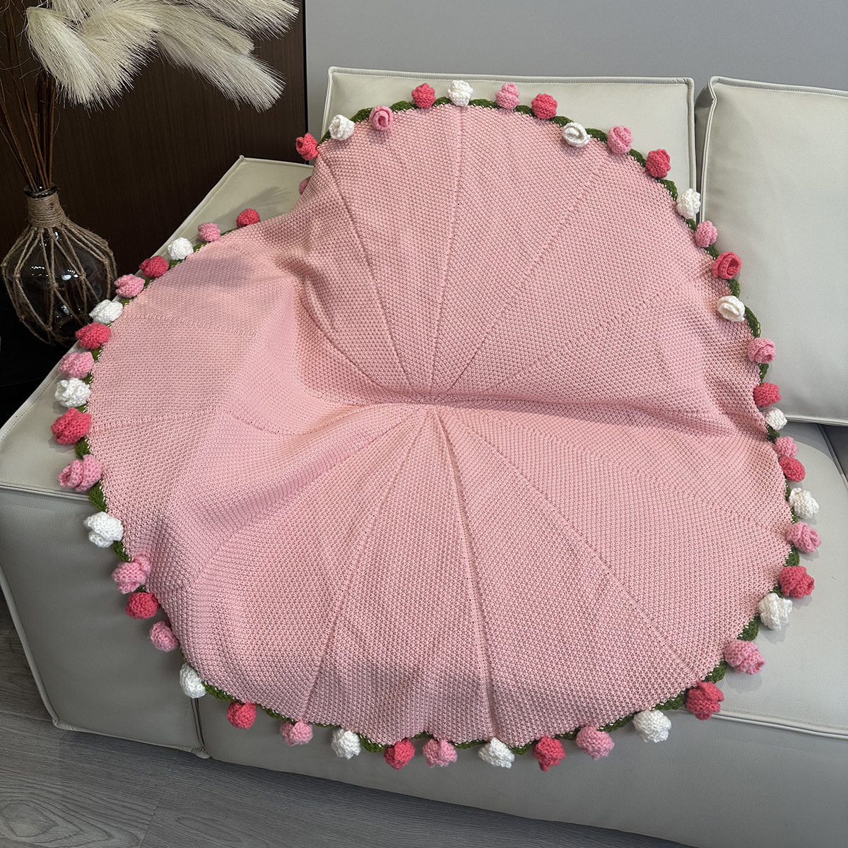 로즈플라워 담요, 완제품, 손뜨개 꽃다발 모직 담요, 발렌타인데이 선물, 선물용 꽃무늬 니트 담요, 숄스토어 가기