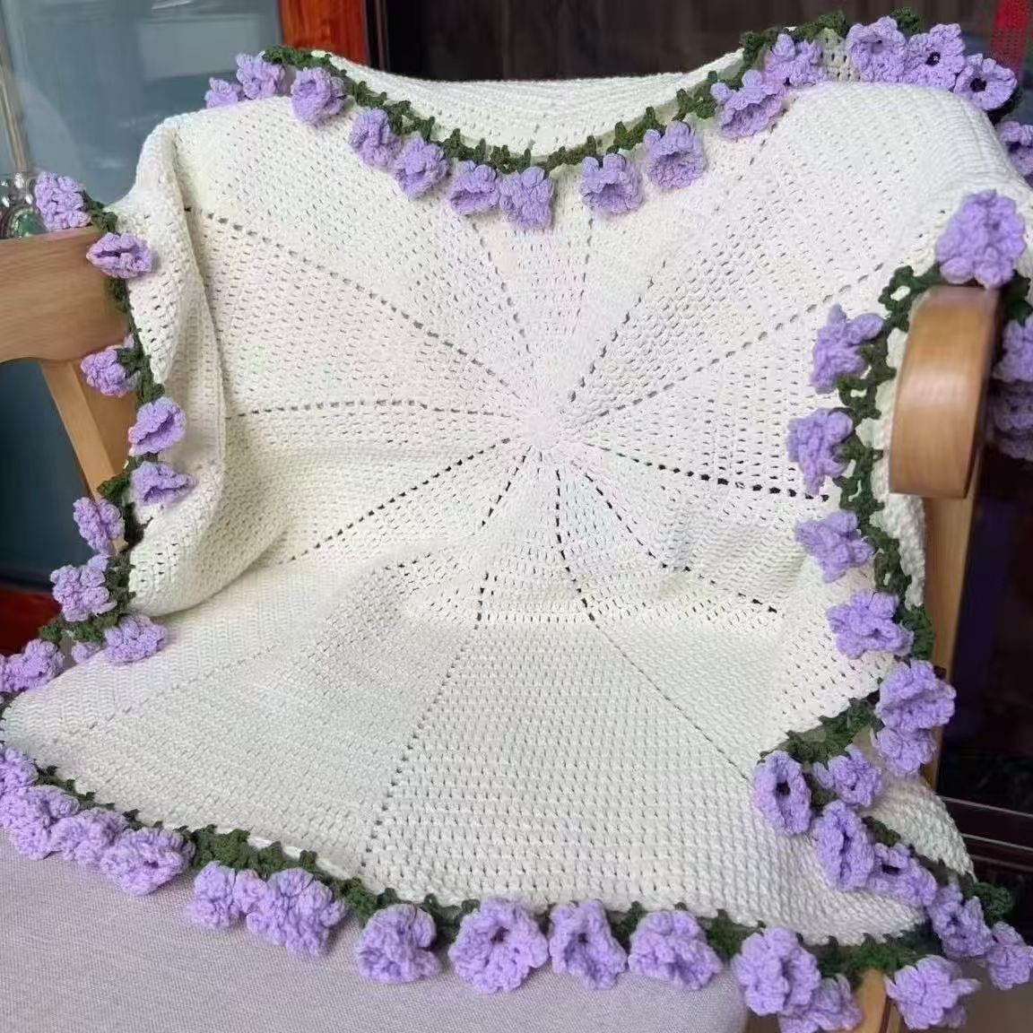 • 완성품 80cm 흰색 담요 + 보라색 은방울꽃 33송이