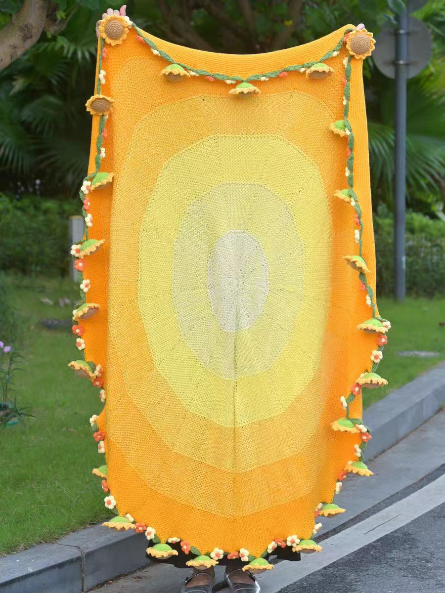 로즈플라워 담요, 완제품, 손뜨개 꽃다발 모직 담요, 발렌타인데이 선물, 선물용 꽃무늬 니트 담요, 숄