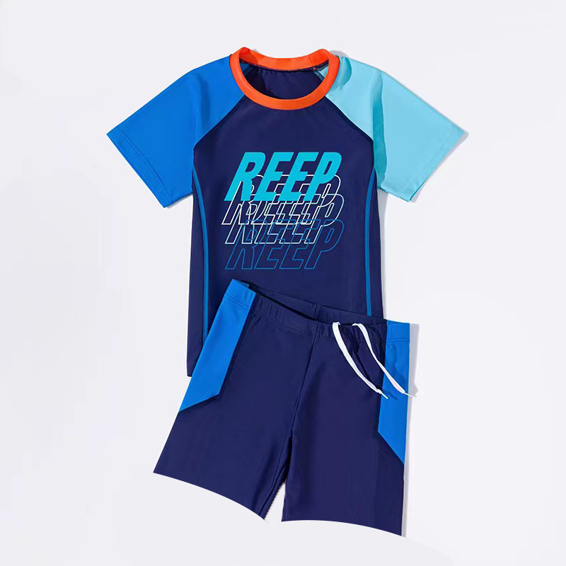 새로운 전문 나일론 소년 큰 어린이 수영복 분할 플러스 뚱뚱한 플러스 느슨한 유행 여름 수영복 도매