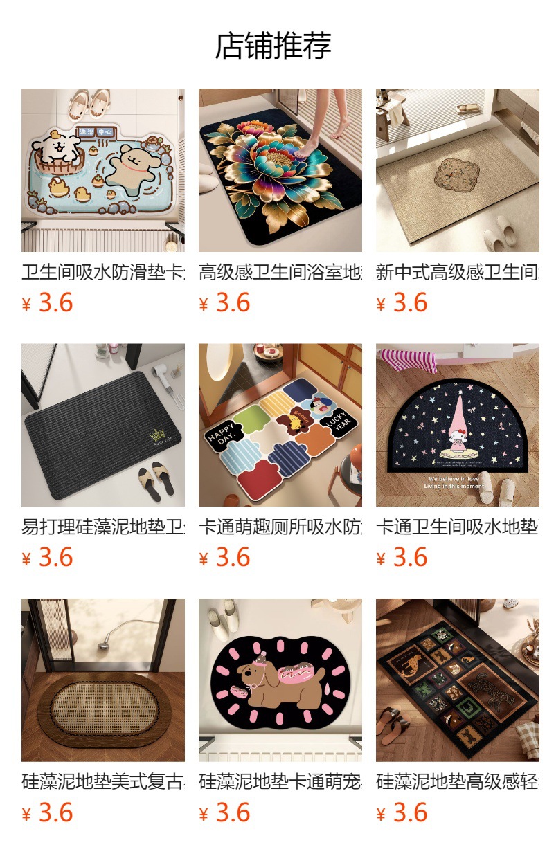 간단한 욕실 매트 흡수성 빠른 건조 규조류 진흙 매트 내마모성 화장실 미끄럼 방지 매트 머리카락을 관리하기 쉽습니다.스토어 가기