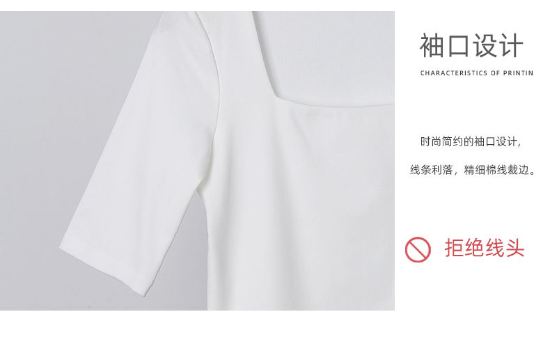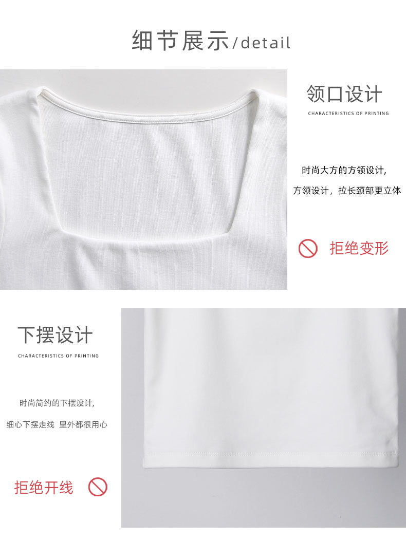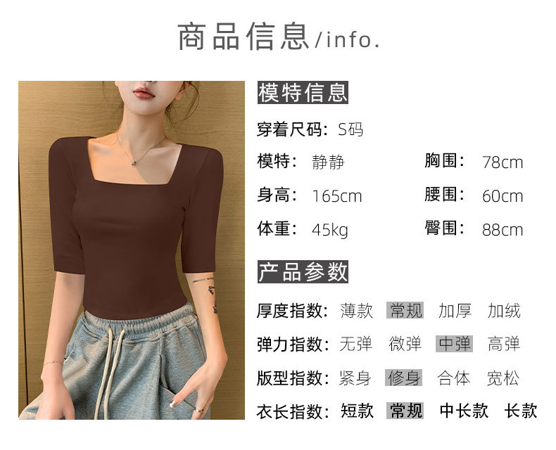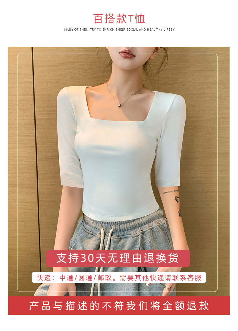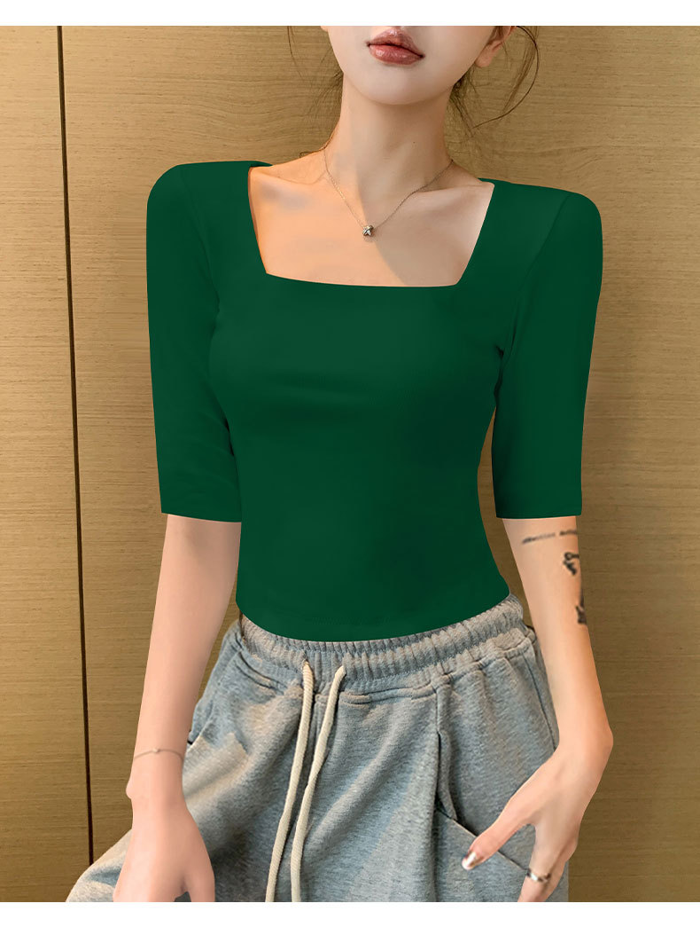 여성용 블랙 스퀘어 넥 반팔 티셔츠 2025 뉴 여름 스타일 슬림핏 오른쪽 어깨 로우 넥 반팔 5부 소매 탑스토어 가기