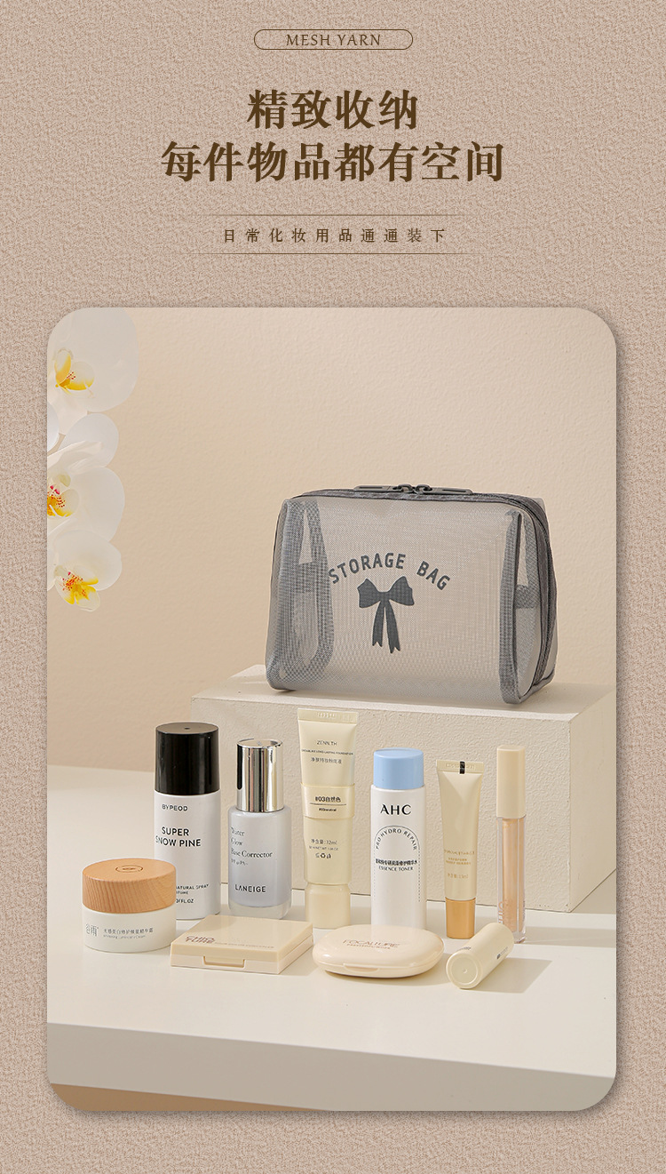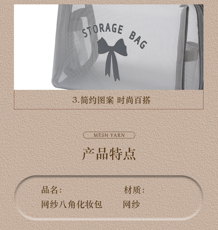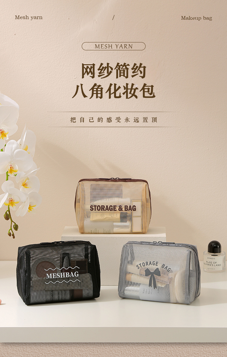 새로운 나일론 메쉬 옥타곤 화장품 가방 대용량 여행 저장 가방 발수 여행 저장 가방 다기능