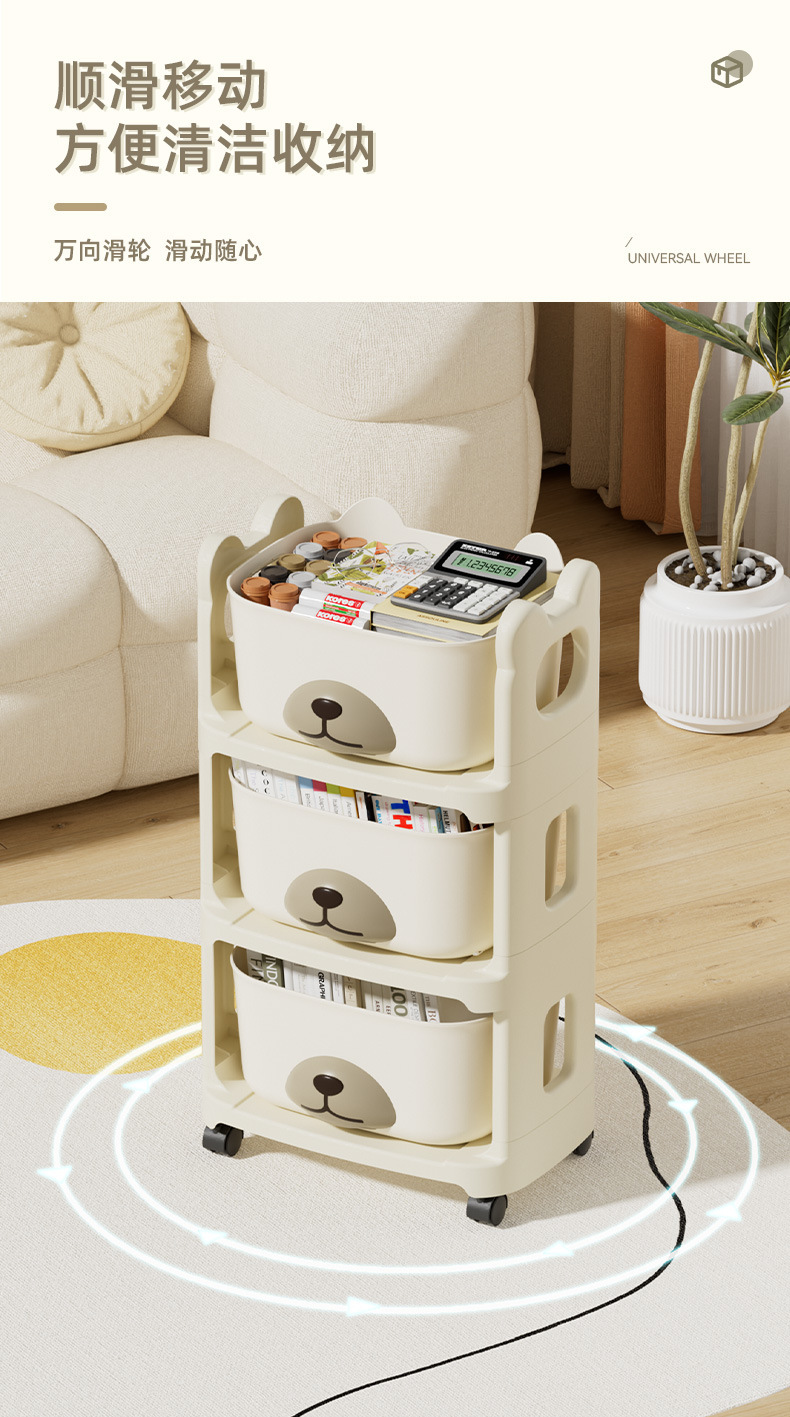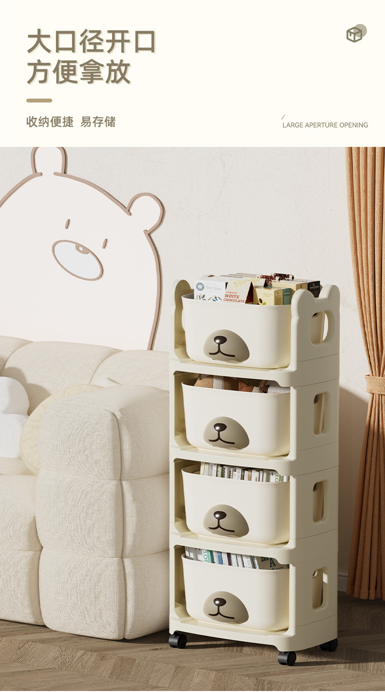 이동식 책장 다층 어린이 수납 선반 독서 홈 수납 선반 바퀴 달린 트롤리 바닥에 놓인 간단한 책장스토어 가기