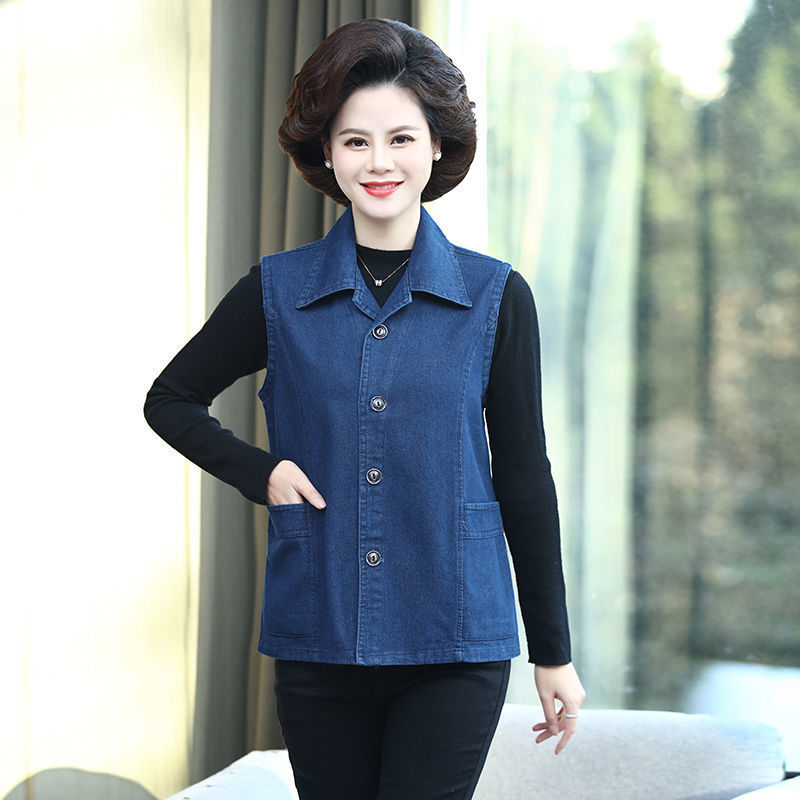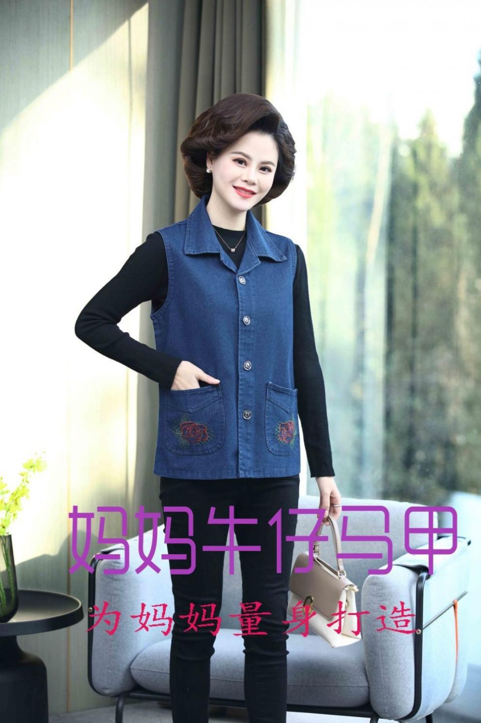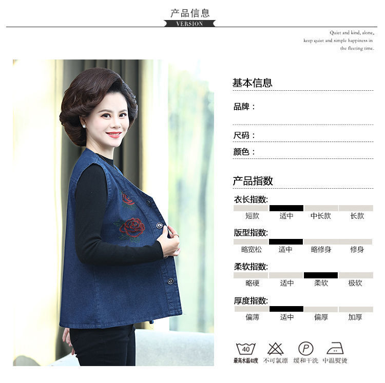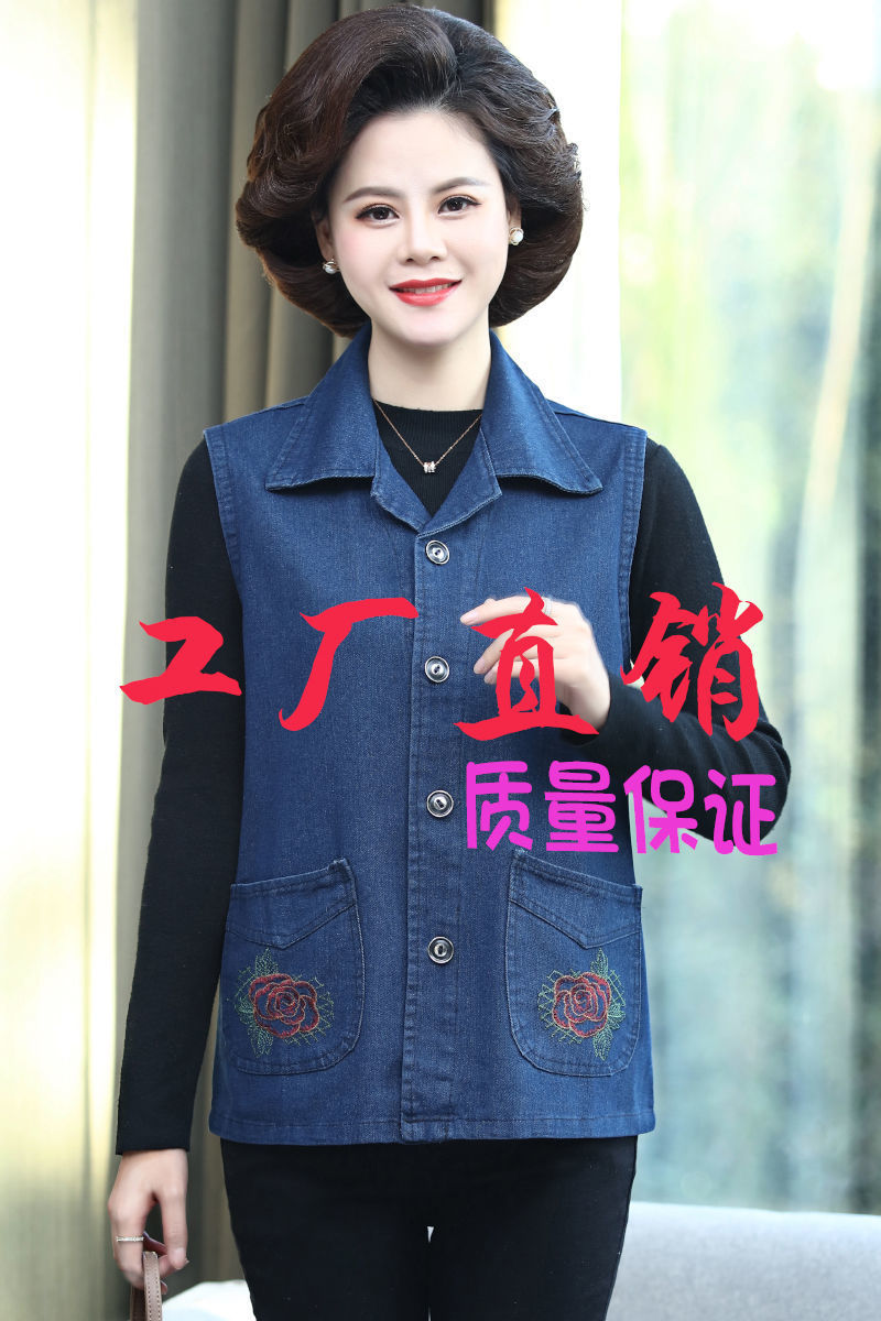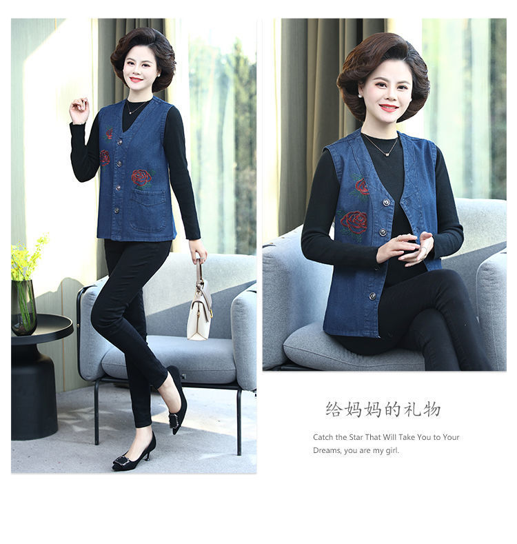중년 및 노인 여성용 데님 조끼, 어머니의 봄, 가을 코트, 플러스 사이즈 자수 조끼, 민소매, 루즈하고 얇은 조끼스토어 가기