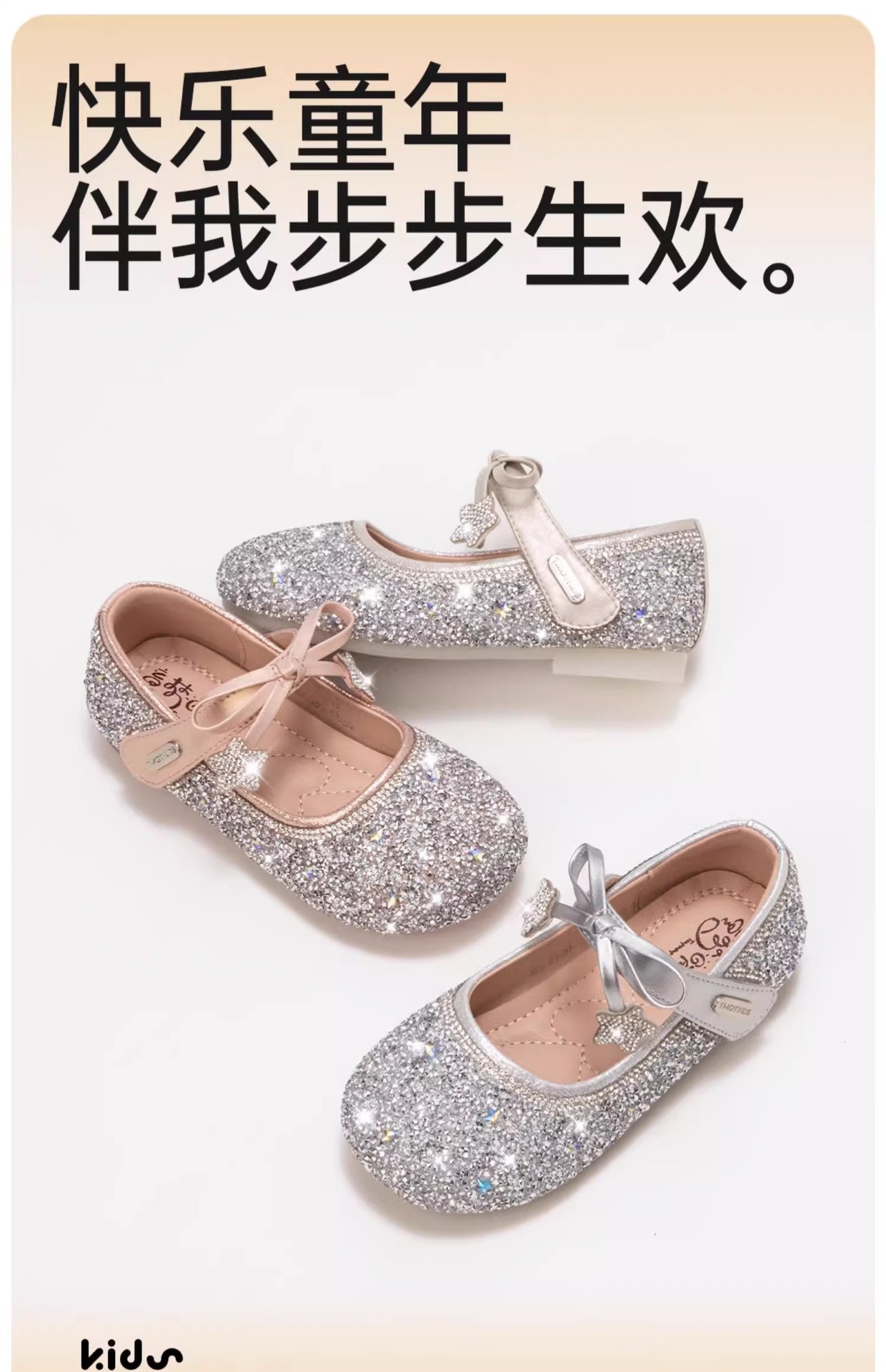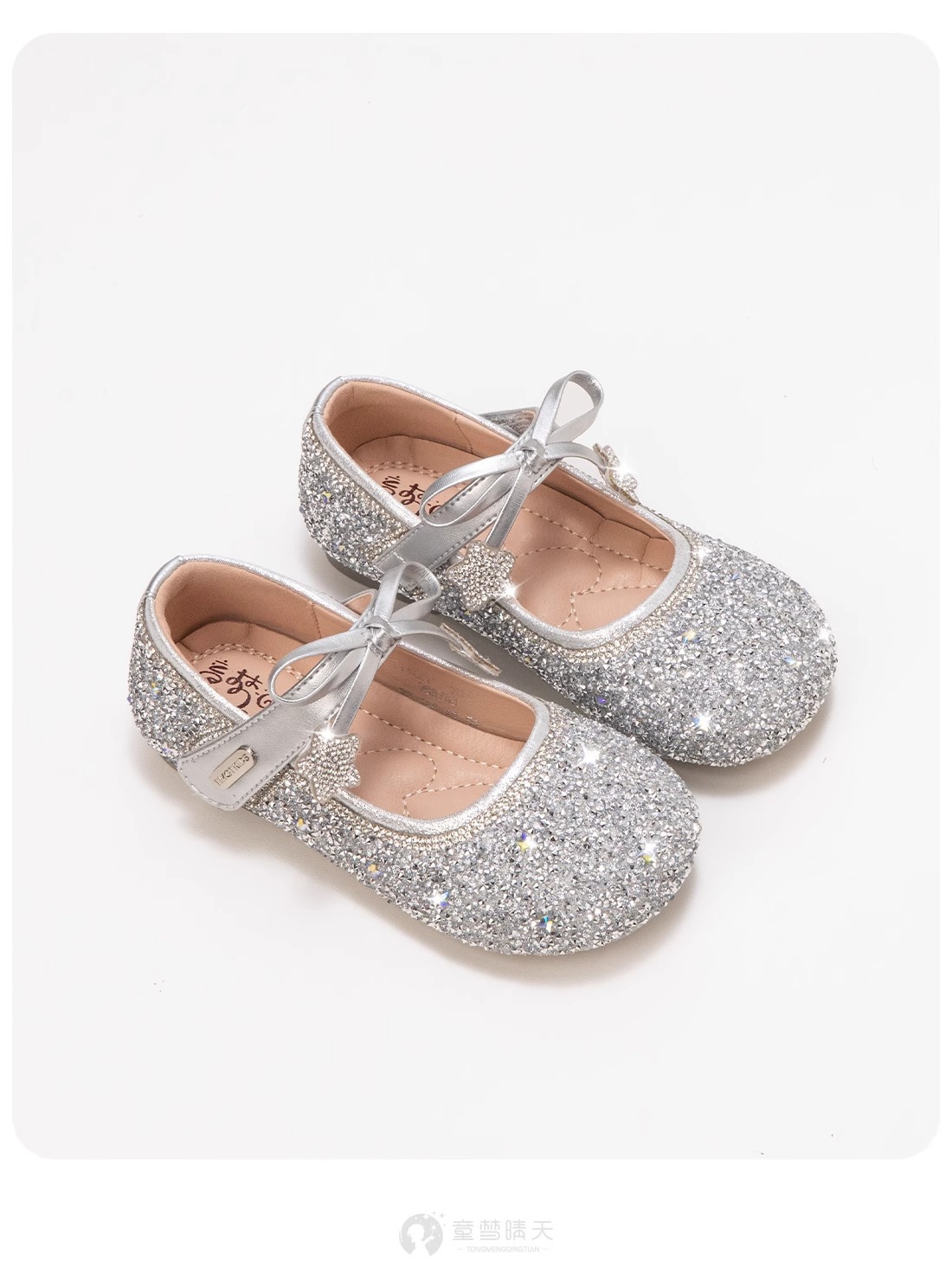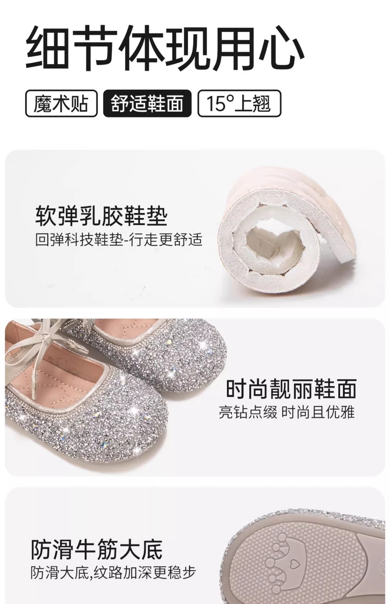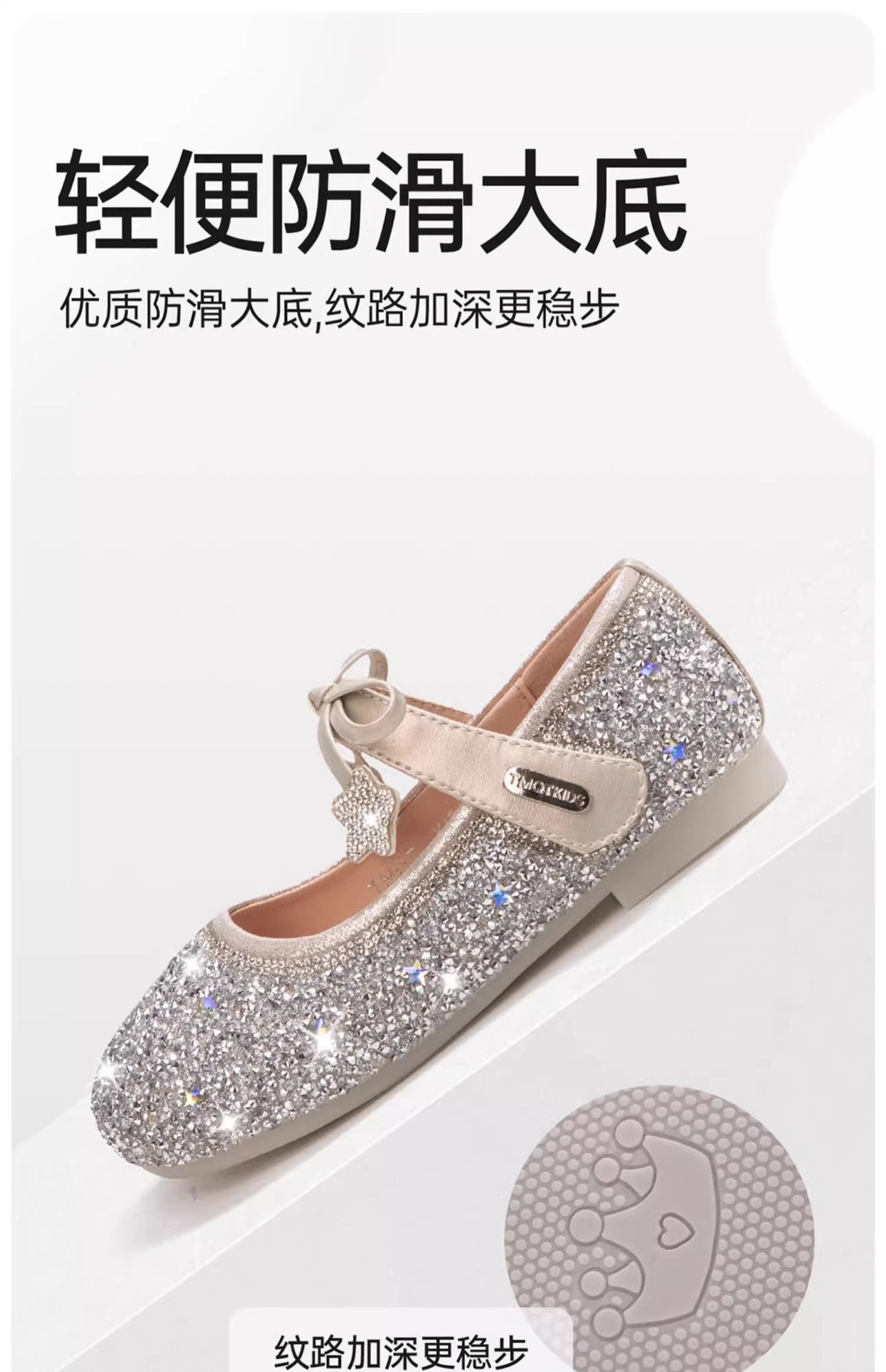 소녀 공주 신발 2025 봄 새로운 어린이 크리스탈 신발 아기 가죽 신발 아이샤 신발 소프트 단독 신발스토어 가기