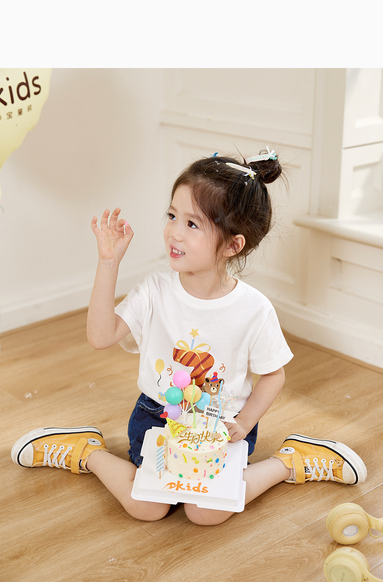 [생일 T] 아동복 베이비 반팔 디지털 티셔츠 여성 2025 여름 새 여자 탑 만화 어린이 트렌드스토어 가기
